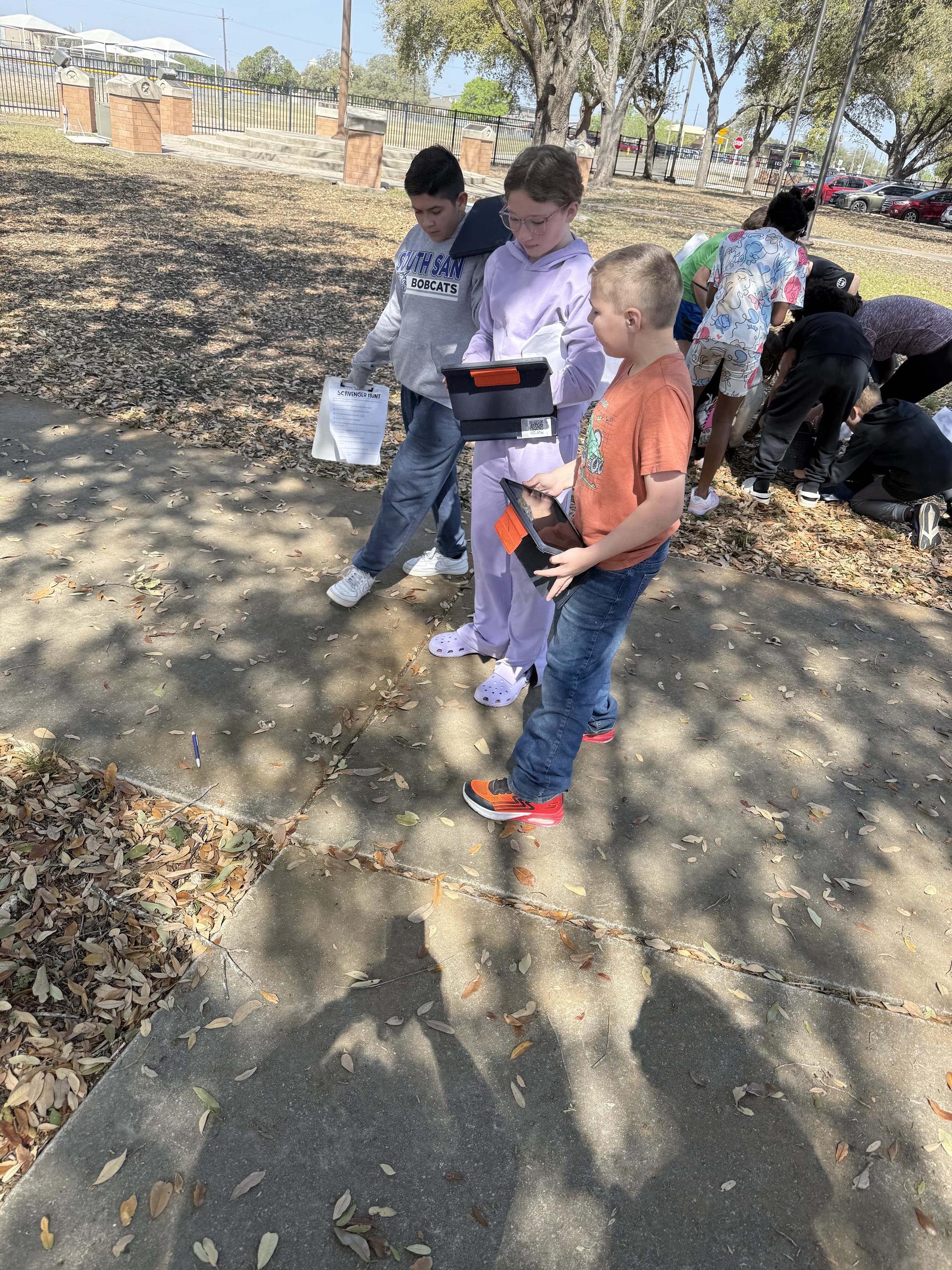 Fourth grade outdoor plants scavenger hunt during Science. |