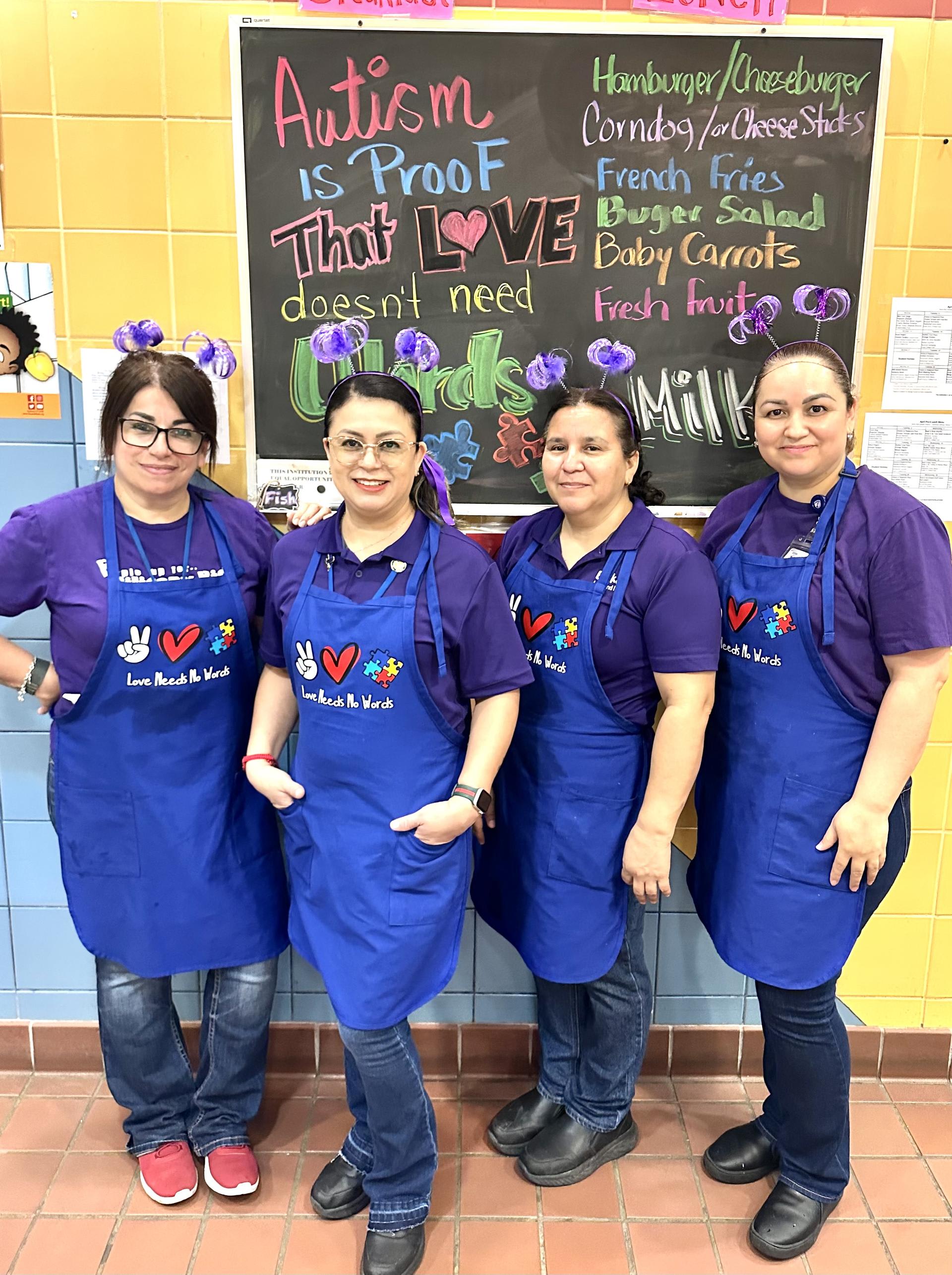 The cafeteria crew celebrates Autism and Military kids Month. |