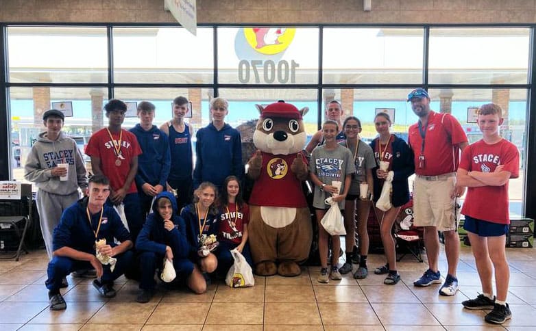 Last week the Stacey Eagles Cross Country team travelled to Shiner to compete at Green Dickson Park. The boys’ team placed First overall by 5 points. Sal Lione (3rd), Zach Born (6th), Dante Lione (7th), Rudy Morales (14th) and Jackson Earls (24th) were the first five Stacey runners across the finish line. Rudy (19:35), Jackson (20:40), Ethan Colunga (20:41), and Jonas Woodbury (22:49) all ran PRs. In the girls’ race, led by Angelina Lione, the Lady Eagles placed 3rd. Mia Flores (13:46), Katen Fredin (13:58), Lila Colunga (14:02) and Addison Gajkowski (16:50) all ran PRs.