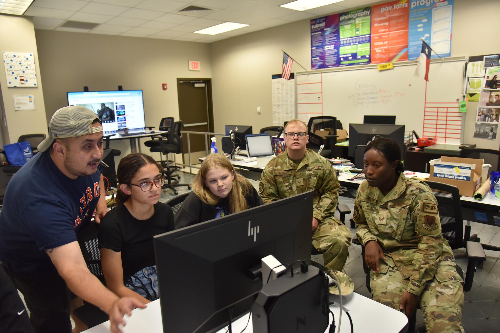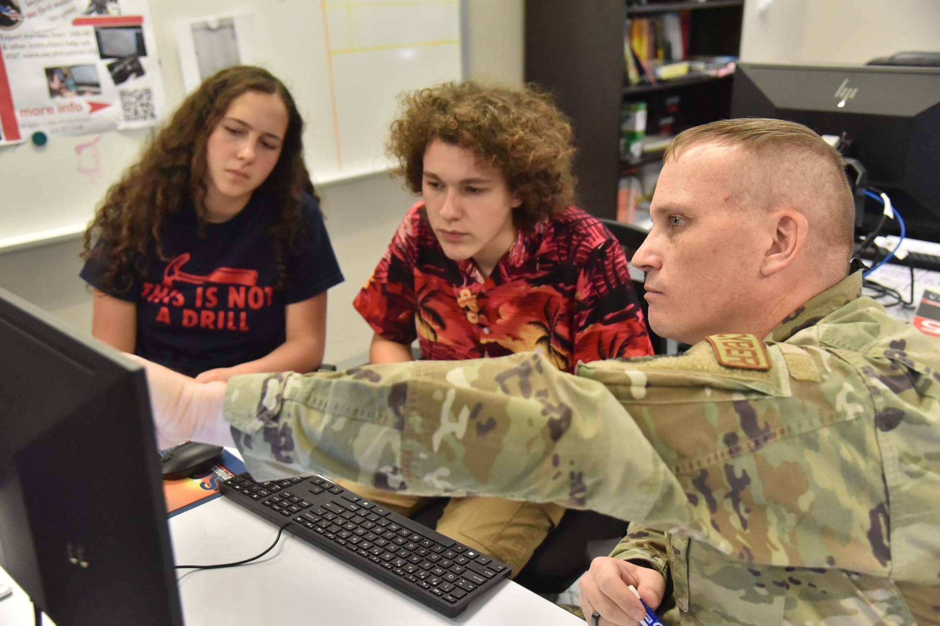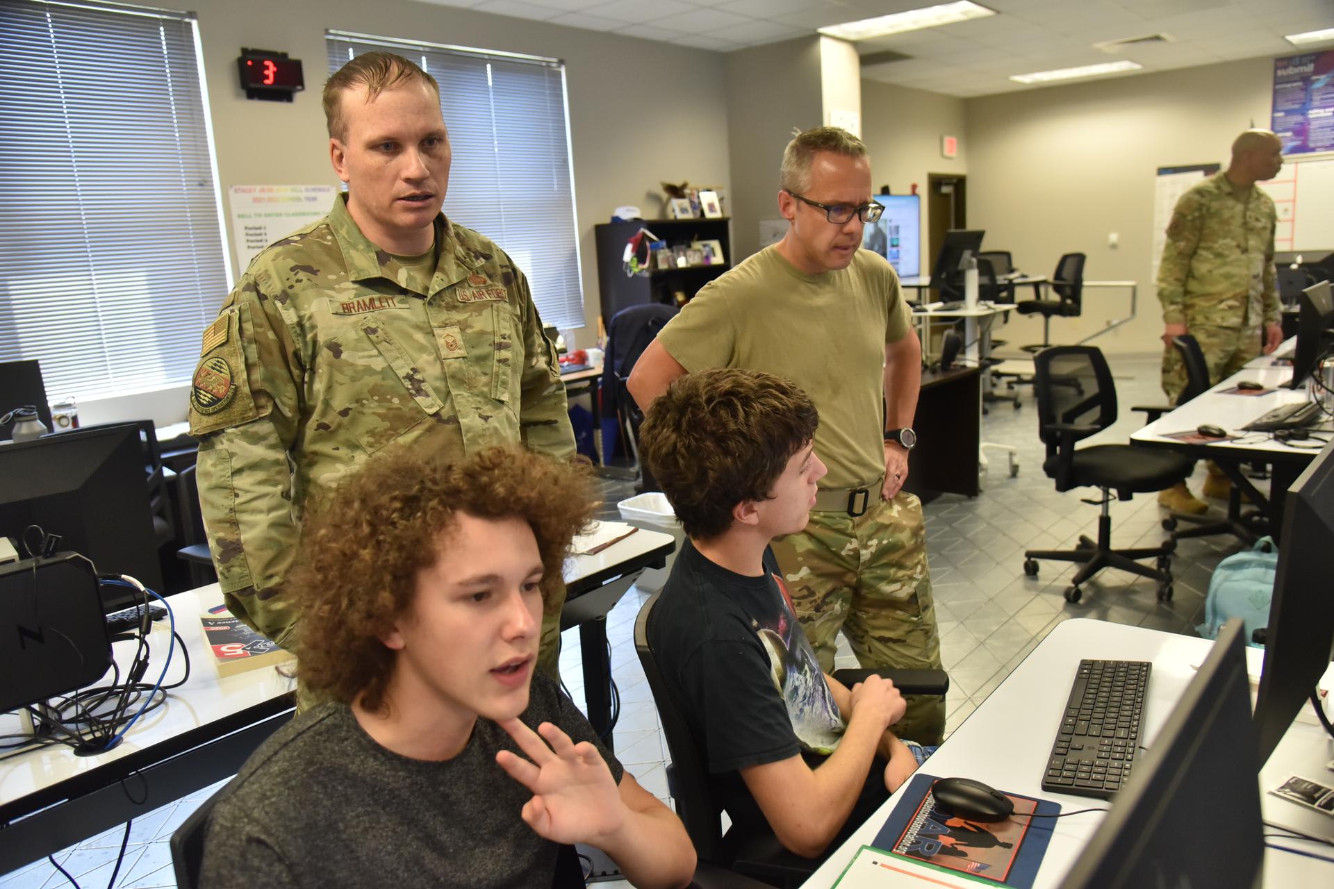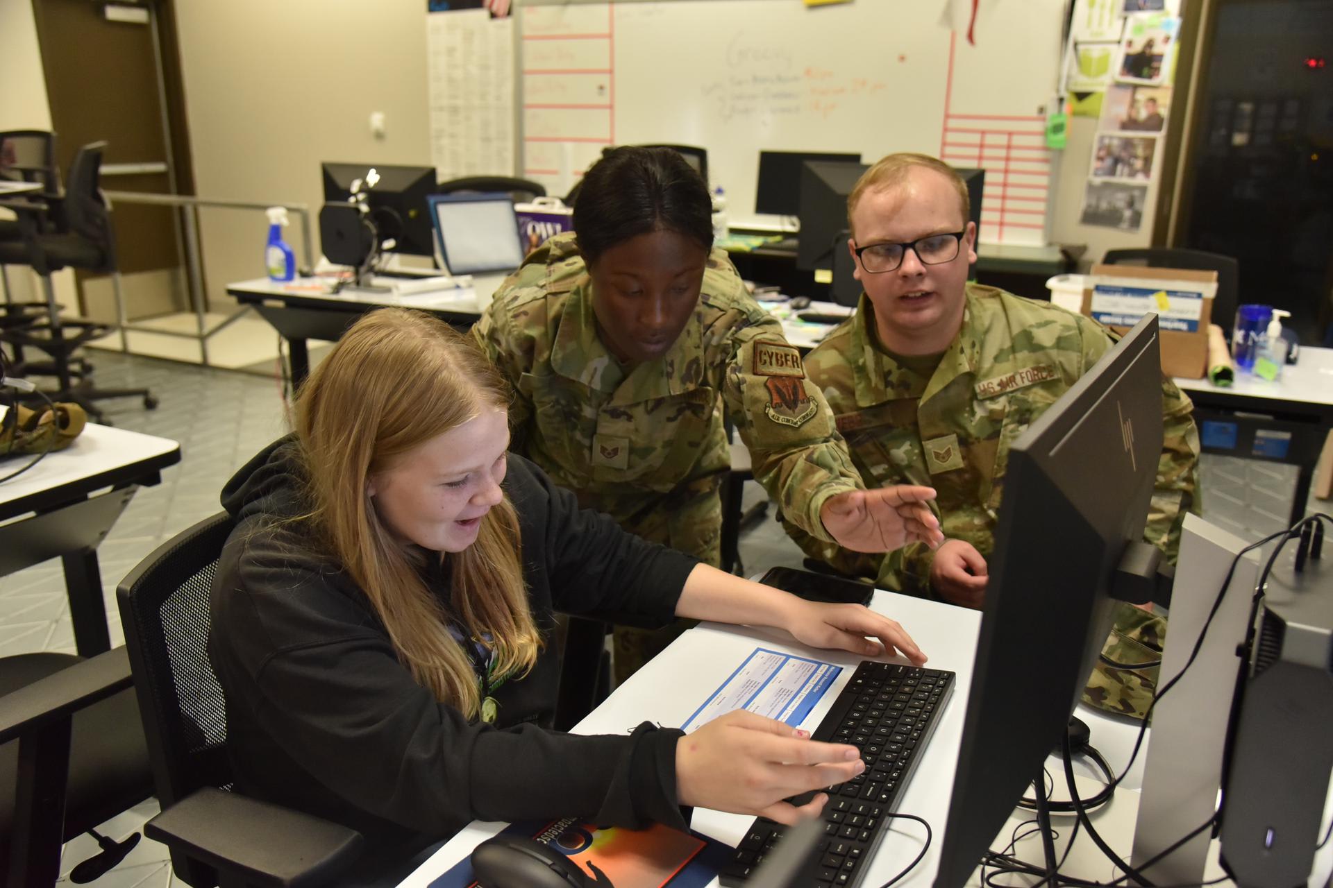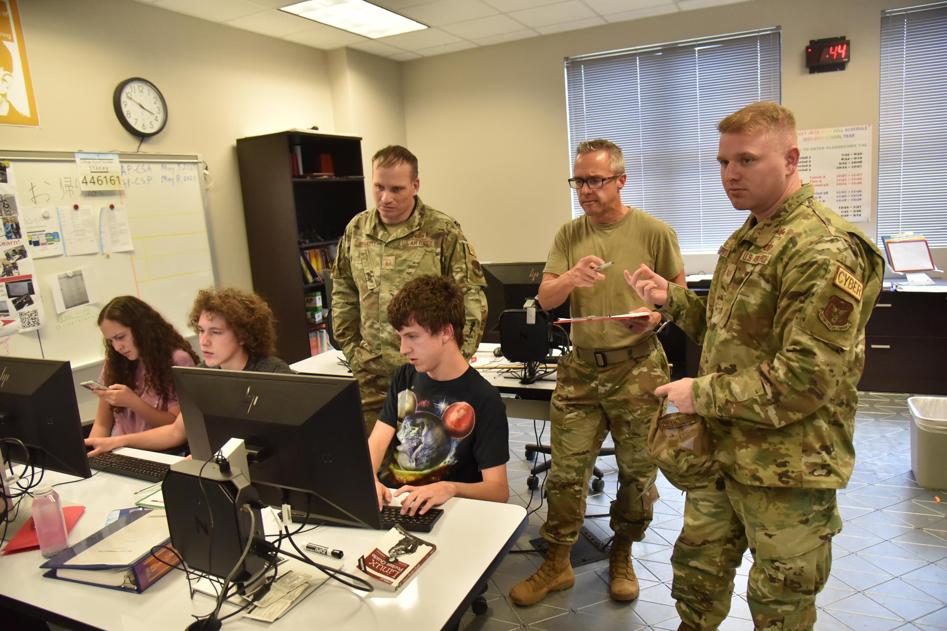 The 2022-2023 season of CyberPatriot is underway and 12 students are representing Stacey this year. The competition, where students find and fix cyber security vulnerabilities on various virtual operating systems, answer forensic questions and work on a virtual network simulation tool, is in its 15th year. Around 7,000 teams compete from around the world. Volunteers from the community come on campus after school and mentor the students. "The response from the military cyber community has been tremendous", said coach Russell Keller, "the 426th NWS has been especially helpful and we also have mentors from the 854th COS, 33rd COS, 531st IS, 834th COS and the 16th AF. We very much appreciate all of them sharing their time, knowledge and skills with Stacey students."