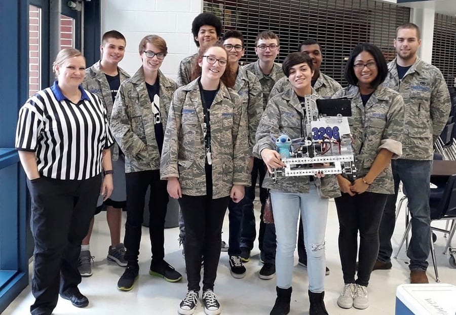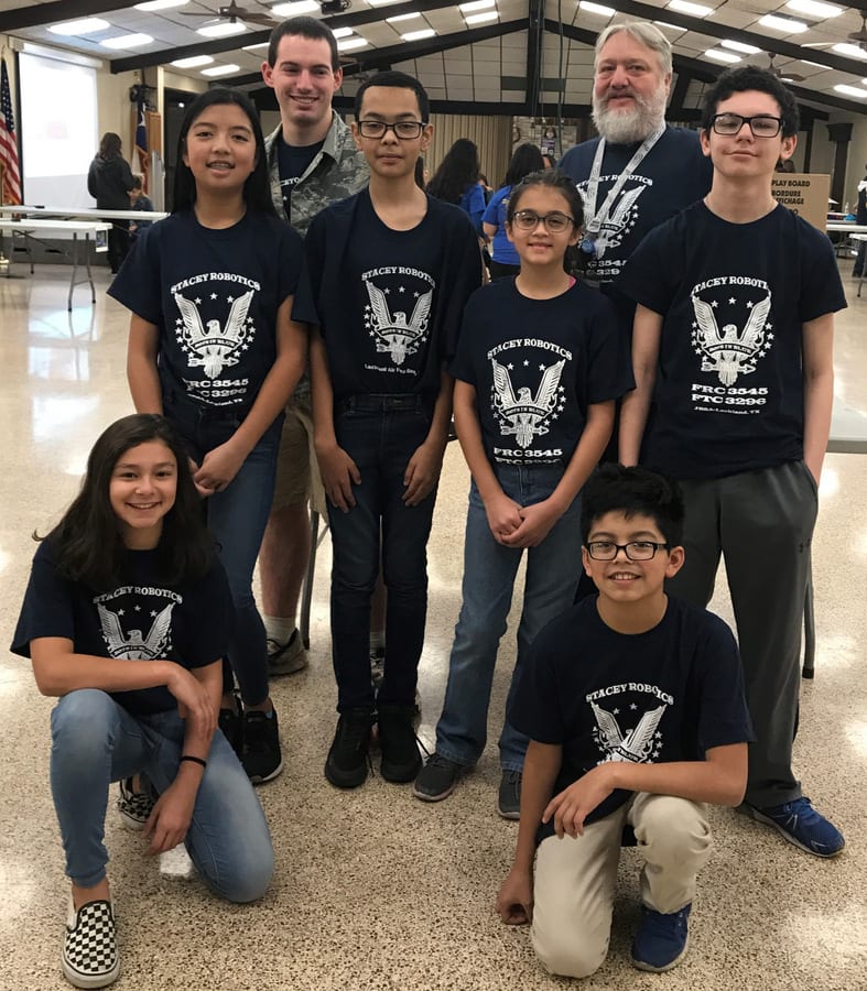 Mrs. Rebecca Huerta and SSgt Austin Ellsworth were on hand as the FTC team participated in the Alamo Regional Wildcard competition at Brandies High School. Lt. Robert Batzler and Mr. Kenneth Kinsey took the Junior High School FLL team to a Regional Qualifying tournament at Southwest Texas Junior College in Uvalde.