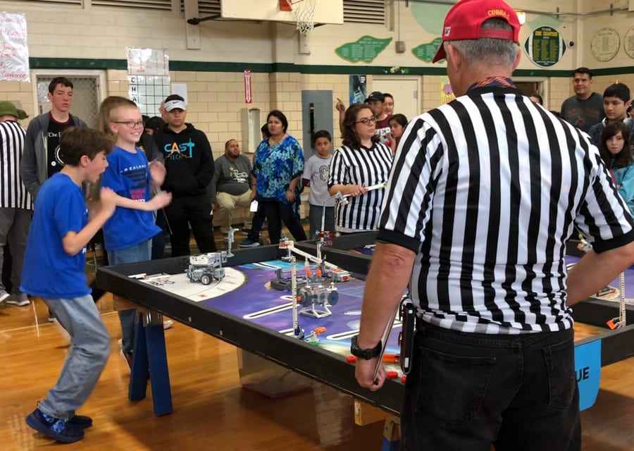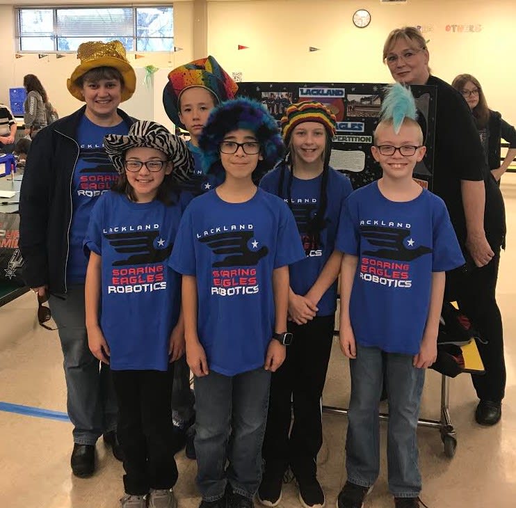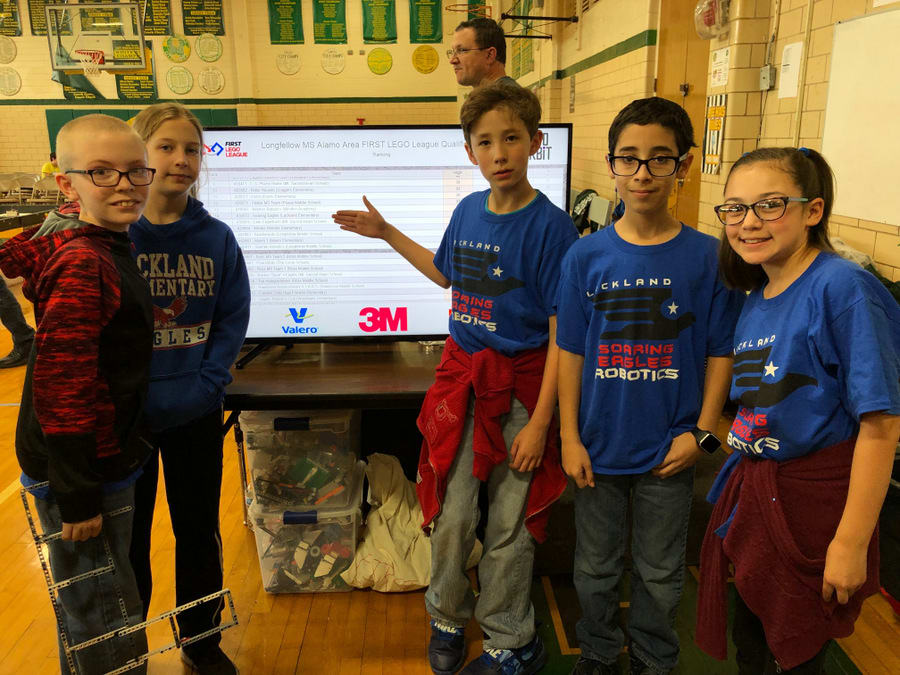 This past Saturday, Feb. 16, the elementary school’s FIRST Lego League (FLL) team, coached by Ms. Kickler and Mrs. Johnson, attended a regional competition here in San Antonio. It was a rigorous but rewarding day of judging and robotics competition. Although the team, Lackland Soaring Eagles, didn’t win any awards, they learned a lot, had tons of fun, and scored some points during the robot competition! Congrats to our fabulous Eagles!