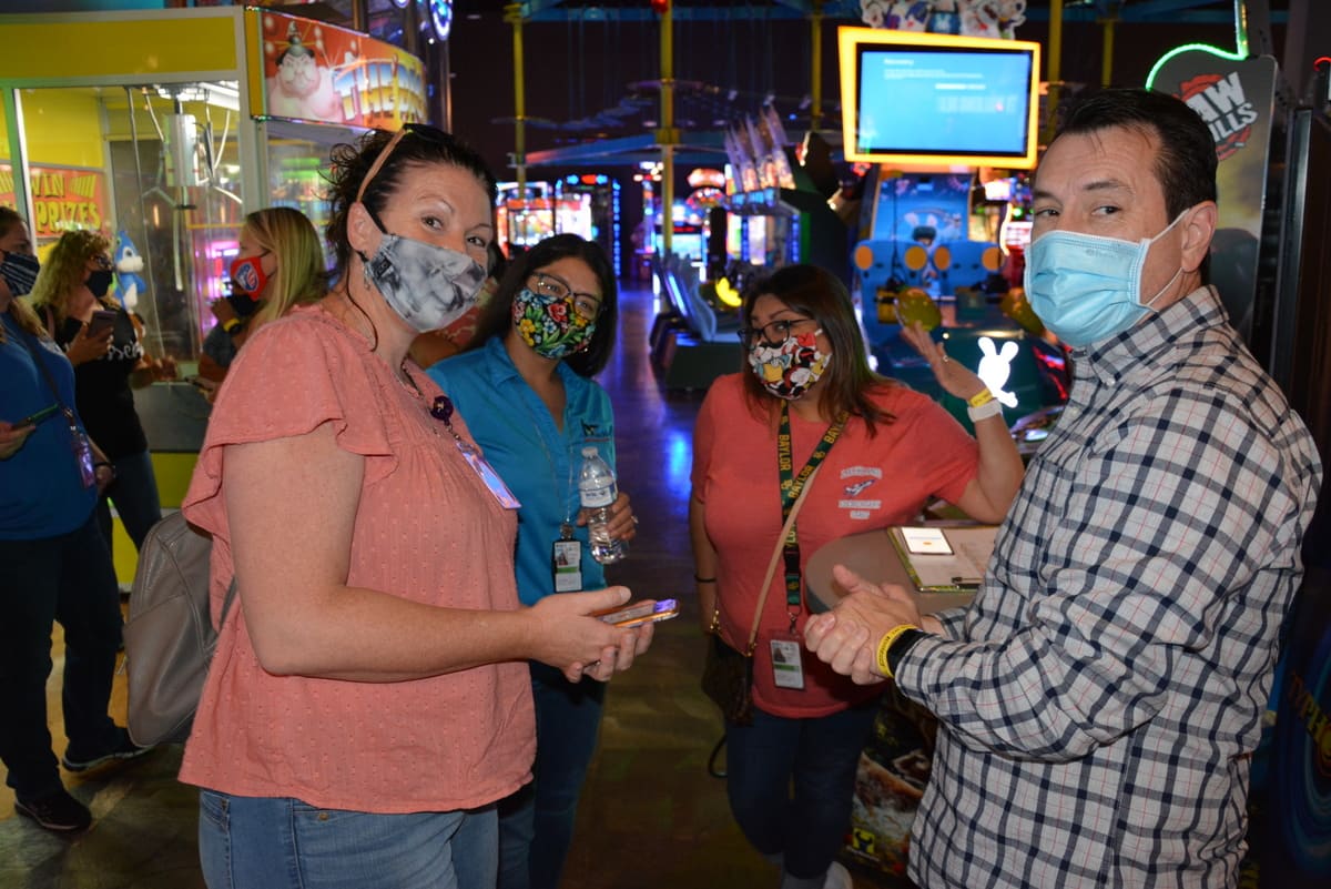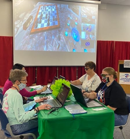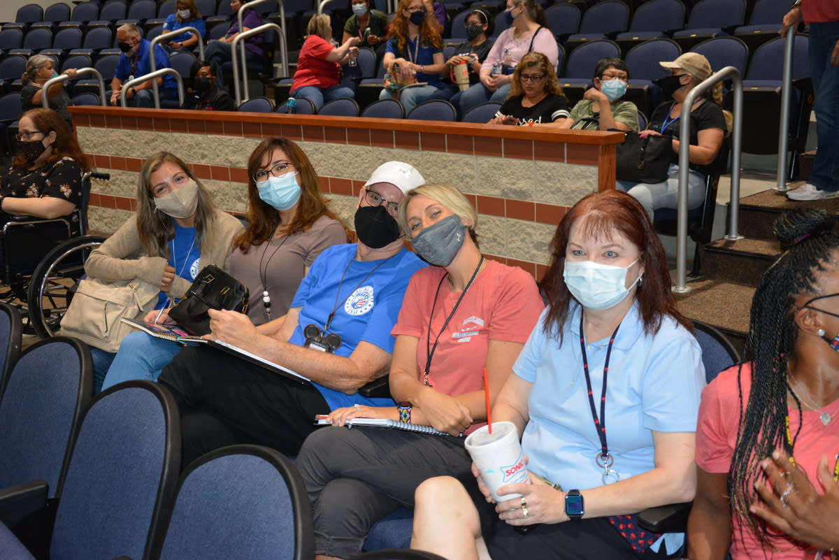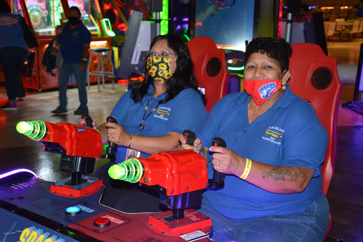Over the summer, the Lackland ISD Technology Department held its first annual Technology Conference, "Camp Tech: Fuel Your Fire!" and it was a huge hit! Many teachers took advantage of amazing sessions (both in person and virtually) hosted by fellow teachers, technology department members, and vendors, to learn about the latest technology trends and programs available to them in their classrooms. In-person attendees were privileged to free breakfast, snacks, lunch, and amazing door prizes provided by the following local establishments: Kendra Scott, Chicken N Pickle, Chuy's, Red Robin, Nestle Tollhouse, Olive Garden, Main Event, and Bubba's 33! We can't wait to see our conference grow bigger and even better for next year! In the pictures: Kellie Clark-Chan (ELA) presents to teachers on Podcasts in the Classroom! Pam Torre(SS), Cris Street (Math), Rebecca Huerta (AVID), Whitney Phillips (Math) participate on zSpace, a virtual reality student learning experience!