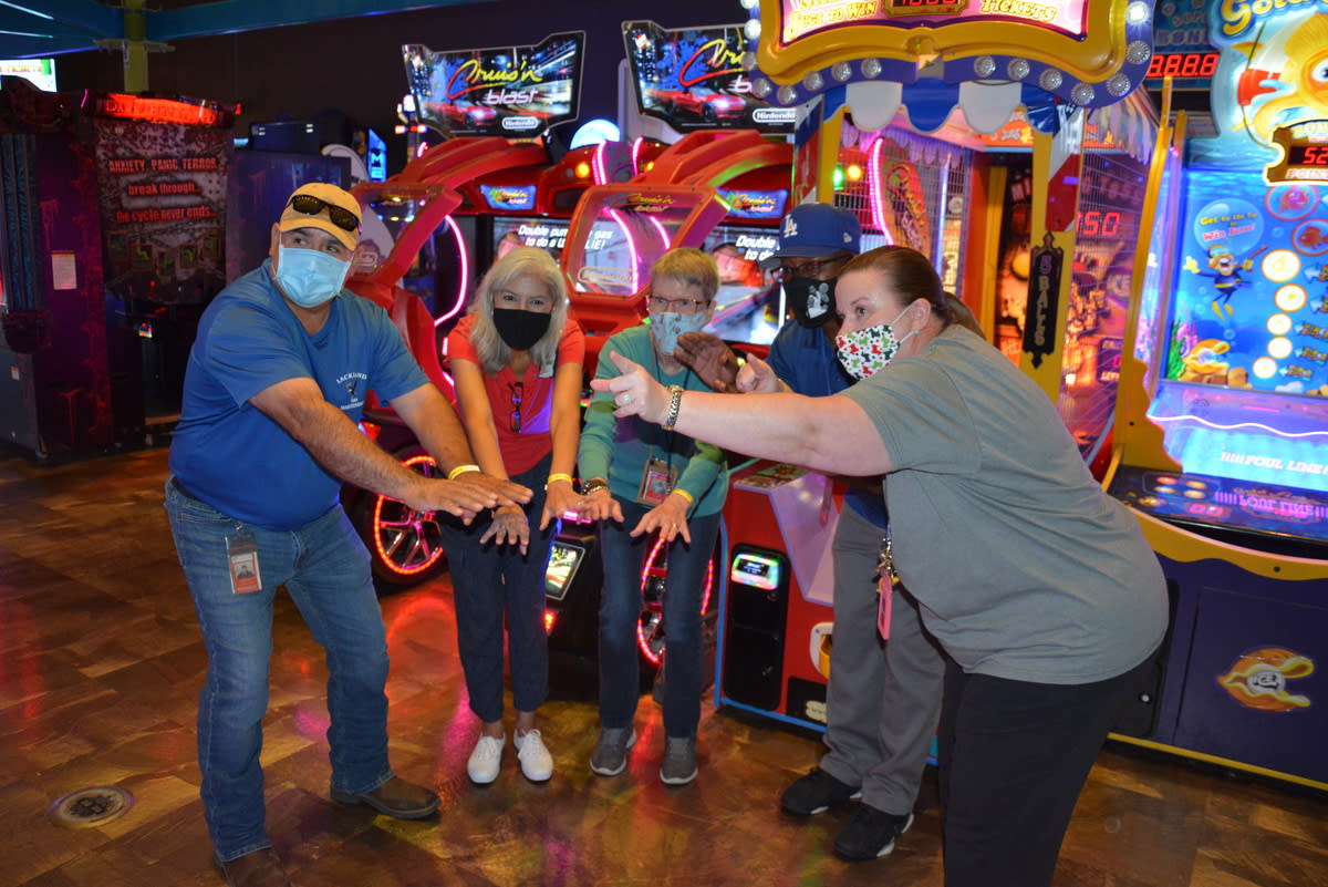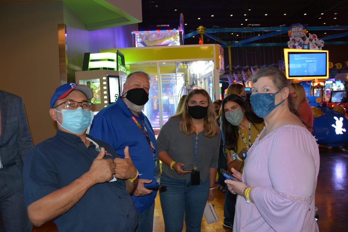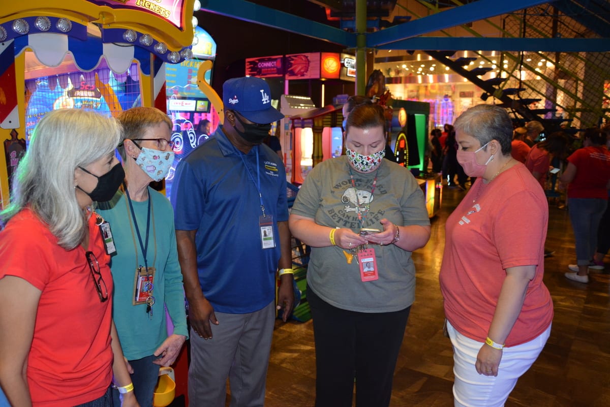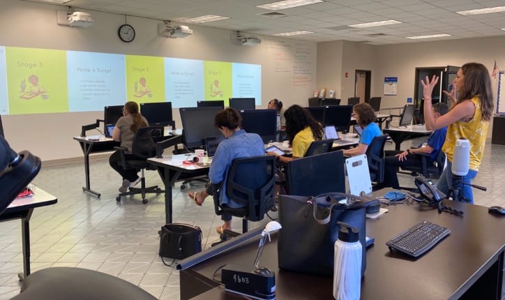 Over the summer, the Lackland ISD Technology Department held its first annual Technology Conference, "Camp Tech: Fuel Your Fire!" and it was a huge hit! Many teachers took advantage of amazing sessions (both in person and virtually) hosted by fellow teachers, technology department members, and vendors, to learn about the latest technology trends and programs available to them in their classrooms. In-person attendees were privileged to free breakfast, snacks, lunch, and amazing door prizes provided by the following local establishments: Kendra Scott, Chicken N Pickle, Chuy's, Red Robin, Nestle Tollhouse, Olive Garden, Main Event, and Bubba's 33! We can't wait to see our conference grow bigger and even better for next year! In the pictures: Kellie Clark-Chan (ELA) presents to teachers on Podcasts in the Classroom! Pam Torre(SS), Cris Street (Math), Rebecca Huerta (AVID), Whitney Phillips (Math) participate on zSpace, a virtual reality student learning experience!