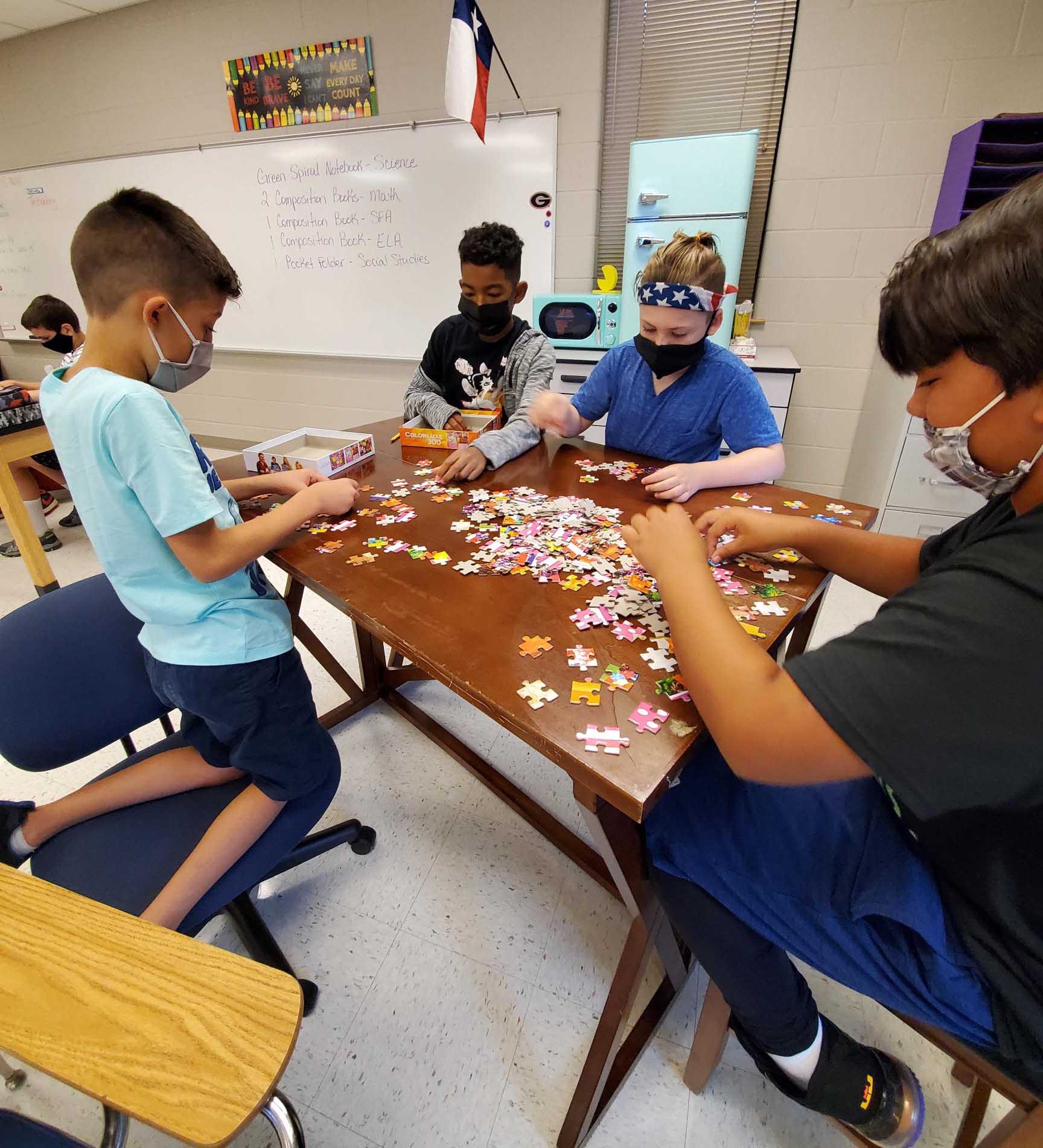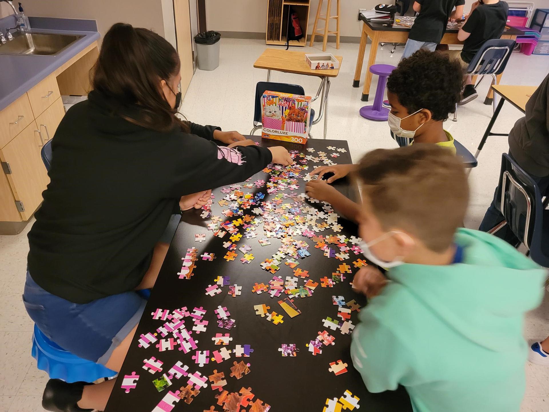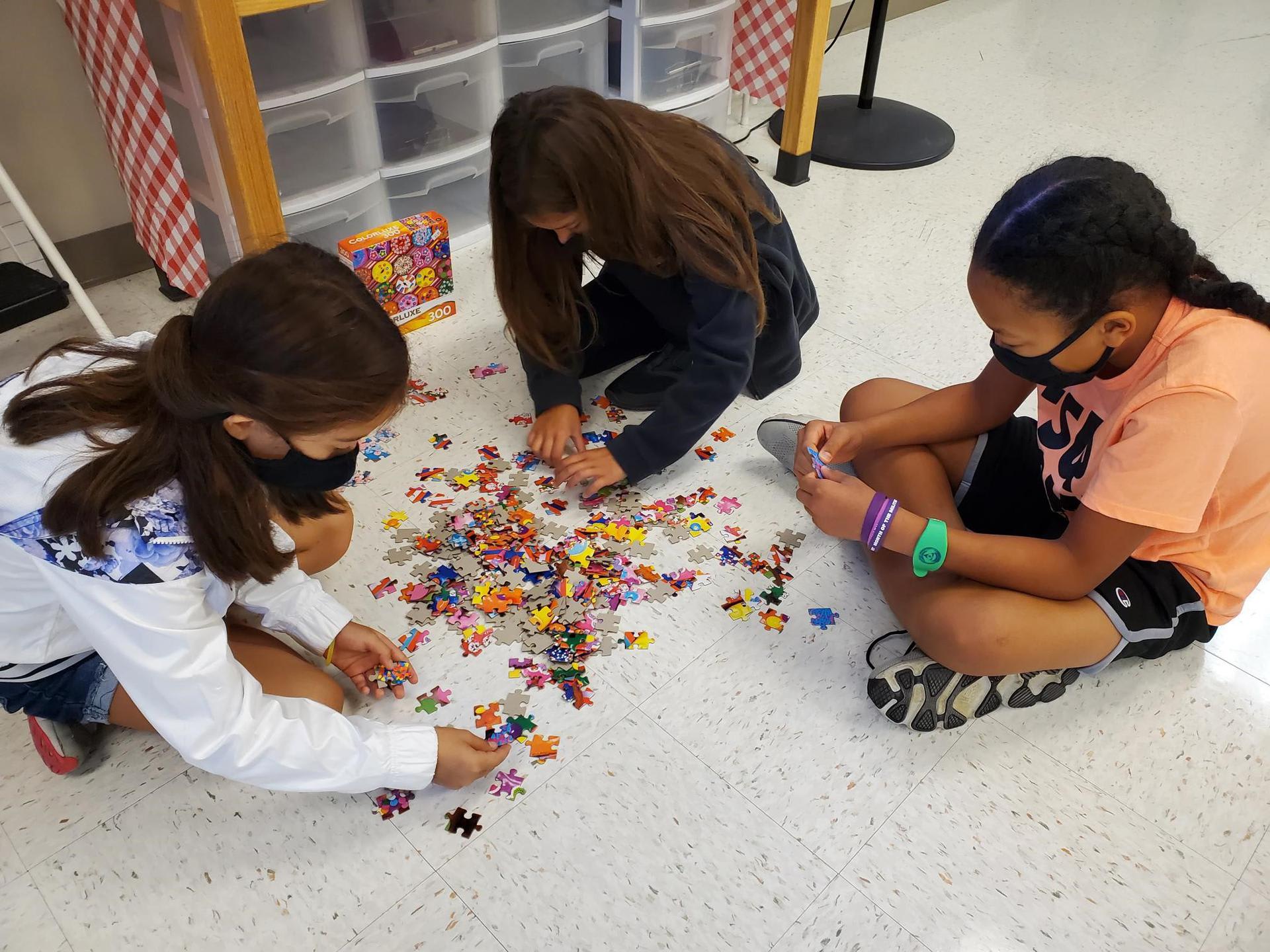 Mrs. Martino's 5th graders practicing Getting Along Together and Team-building by putting together jigsaw puzzles.