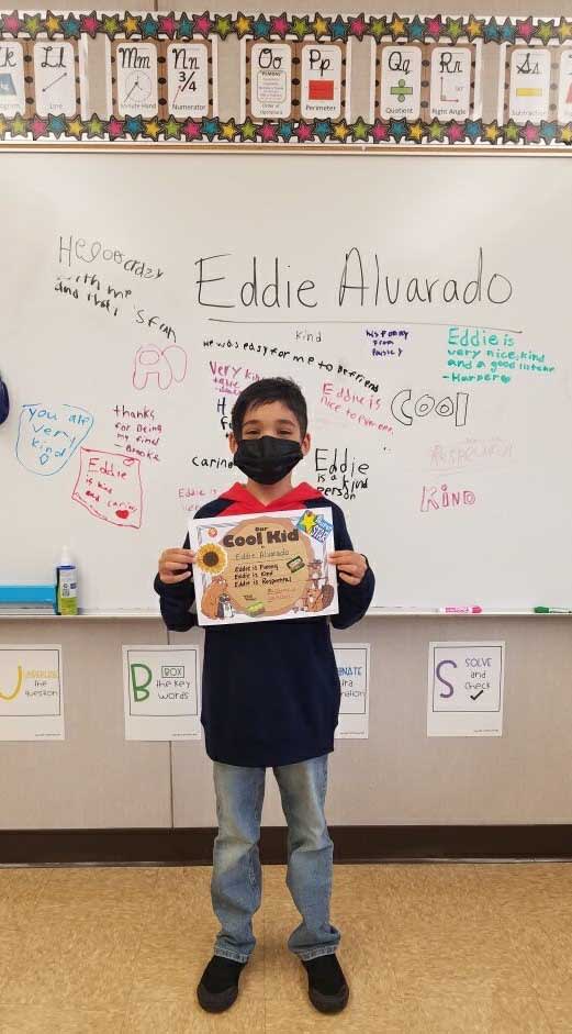 New 4th grader Eddie Alvarado in Mrs. Ramirez's class gets the "Cool Kid" award after being voted in for the honor by his classmates! PTSO Spot light Good Information