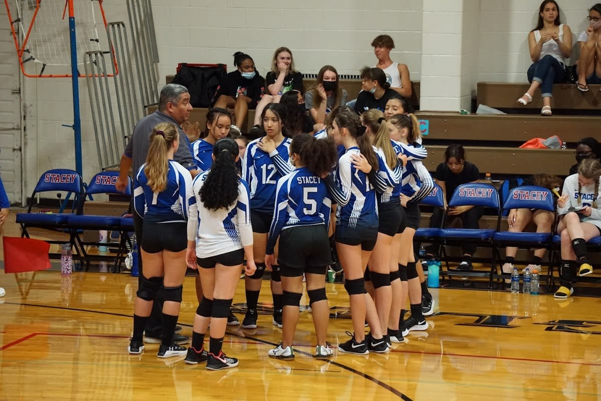 The Stacey volleyball teams started their season on August 2nd and have already played in one scrimmage and 2 games. Last Friday both JV and Varsity played against Kenedy HS. The JV had a rough game and could never get going losing 2-0(25-20,25-7). The varsity played in an exciting match and made an incredible come back after being down 2 sets to 1. It was a true team effort in pulling out the 3-2(25-22, 21-25, 24-26, 25-17 and 15-13) victory!!! Awesome images by: Mrs. Victoria Smith