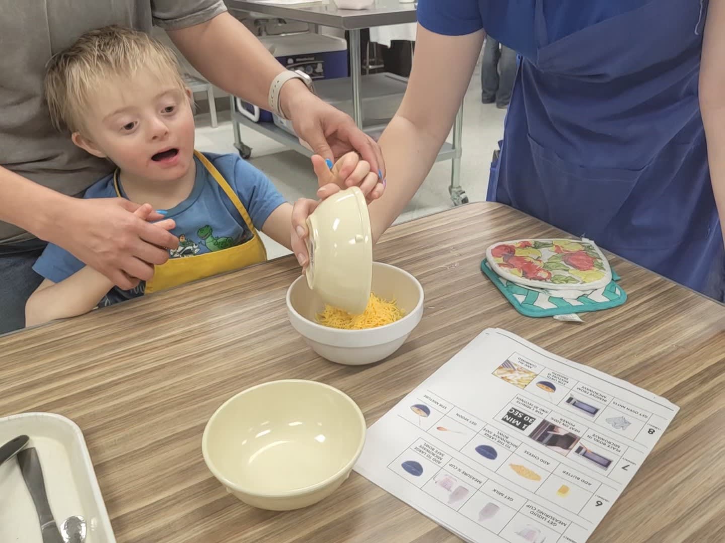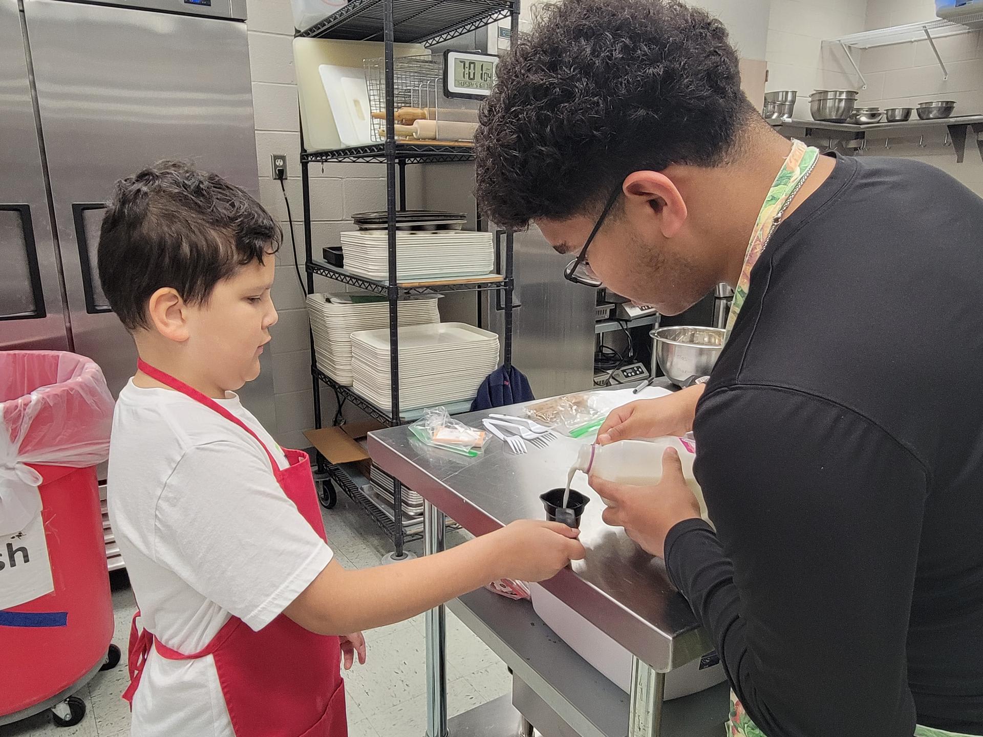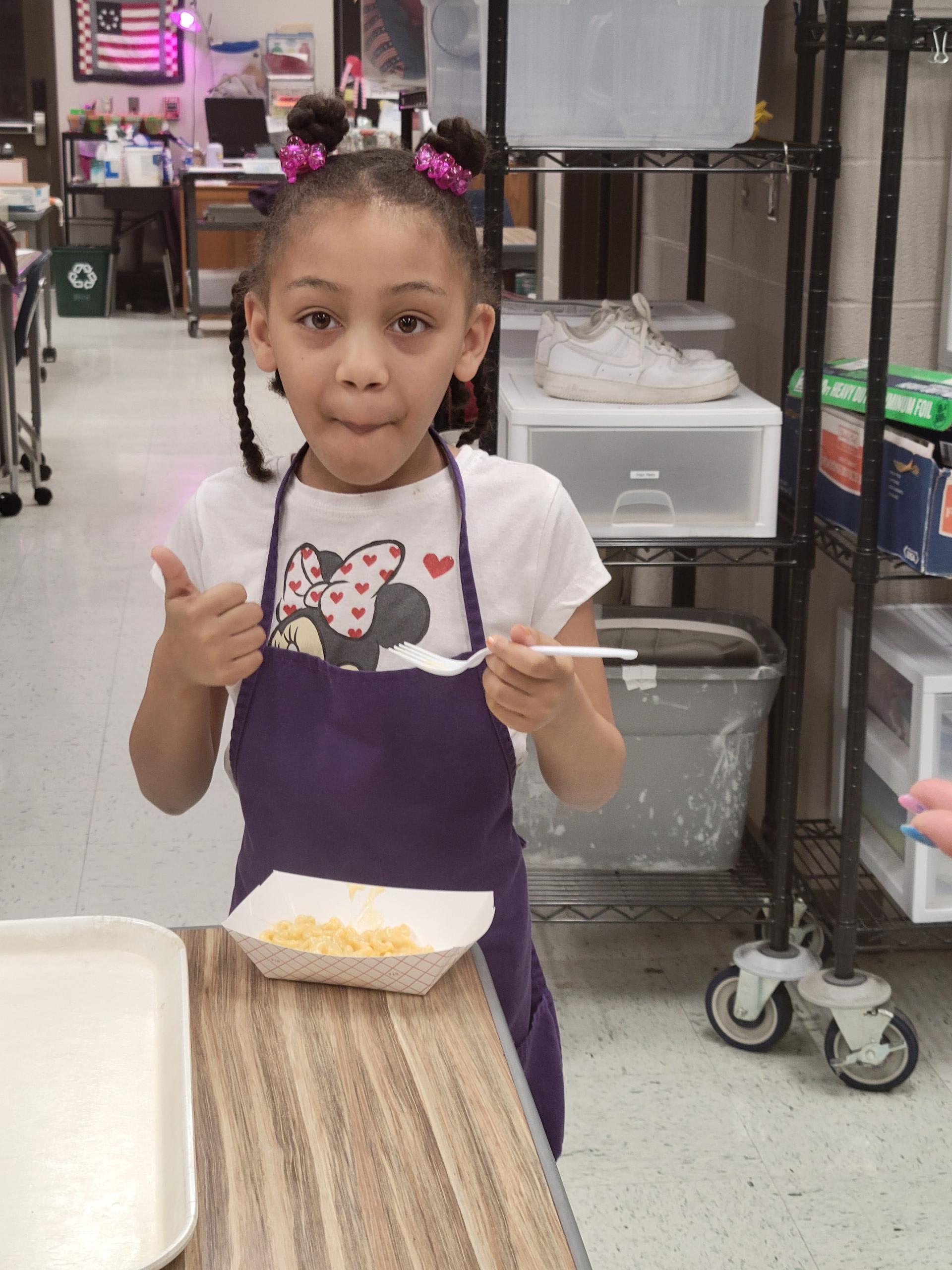 Mrs. Duron’s Family and Community Services class was assigned to plan and implement community project. Both Ty’Jeria and Johnna chose to do a “cooking club” with the ALE students taught by Mrs.Thompson and assistants. On two Thursdays, May 9th and May 16th, the ELA class came over to the high school kitchen to cook. The first Thursday they made a fruit parfait with yogurt, strawberries, blueberries, and granola. All students were very engaged and had a good time learning how to make this delicious snack. On May 16th, the students made microwave Mac and cheese. It was something new for all students and everyone had a good experience!