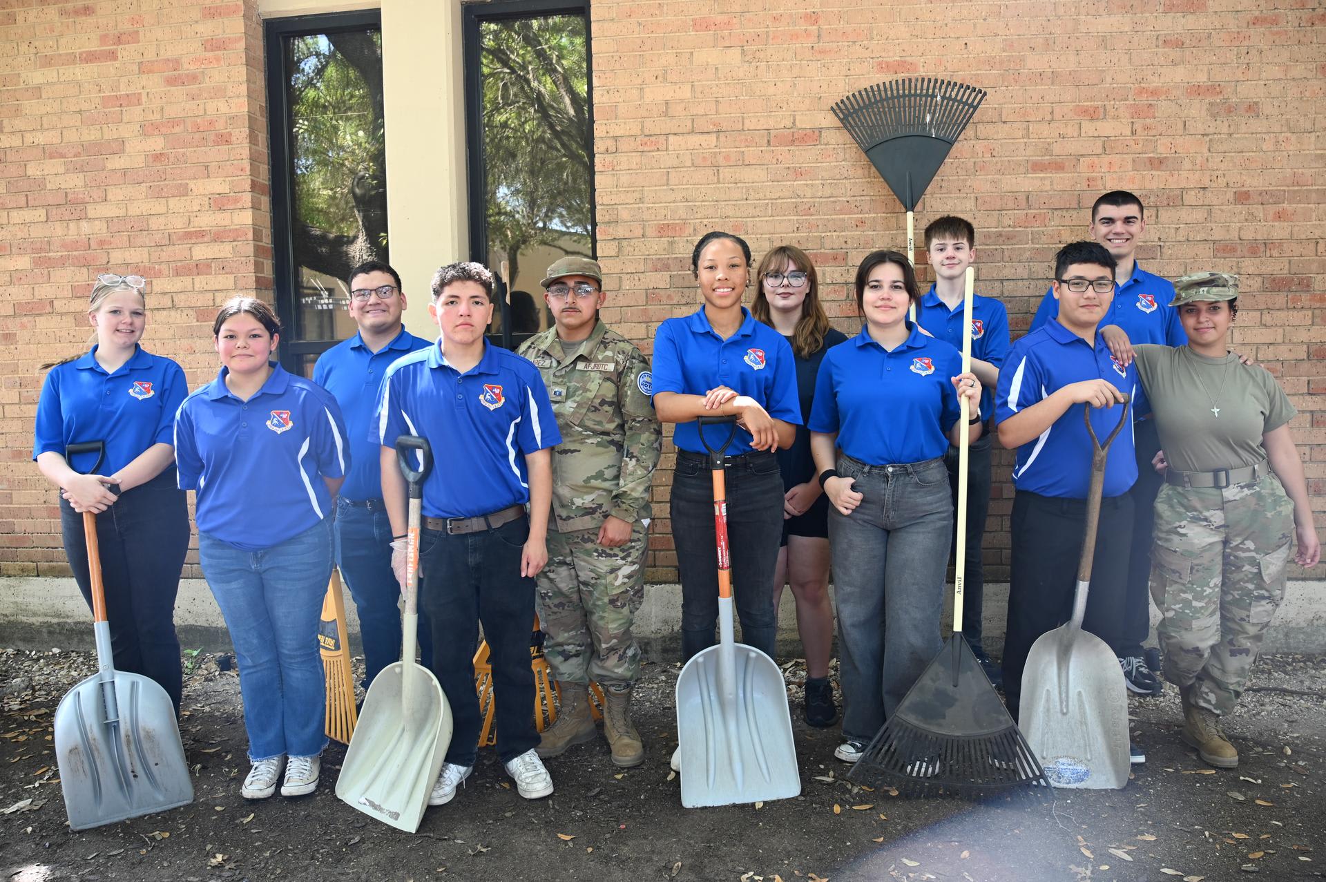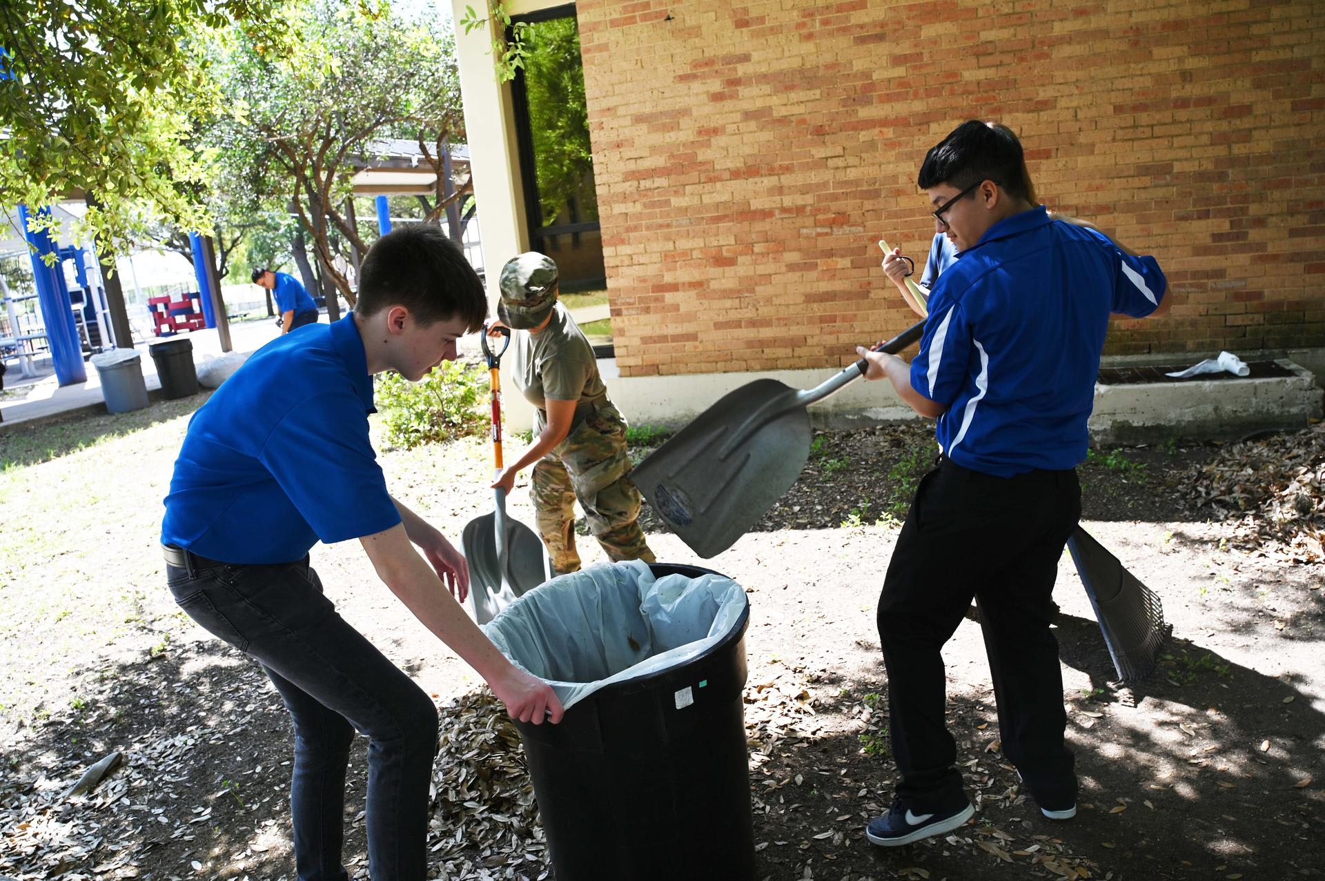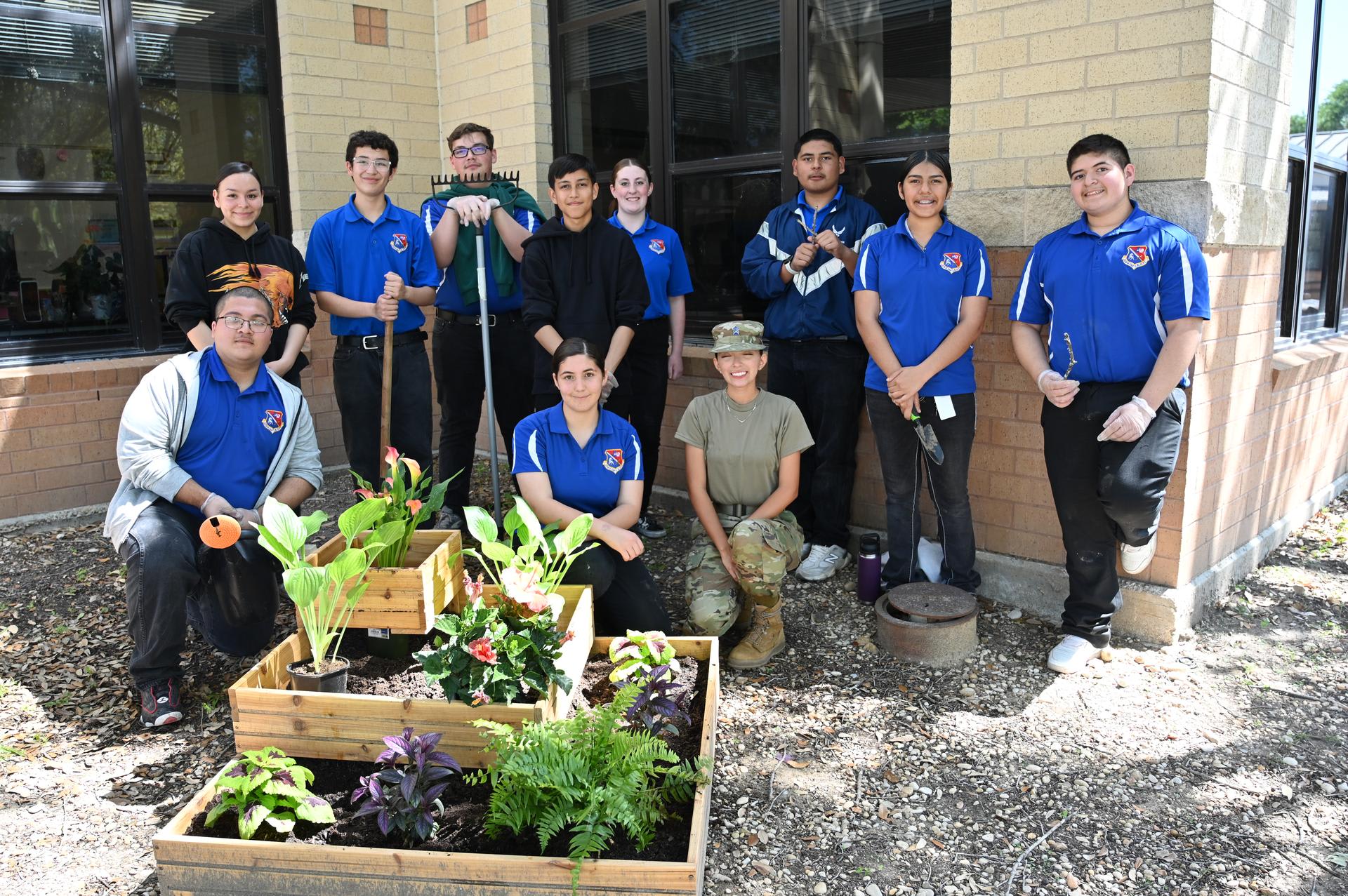 JROTC students from Stacey & John Jay HS teamed up to help beautify the Lackland ISD campus on Wednesday. They planted flowers, picked up trash and cleaned up leaves in the area between PreK and Kinder buildings. Their help was much appreciated. |