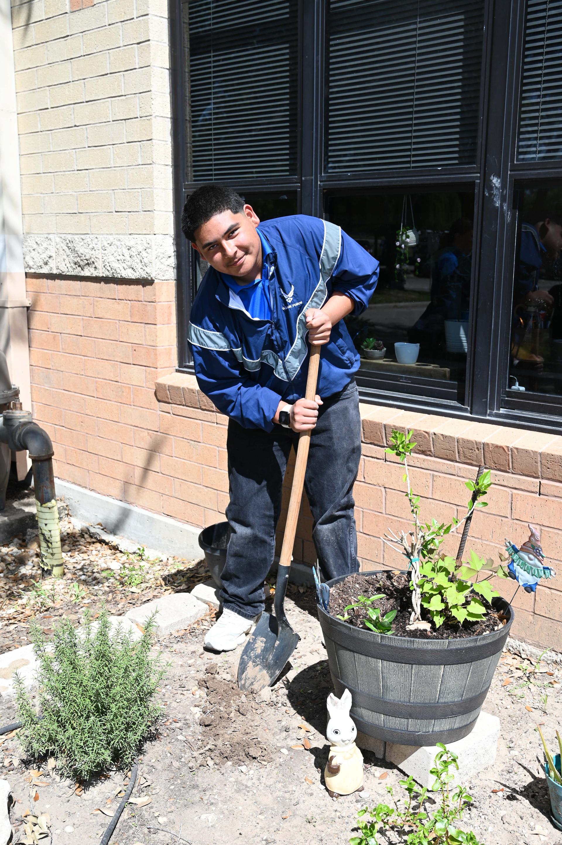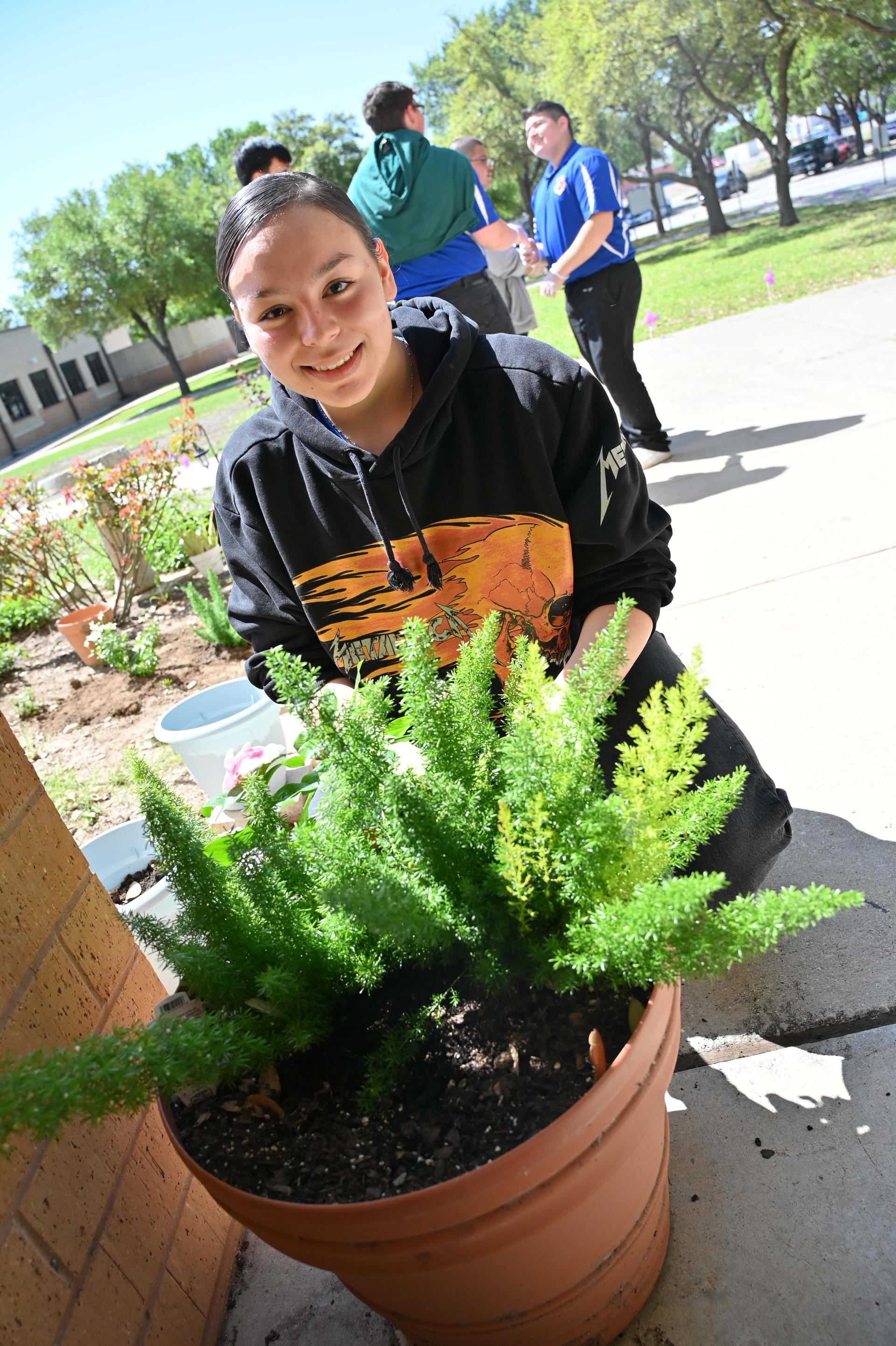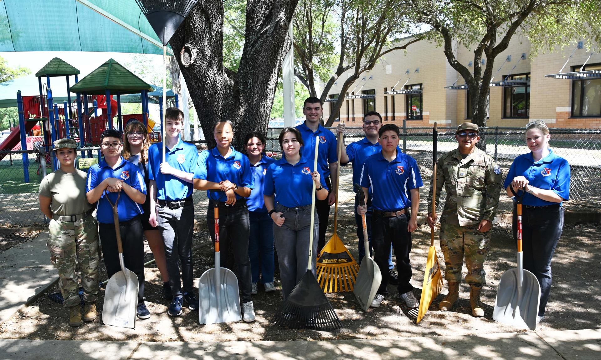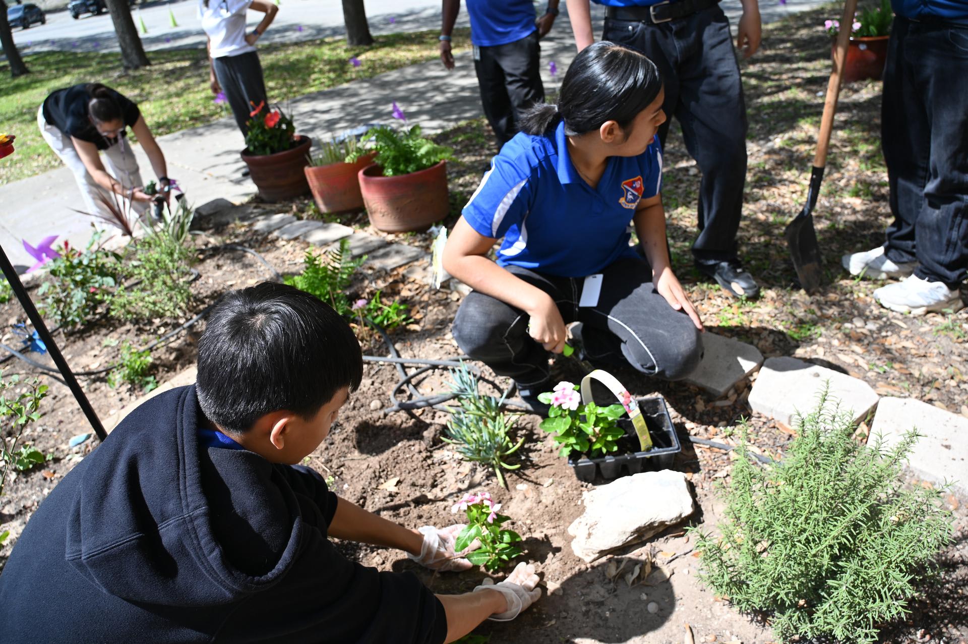 JROTC students from Stacey & John Jay HS teamed up to help beautify the Lackland ISD campus on Wednesday. They planted flowers, picked up trash and cleaned up leaves in the area between PreK and Kinder buildings. Their help was much appreciated. |