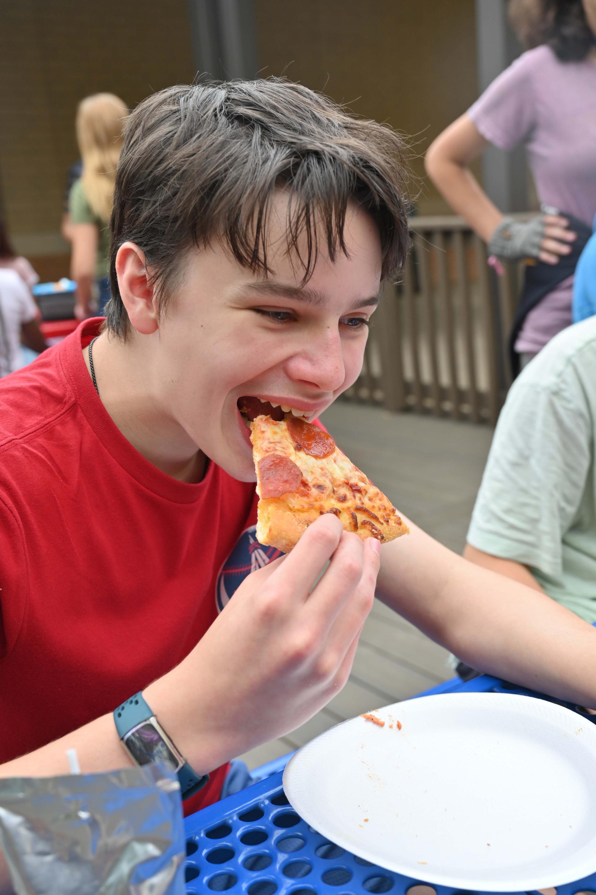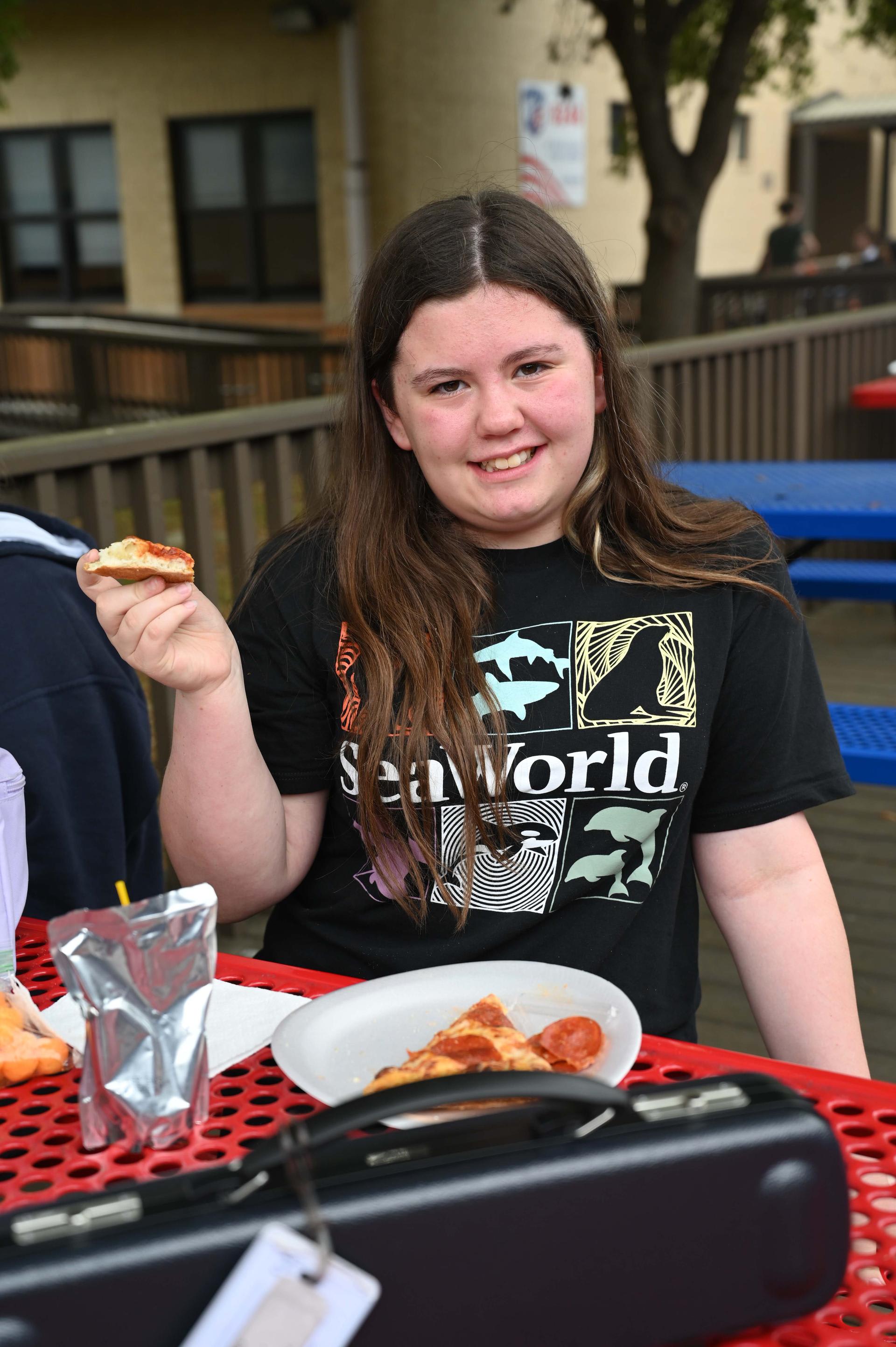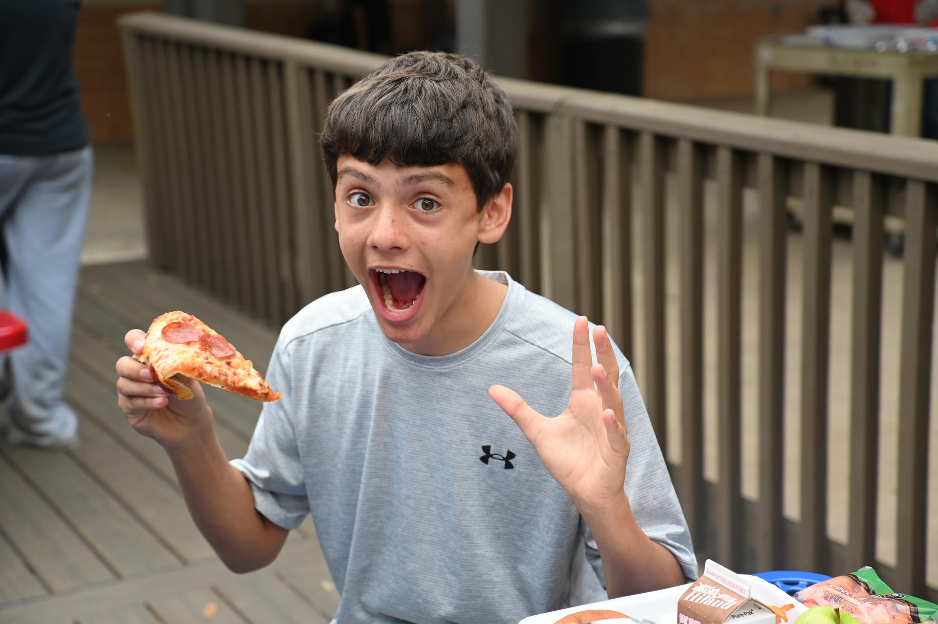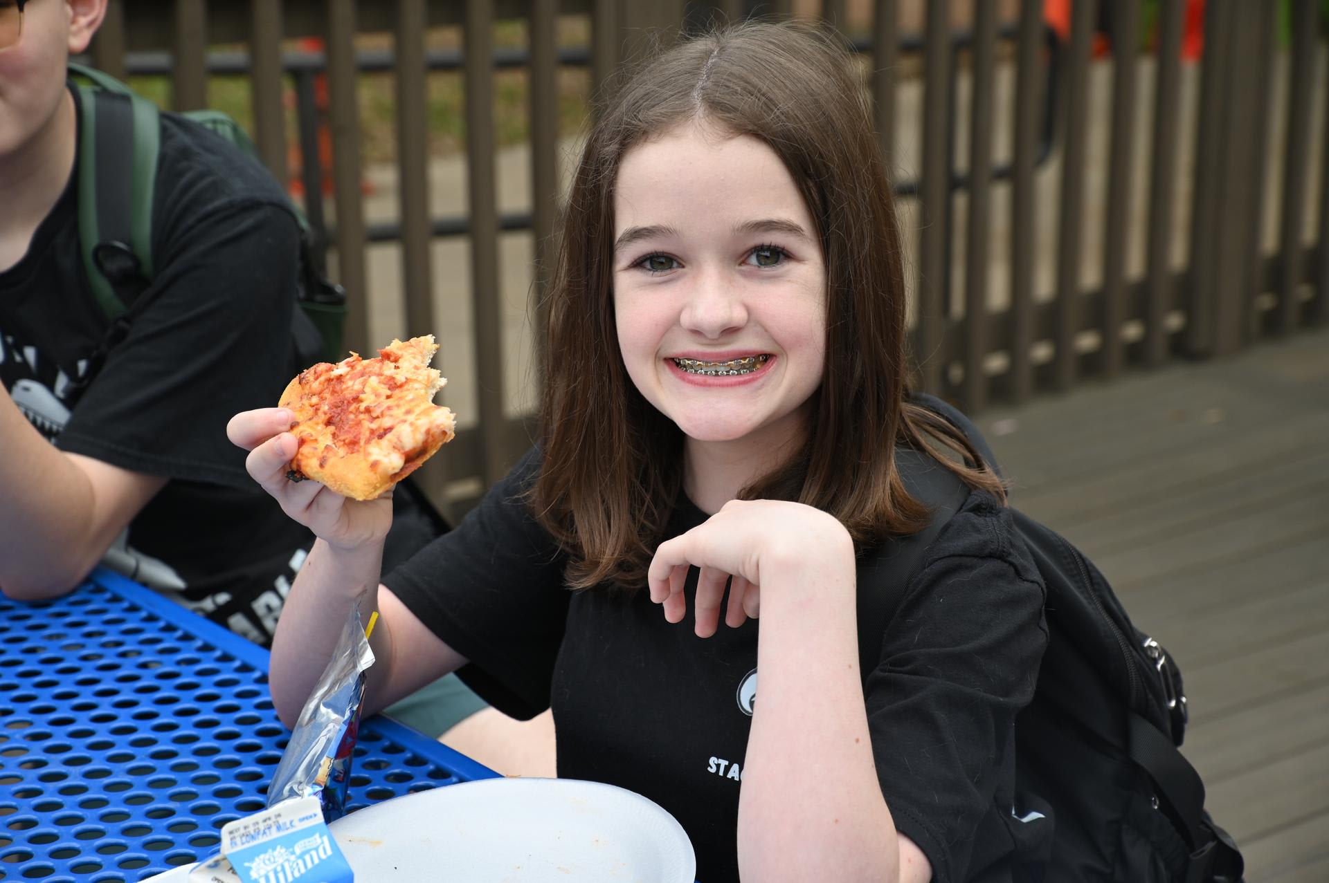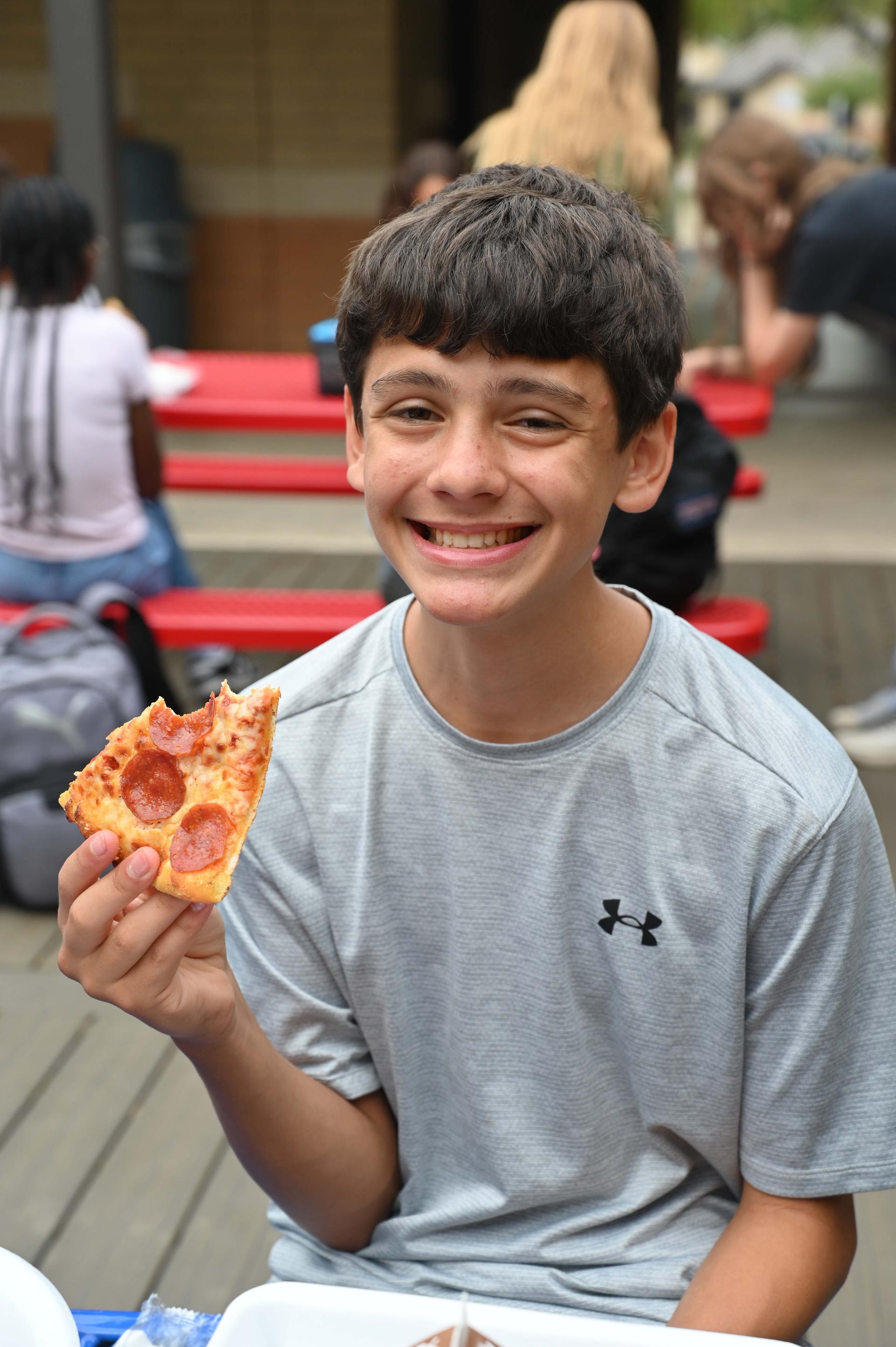 Jr. High Incentive Jr. High students with good grades and good attendance were awarded coupons good for free pizza on Monday! It was served up by Ms. Rorick & Dr. Medellin outside of the Stacey cafeteria. |
