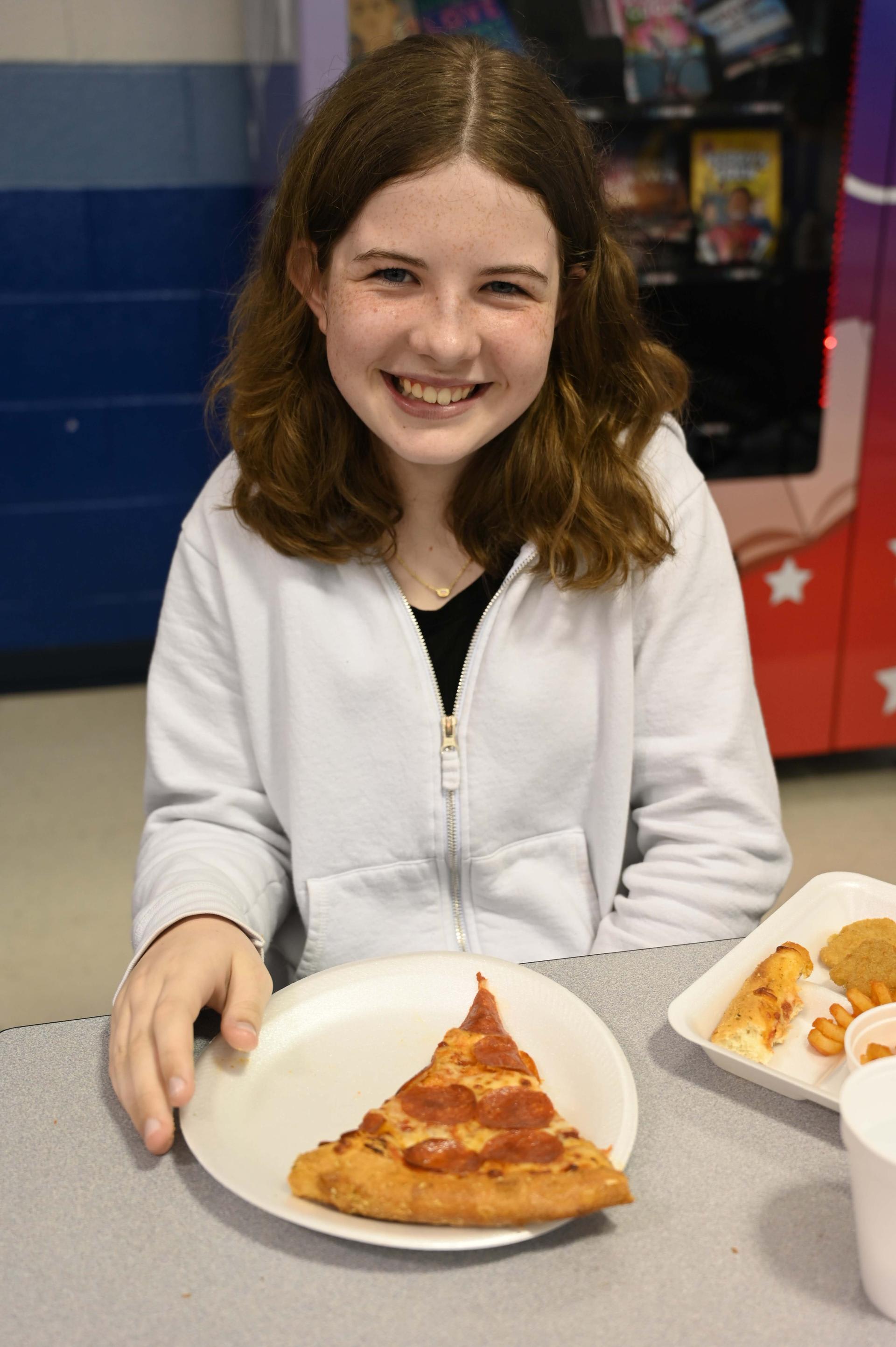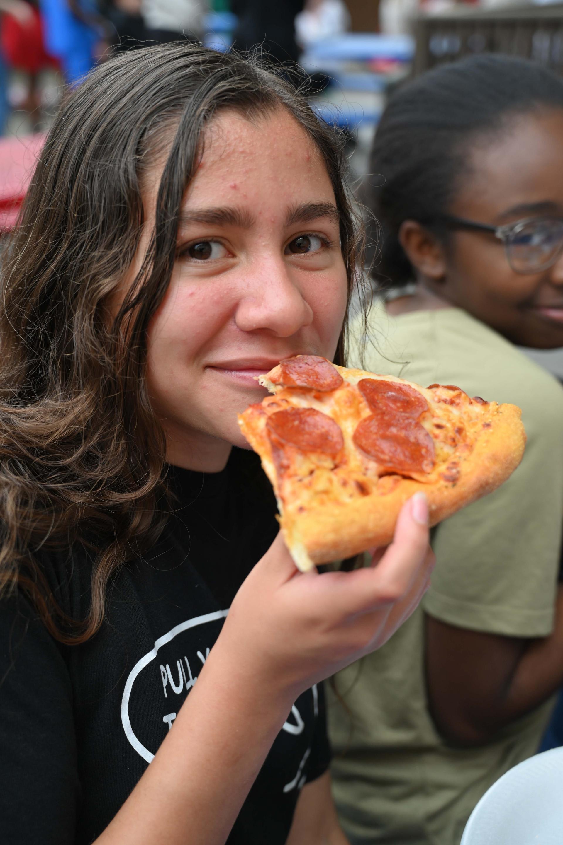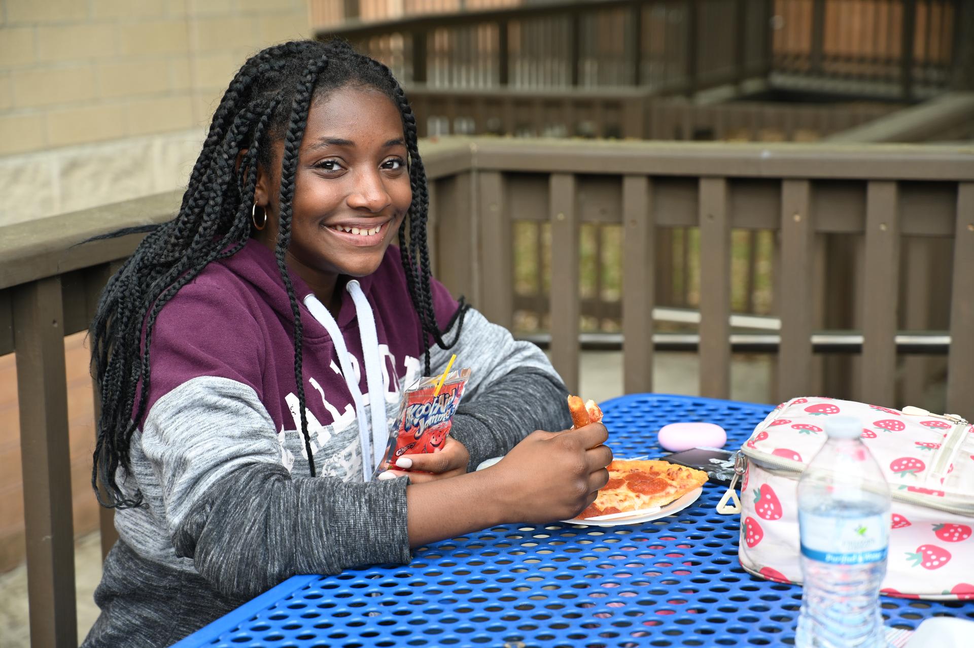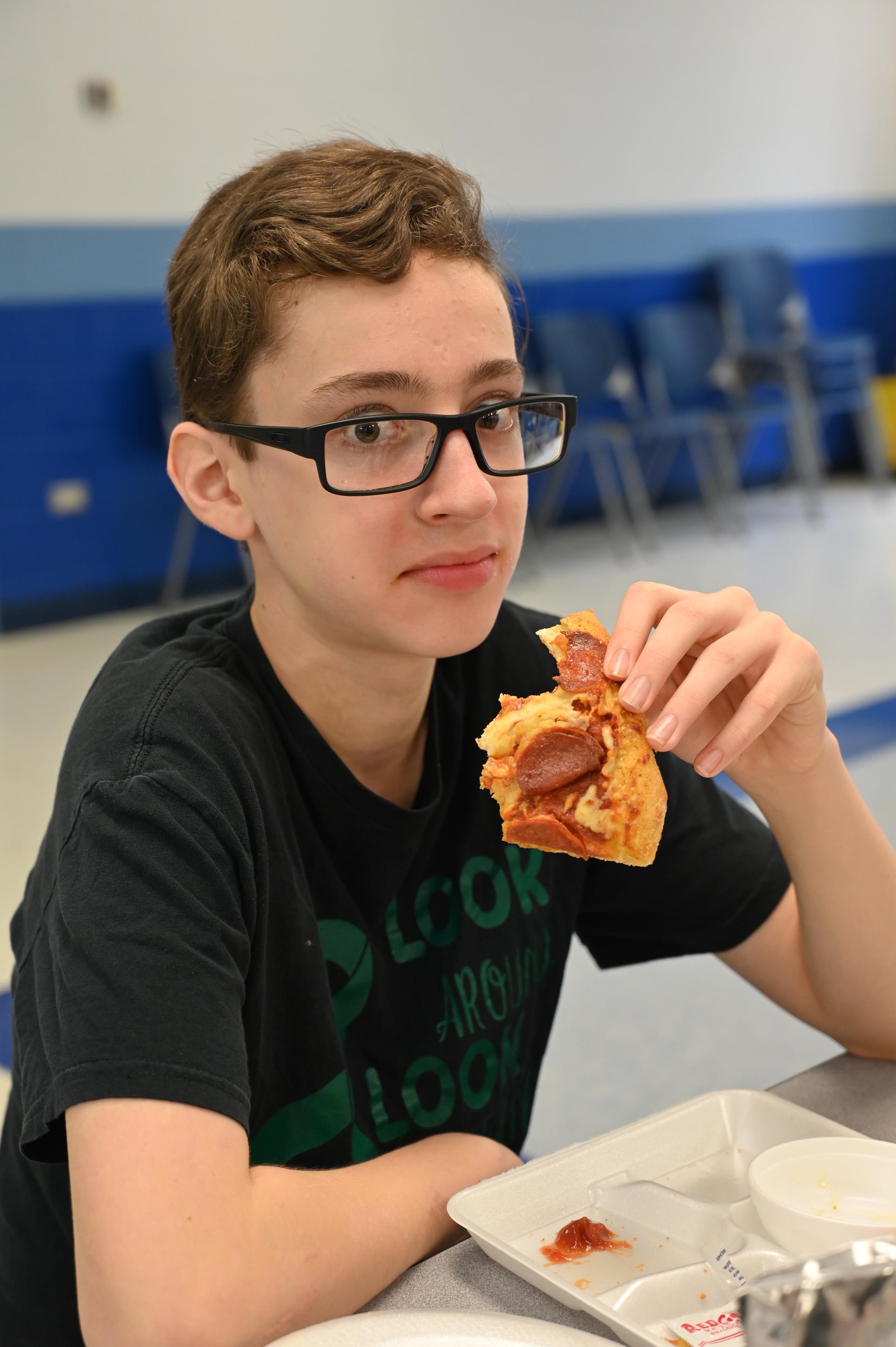 Jr. High Incentive Jr. High students with good grades and good attendance were awarded coupons good for free pizza on Monday! It was served up by Ms. Rorick & Dr. Medellin outside of the Stacey cafeteria. |