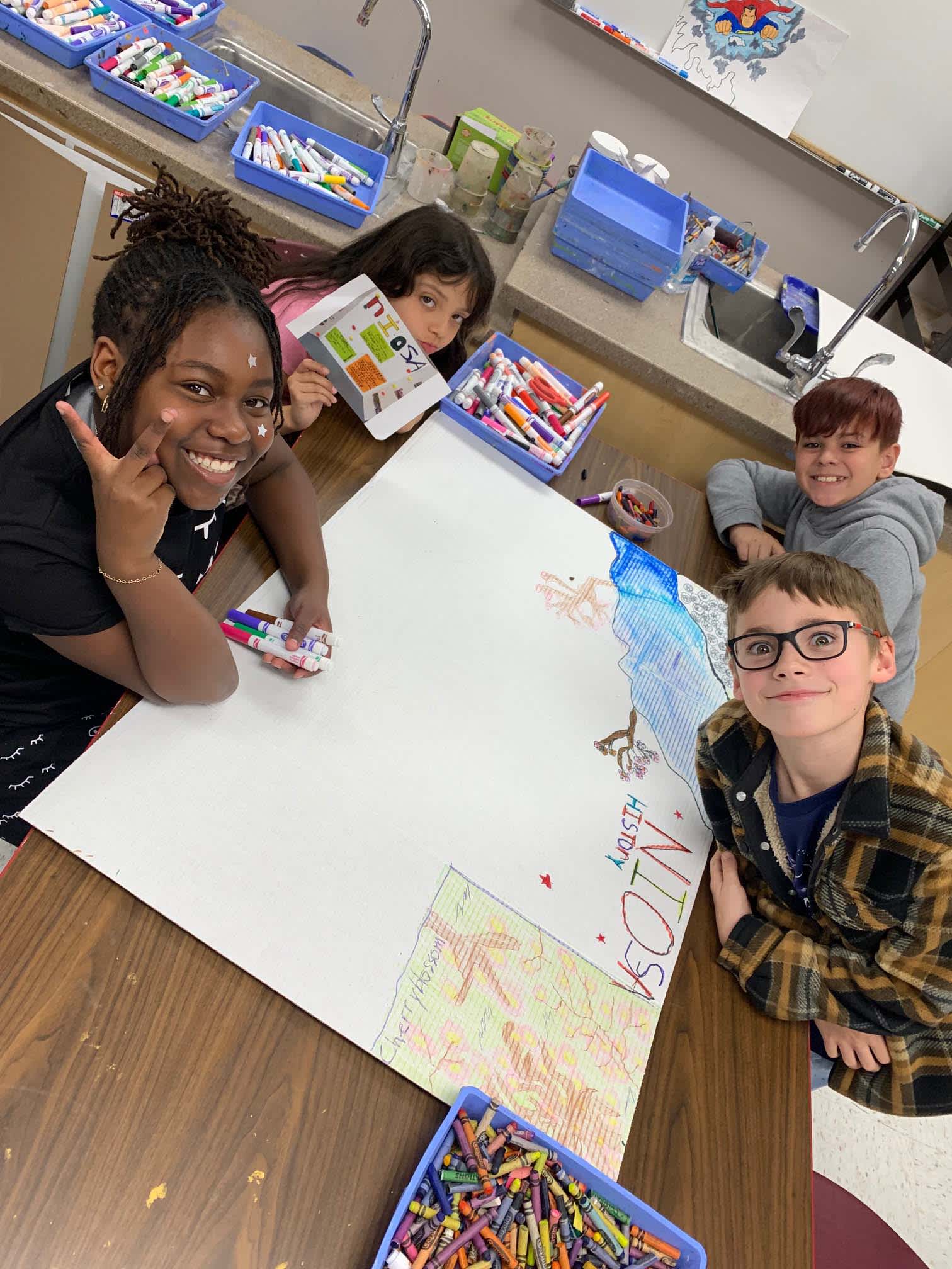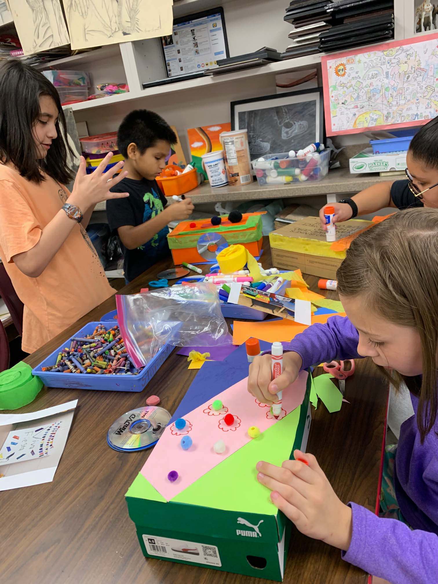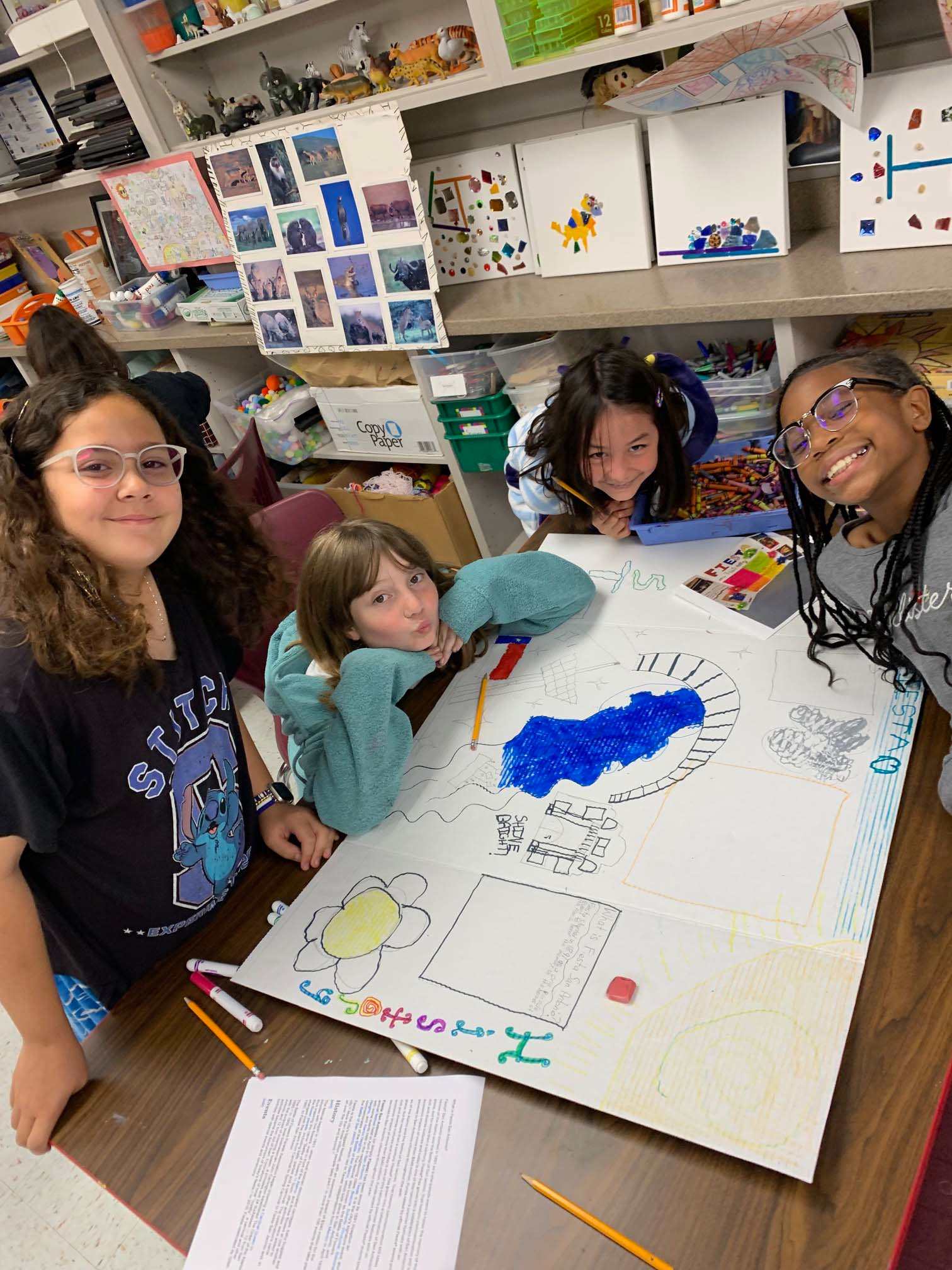 Cross curricular learning is happening as 4th graders in Mrs. Guerrero's class work on their Night at the Museum history of Fiesta projects in art class! |