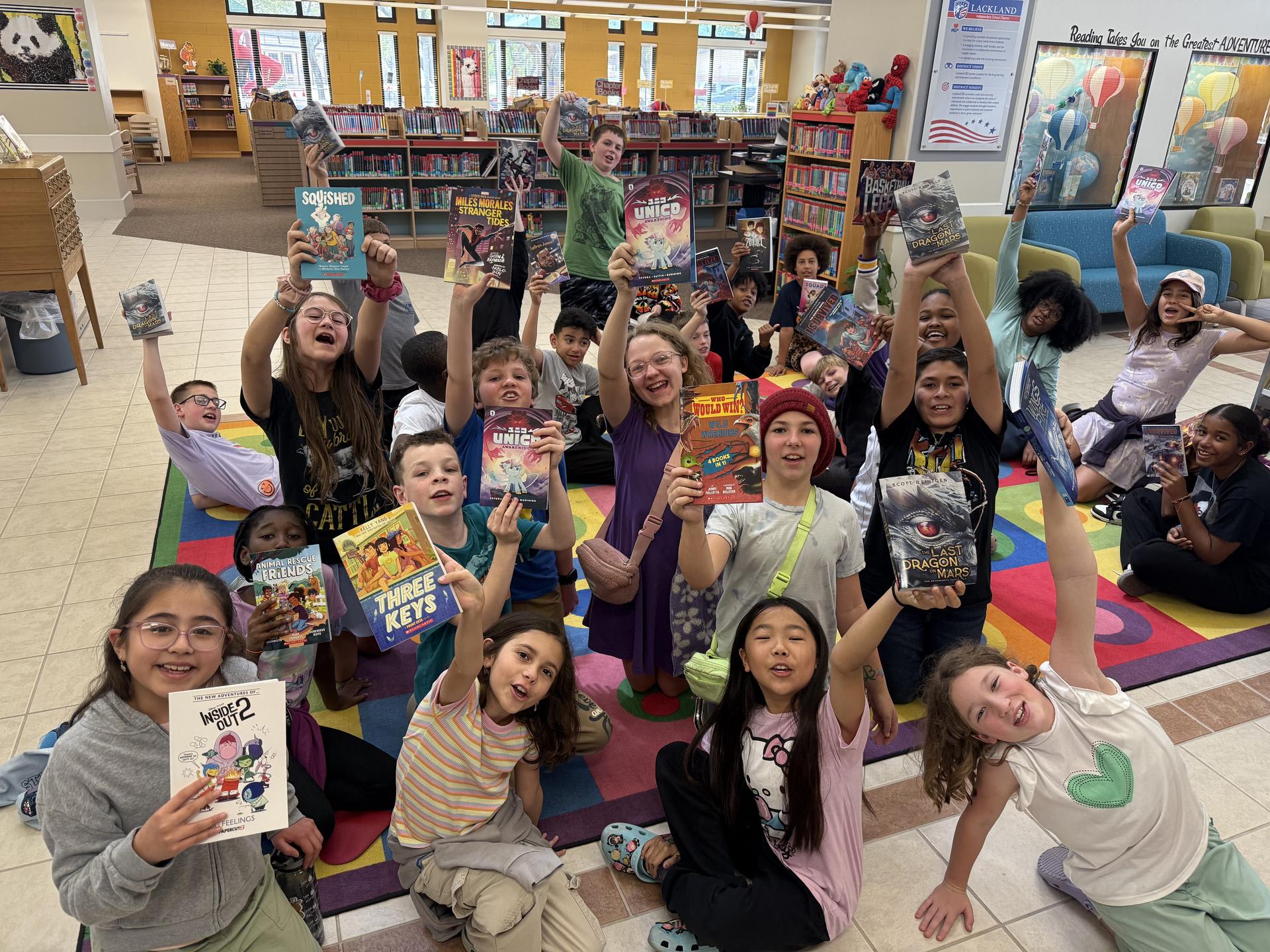 5th graders were shouting "Thank you!" for the free book! All students Pre/K through 5th grade recieved a book from the Book Fair from the elementary school admin! |
