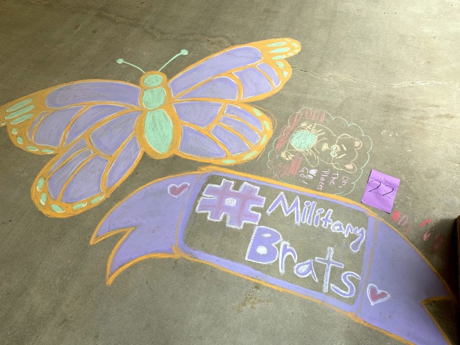 s2s and js2s would like to thank everyone who came and participated in Chalk It Up. All the artwork looked amazing so we left the judging up to the Military Child Education Coalition. The top two winners had a one point difference with group #10 coming in second. The artists on that team were Madisyn Pennington, Raelyn Jacobson, Emily East, and Mia Fersted. Their drawing depicted an umbrella, with a rainbow, sun, and a cloud. The quote was "The greater your storm, the brighter your rainbow.” The winning team was #22 with Faith Martini and her mom who drew the Butterfly and the #Military Brat. Congratulations to these two groups!