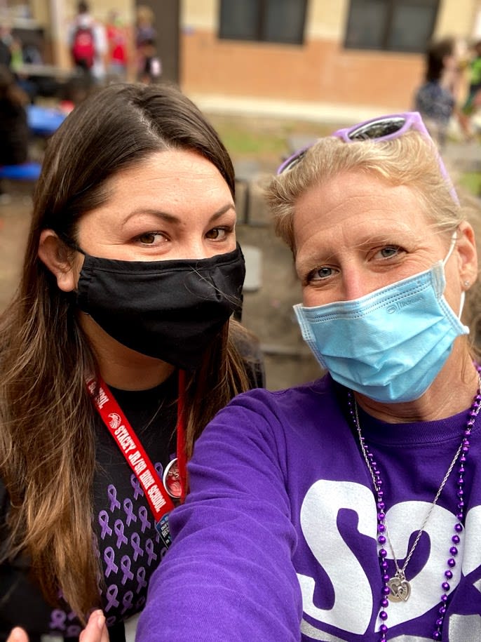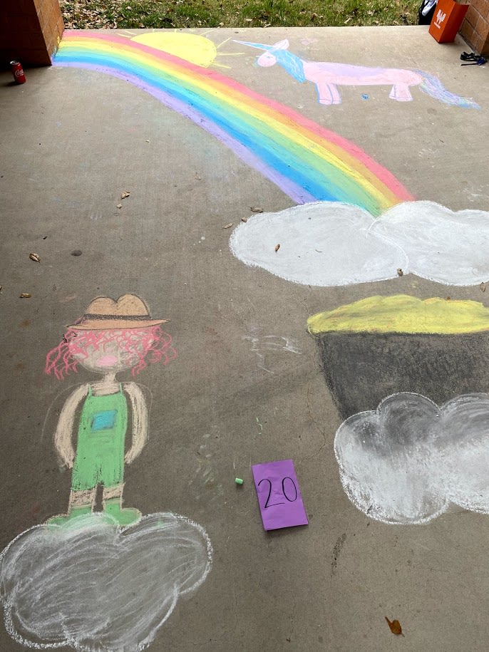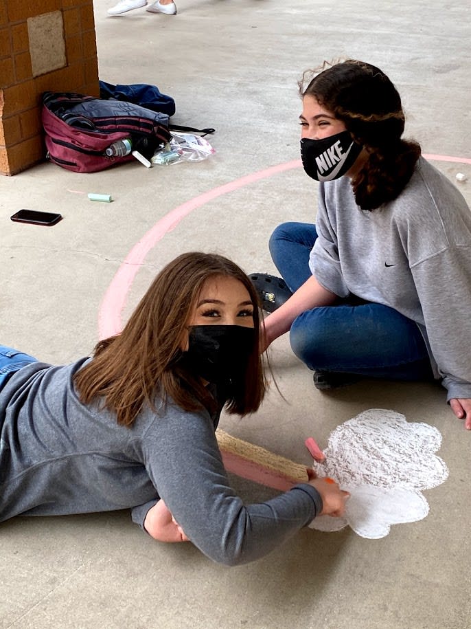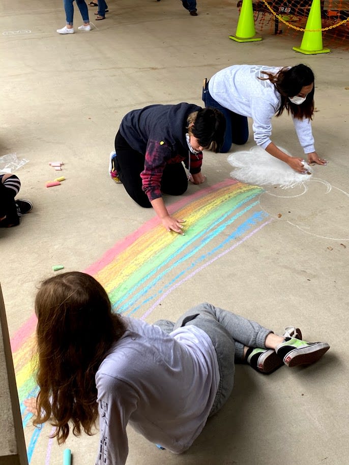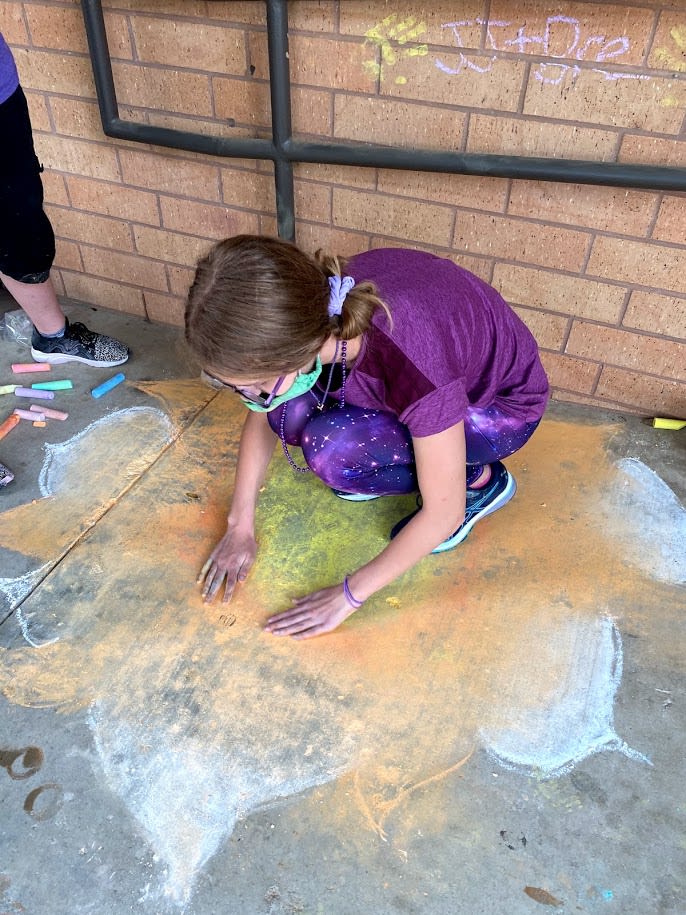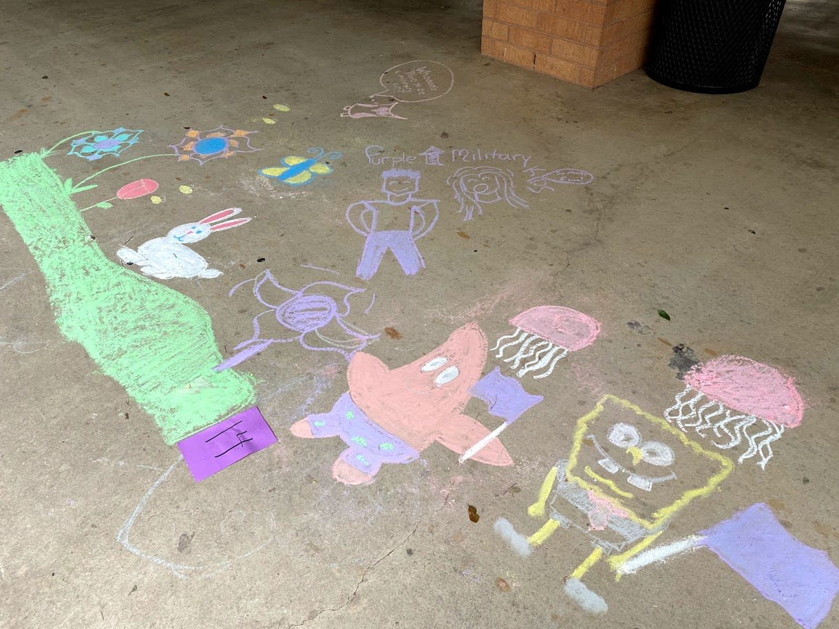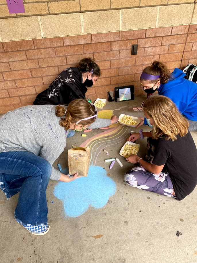 This past Thursday, Stacey’s S2S Club hosted Chalk It Up! The goal being to bring everyone together and to have some fun. Students, family members, friends, and staff members worked in twenty-four small groups to draw beautiful artwork on the school’s walkways. There was a variety of art created ranging from abstract, colorful, seasonally themed, to Purple-up inspired, and video game related. The Club’s members worked hard as well serving drinks and snacks to the artists. As many people participated in this event, they enjoyed the sounds of their favorite songs and the time they spent with their groups. At the end of the event, many participants were rewarded with a goodie bag full of fiesta themed items and gummies.