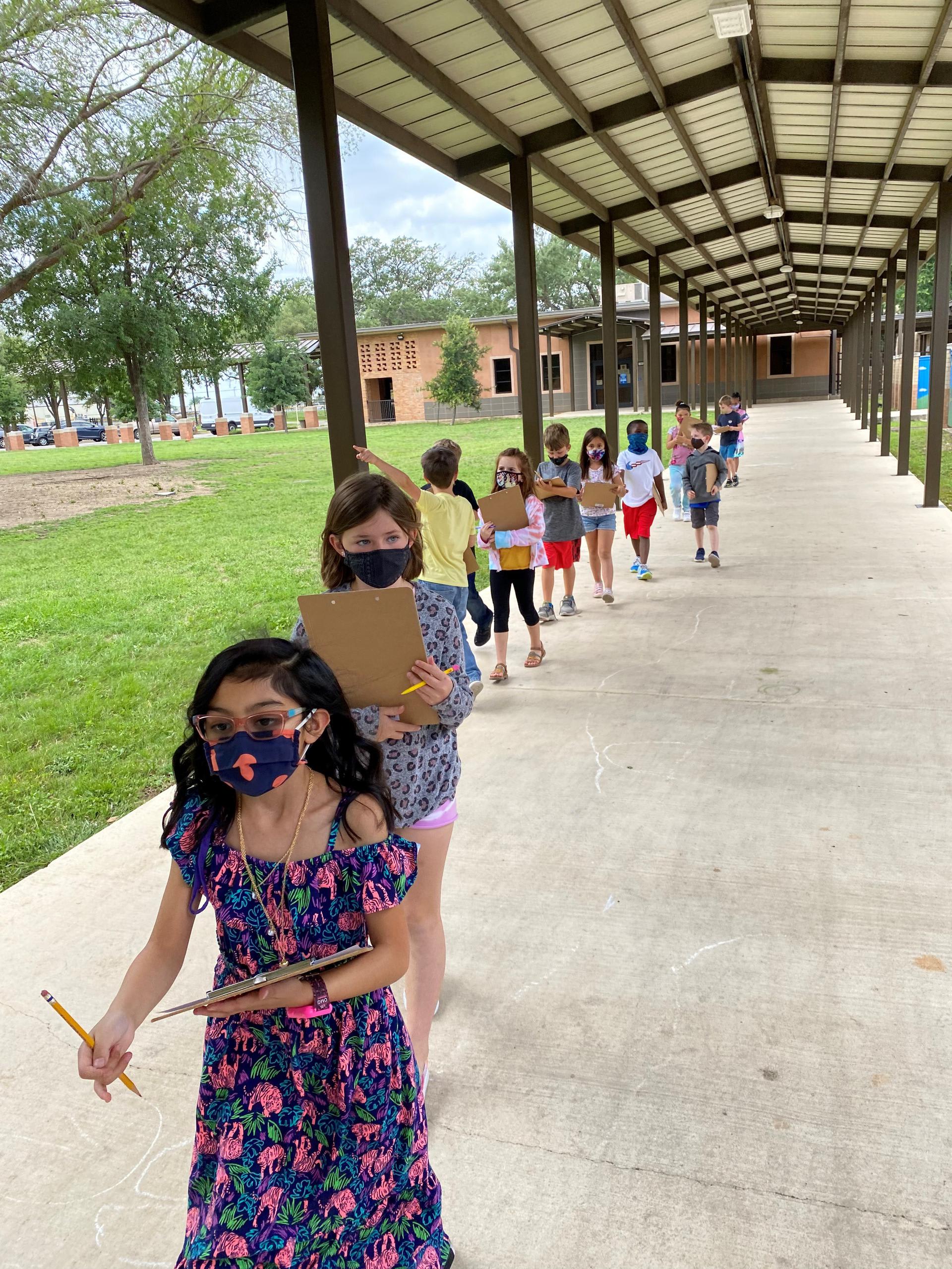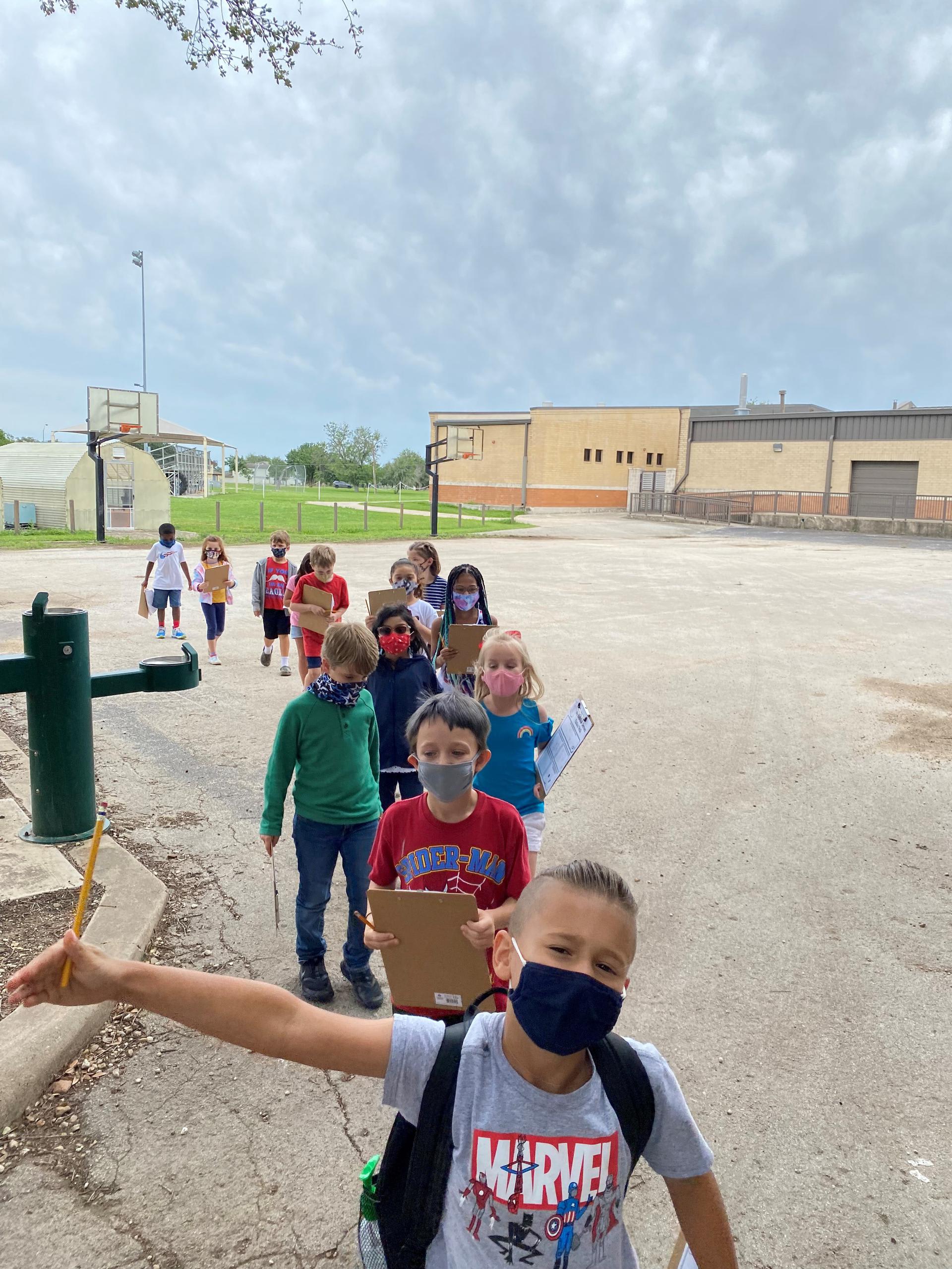 Students in Mrs. Guerrero’s class going on scavenger hunts using their five senses to review Language Arts, Science, & Math skills they learned this year. They did so well & had a great time!
