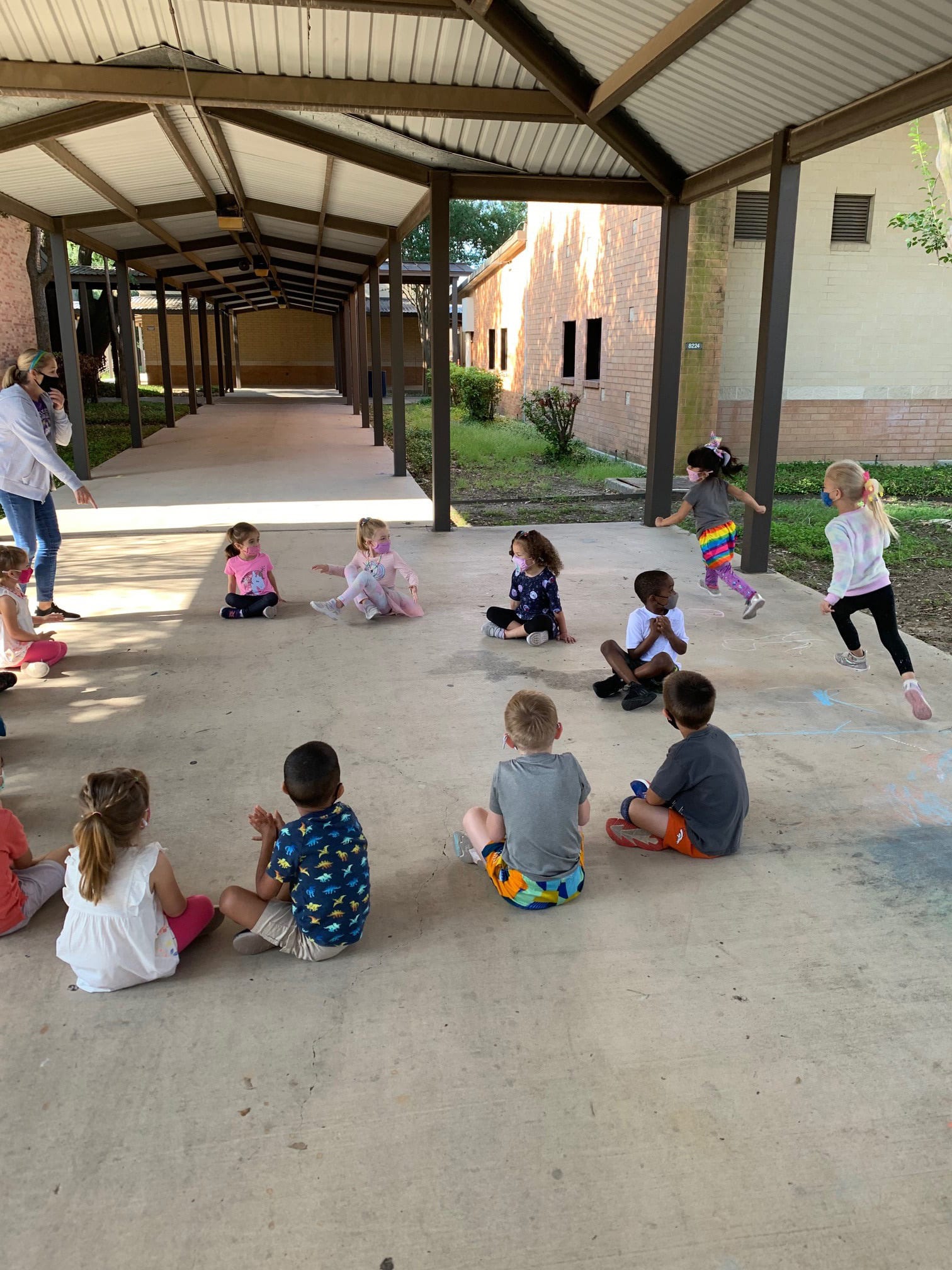 Ms. Perez’s whole class participating in Duck Duck 🦆 Goose!!