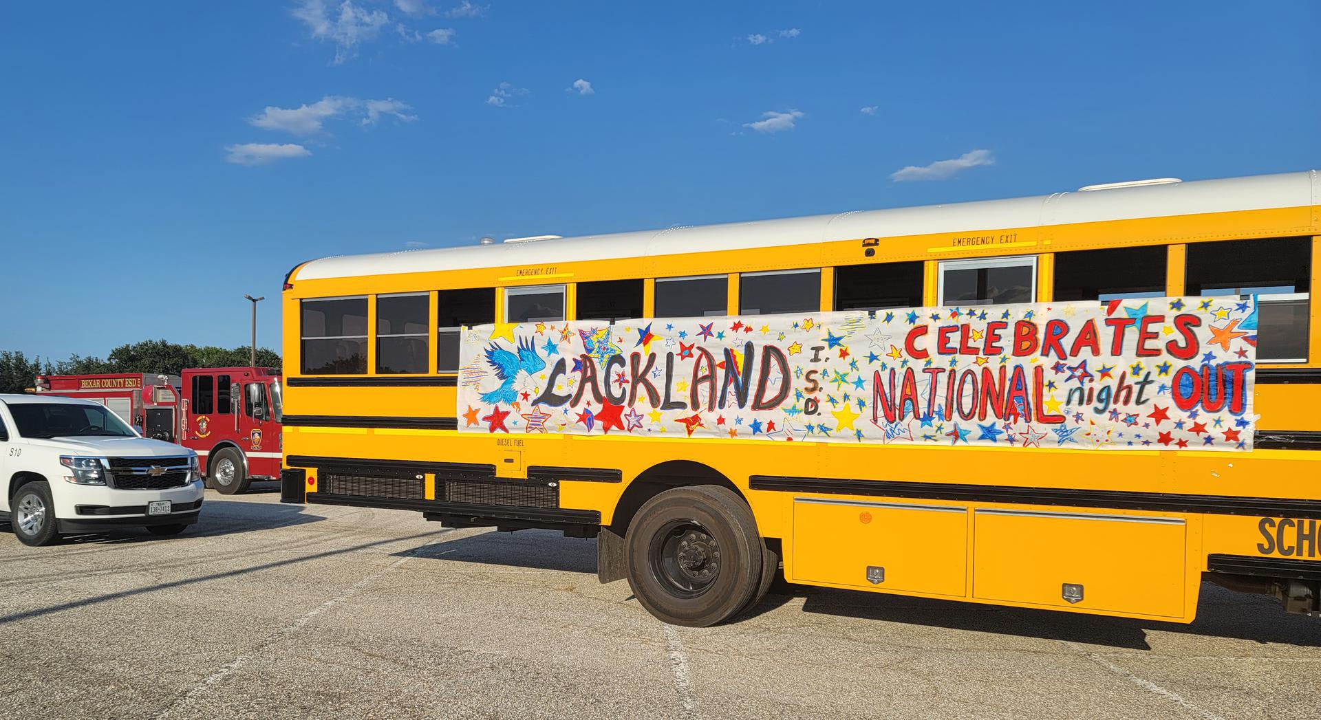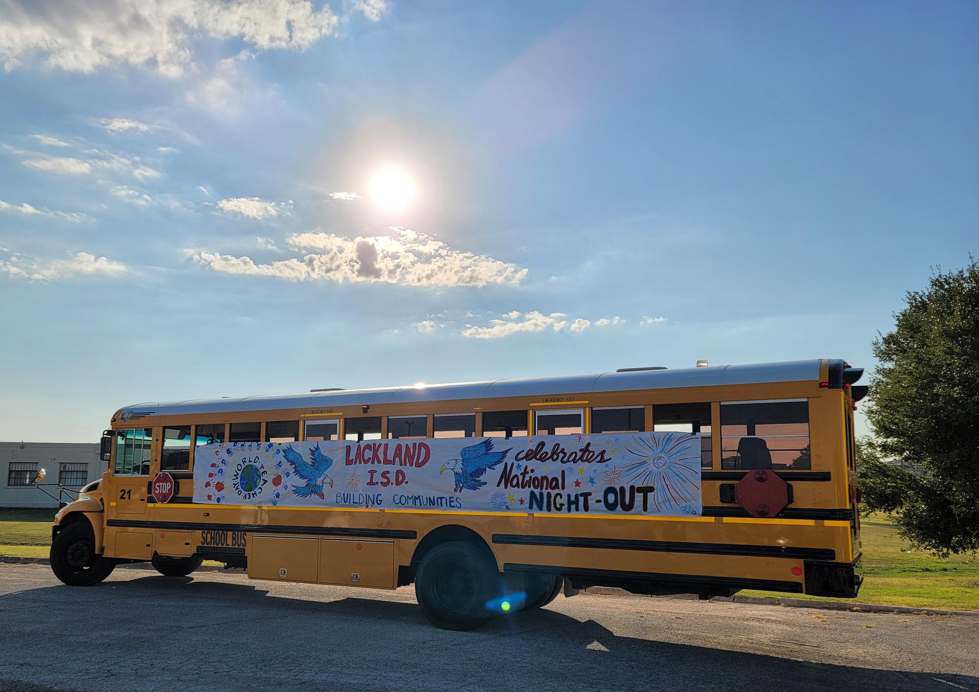 Stacey Jr. / Sr. High Art Teacher Ms. Roberta Stege! Thank you for your tremendous support of the JBSA-Lackland National Night Out parade. Community members, including our very own students, were super excited to see the Lackland ISD bus adorned with such beautiful artwork. It was an exciting evening for all.