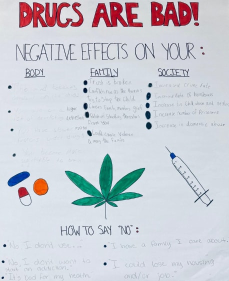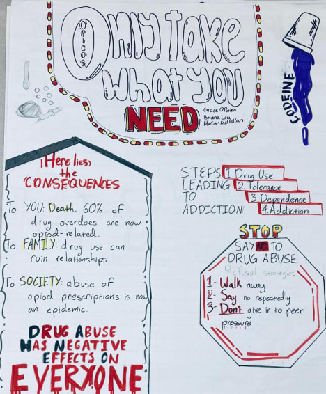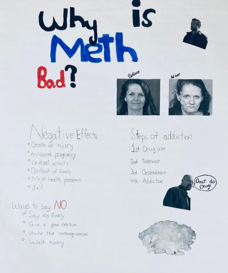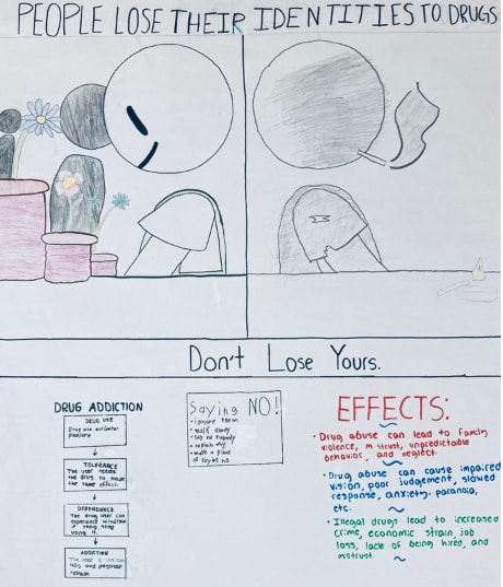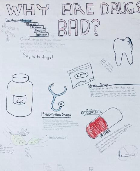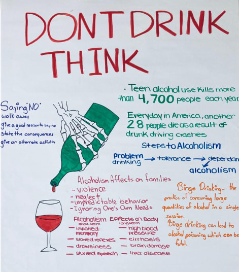 This week, Stacey Junior-Senior High School students worked together in groups on public service announcements (PSA) in Mr. Hernandez's three health education classes. The students were asked to create posters that detailed the negative effects alcohol and/or drugs has on them, their body, their family and friends as well as society. They also were asked to include the steps that lead to alcoholism/addiction and the ways they can say "no" to alcohol and drugs. Below are six examples of the posters that were created.