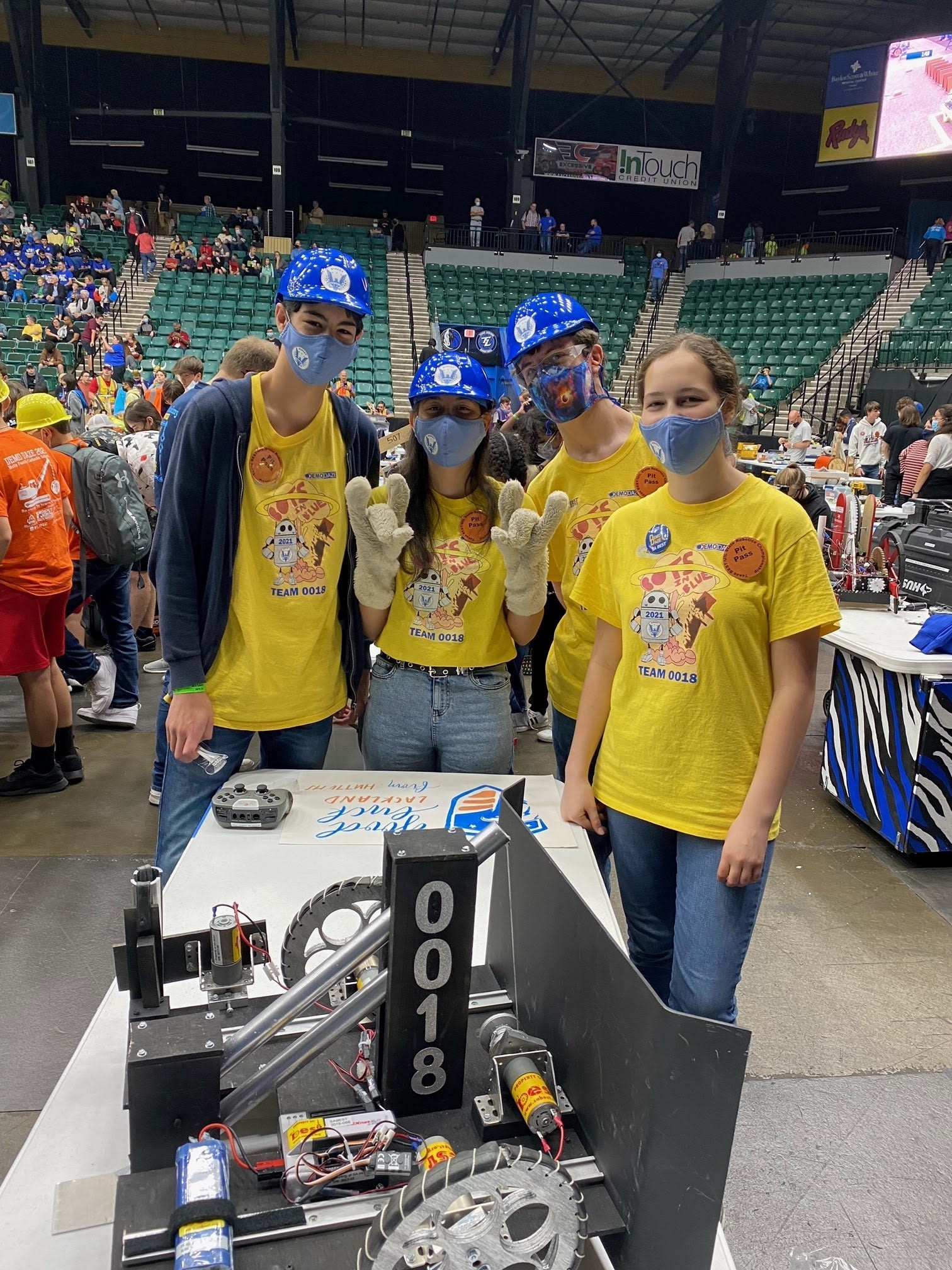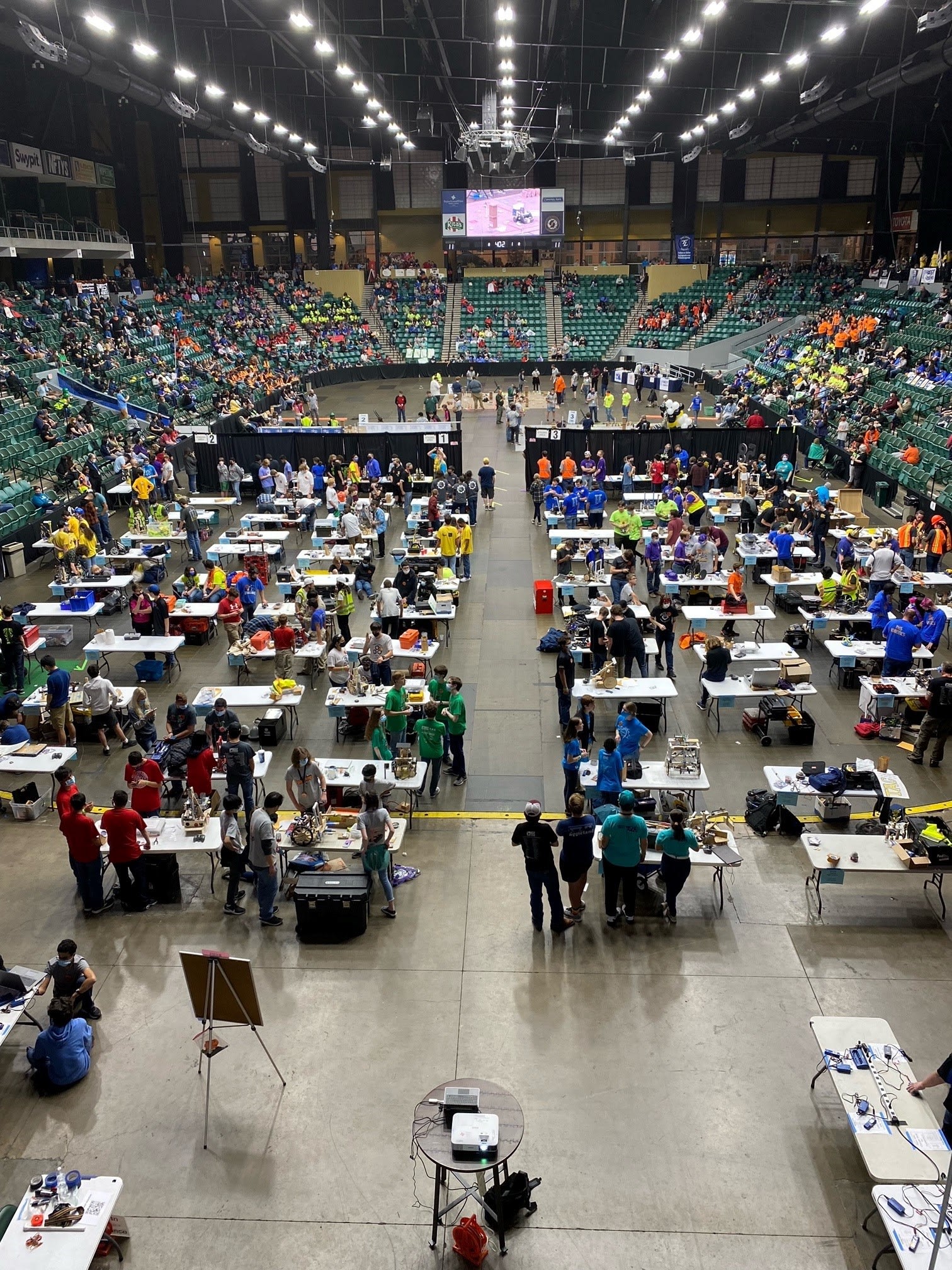 Rebecca Huerta and Ken Kinsey traveled with the students as they made a 30 minute marketing presentation as well as another 30 minute exhibit presentation to professional robotic engineers who judged them in their presentation skills, engineering knowledge and robot design decisions. The team also participated in 8 matches of game play against 74 other teams from Texas, Louisiana, Arkansas, Oklahoma and New Mexico. They finished the UIL competition in the top 10 in the 1A-4A school category and in 2nd place among the 2A schools in that category. Special recognition goes to Caden Miner who designed the yellow game t-shirt that garnered 2nd place overall.