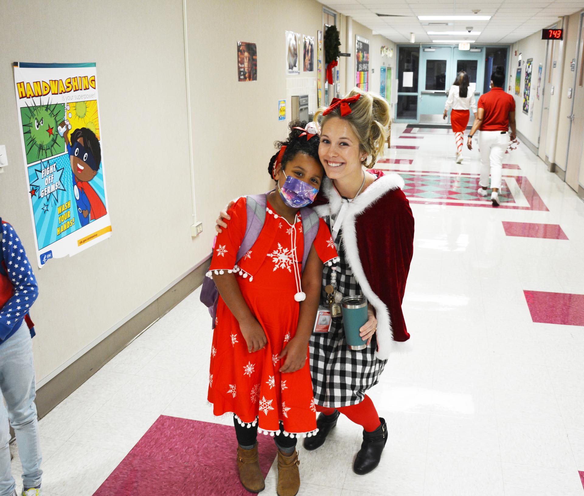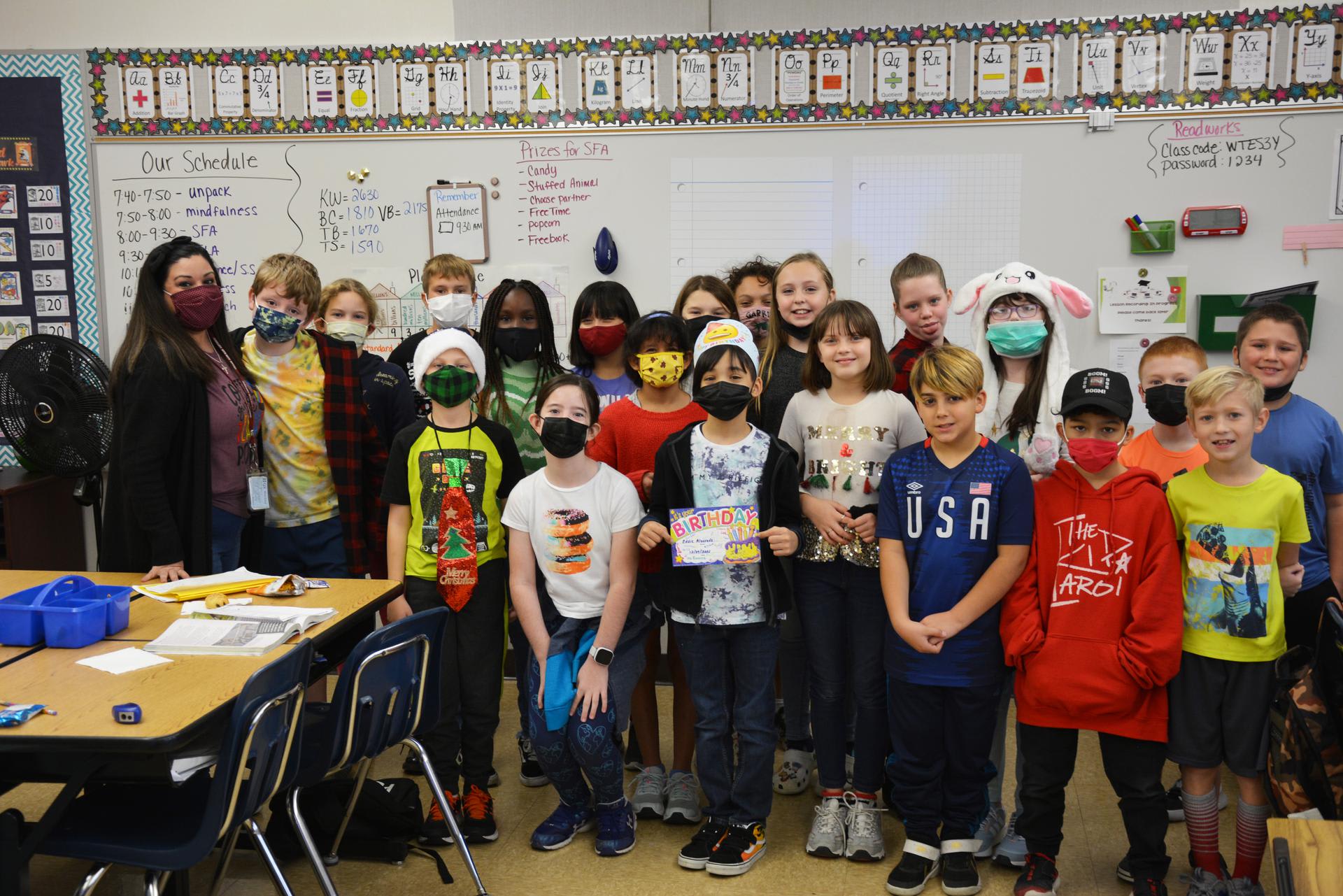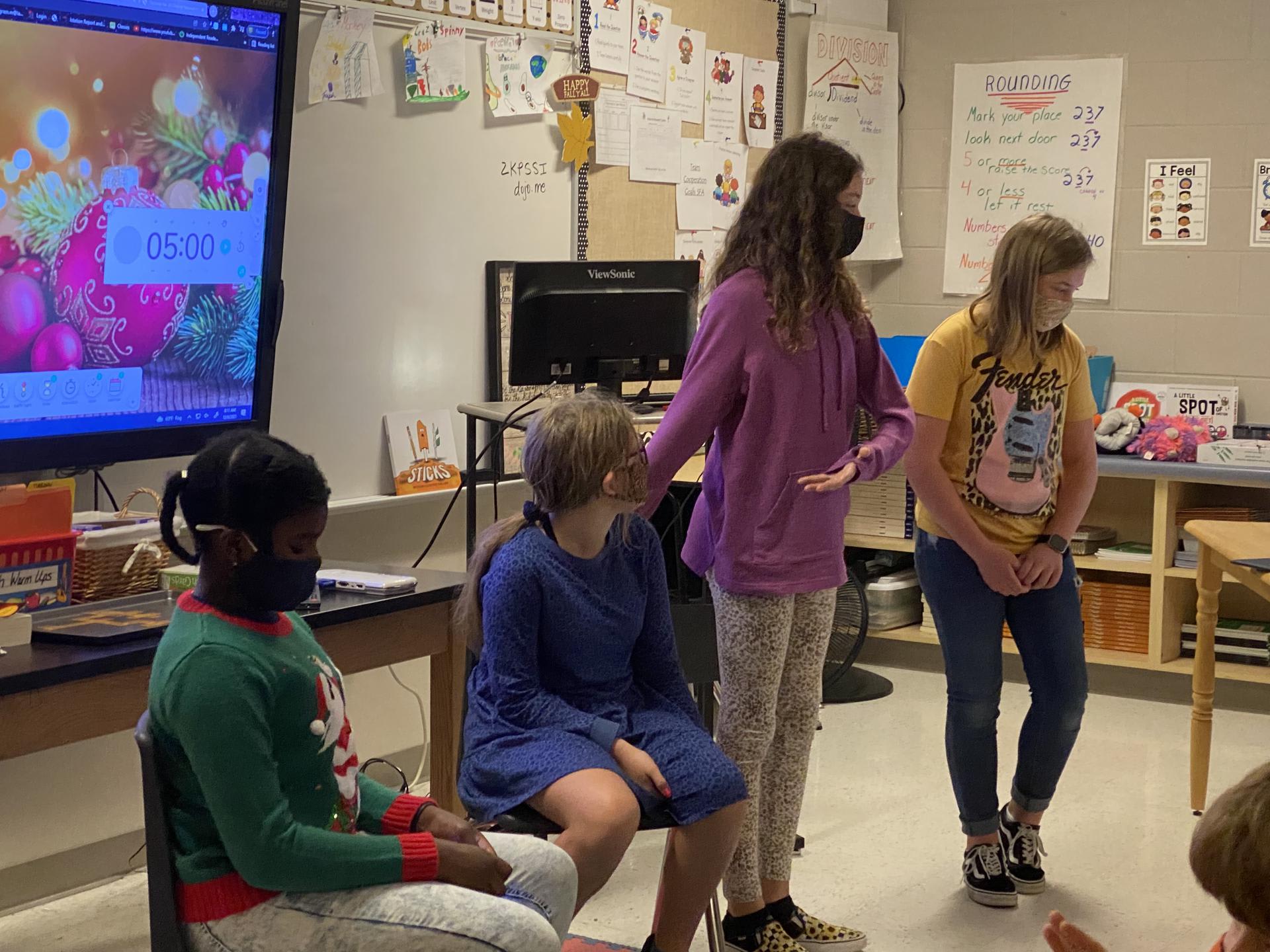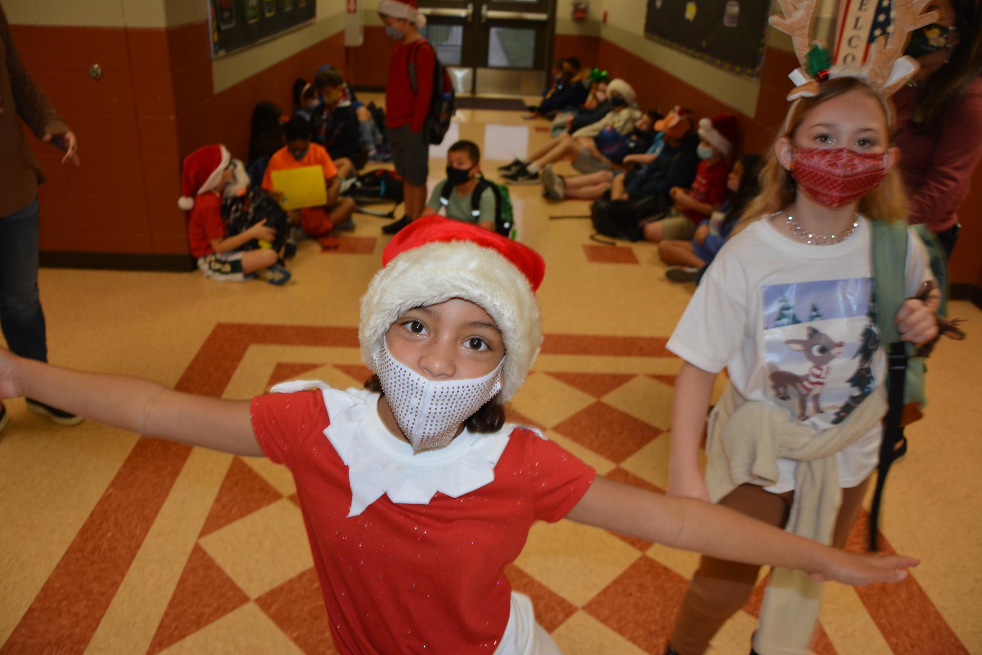 Ms. Herrera’s 1st grade class enjoying parachute Christmas carols in music. |