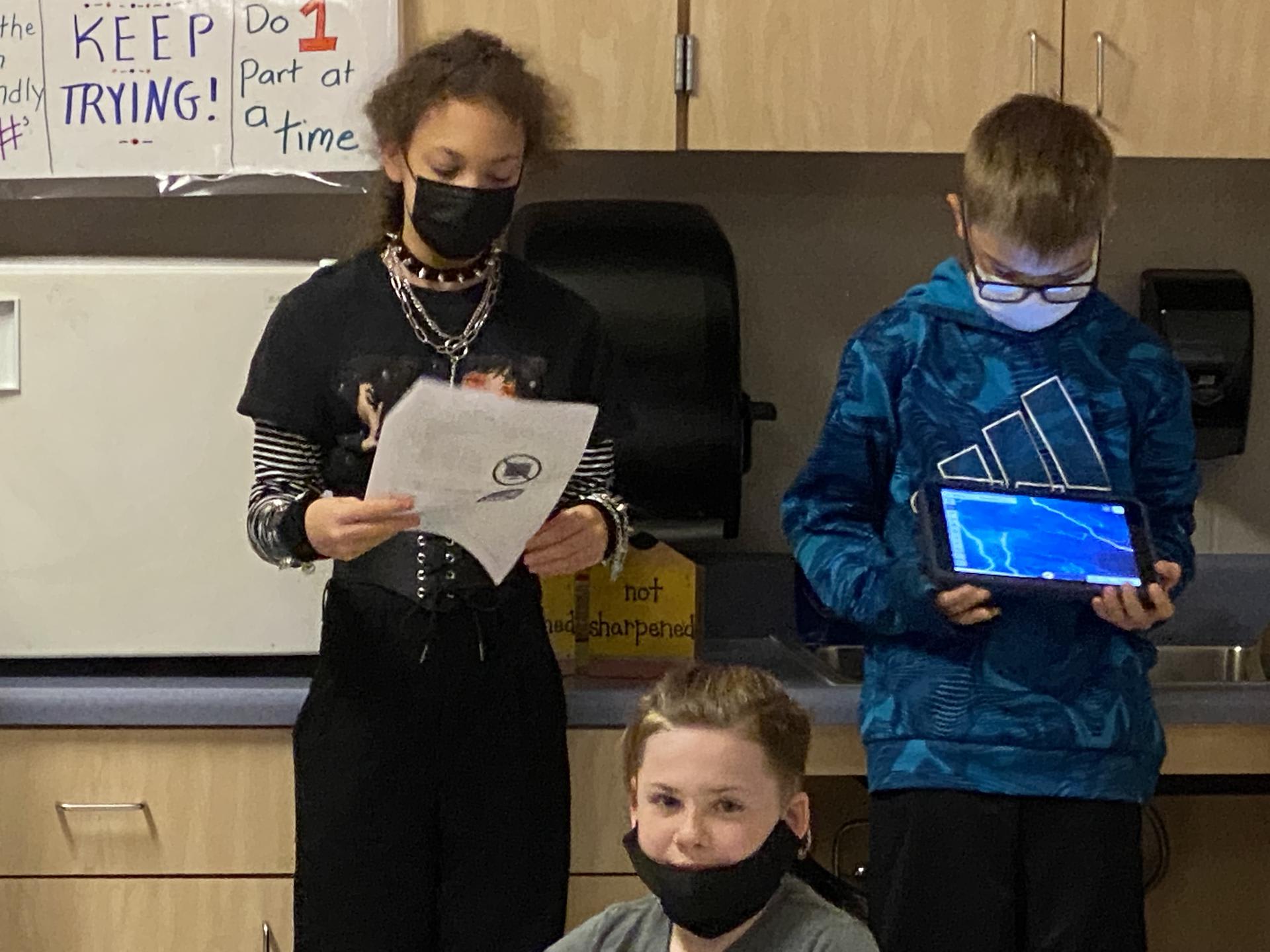Ms. Ingram’s SFA class is cautious as they present weather safety facts read and researched during our non fiction cycle.