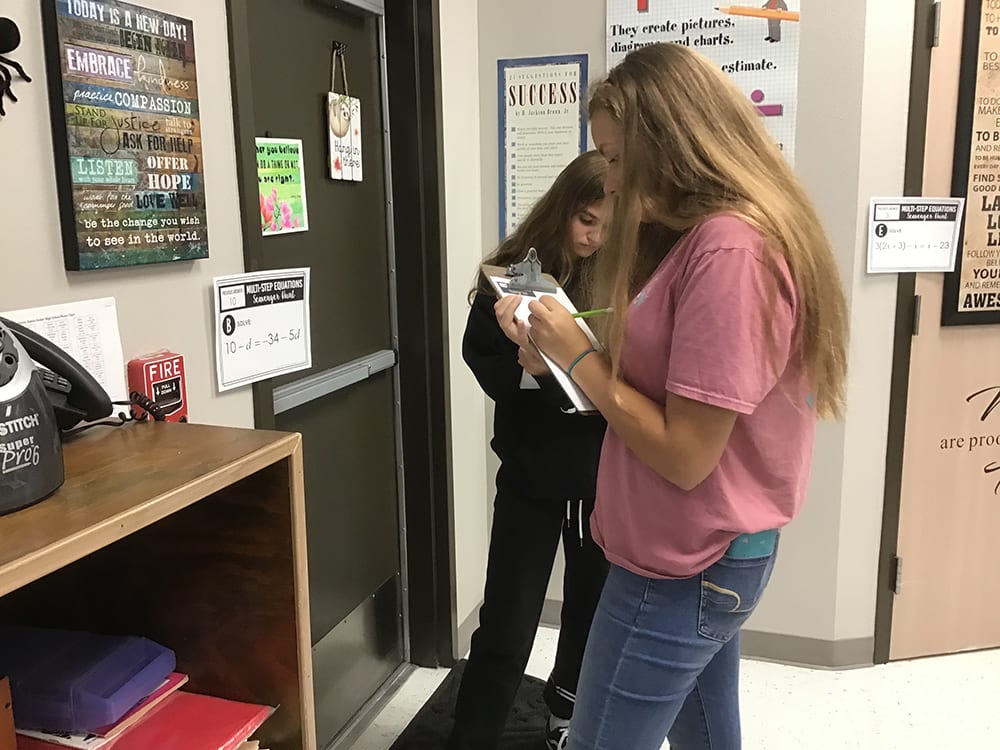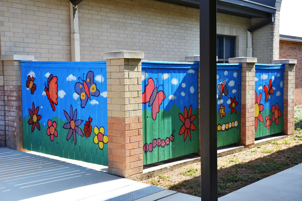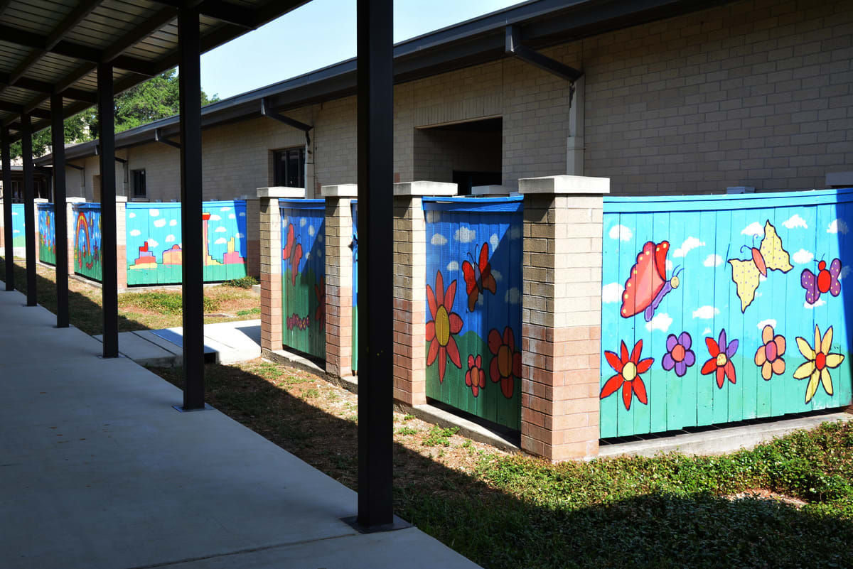 Freshman Algebra students go on a scavenger hunt to solve multi-step equations. Elementary Happenings Elementary Summer Art Camp students adorn the Lackland Elementary with outdoor murals that line the walkway leading to the cafeteria. They did an amazing job working as a team painting vibrant scenes of butterflies, flowers and other things. The heat was on so we made sure to stay hydrated and take plenty of breaks throughout the process. There is one section left to do. Stay tuned for what the Art Club has in store for us.