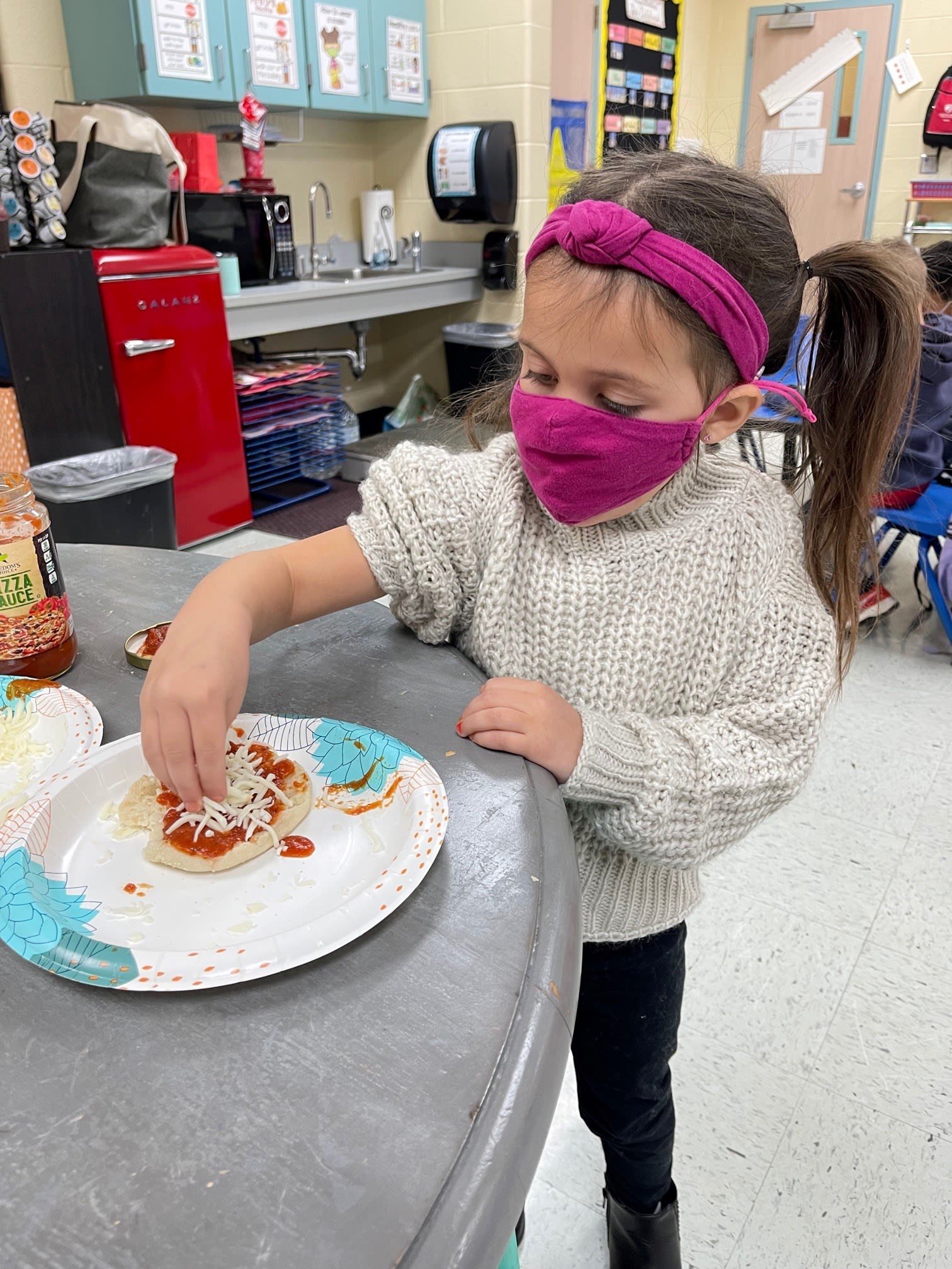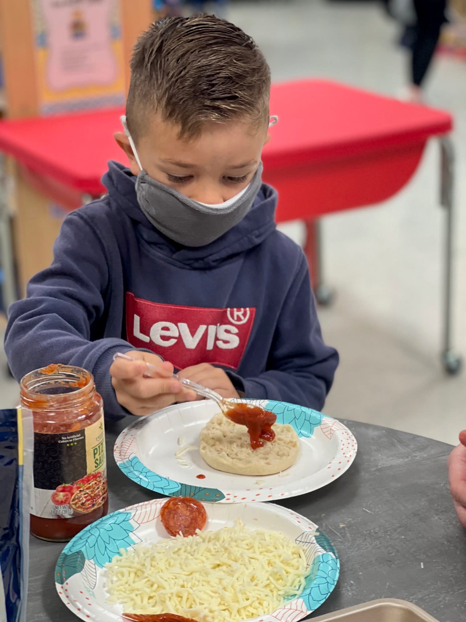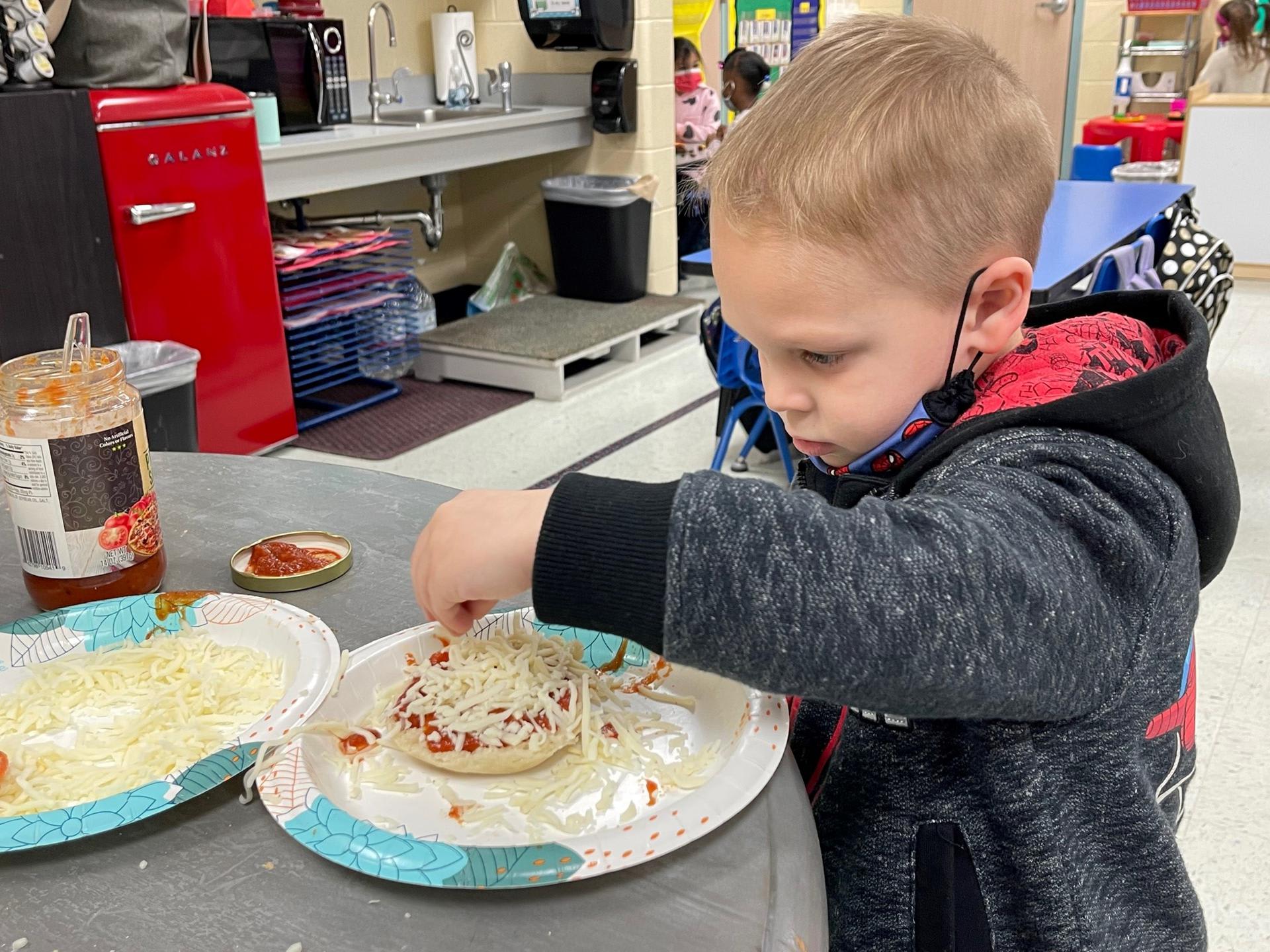 This week, Prek is learning about places kids go. Students in Mrs. Archibald Ormon’s class went on a virtual field trip to a pizza parlor and then made their own personal cheese or pepperoni pizza.
