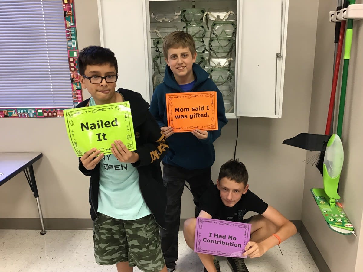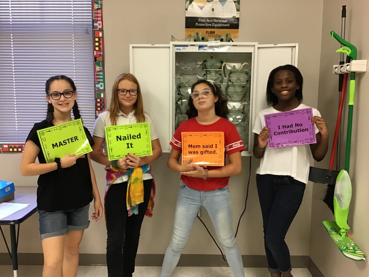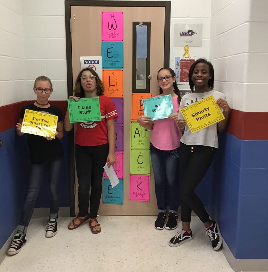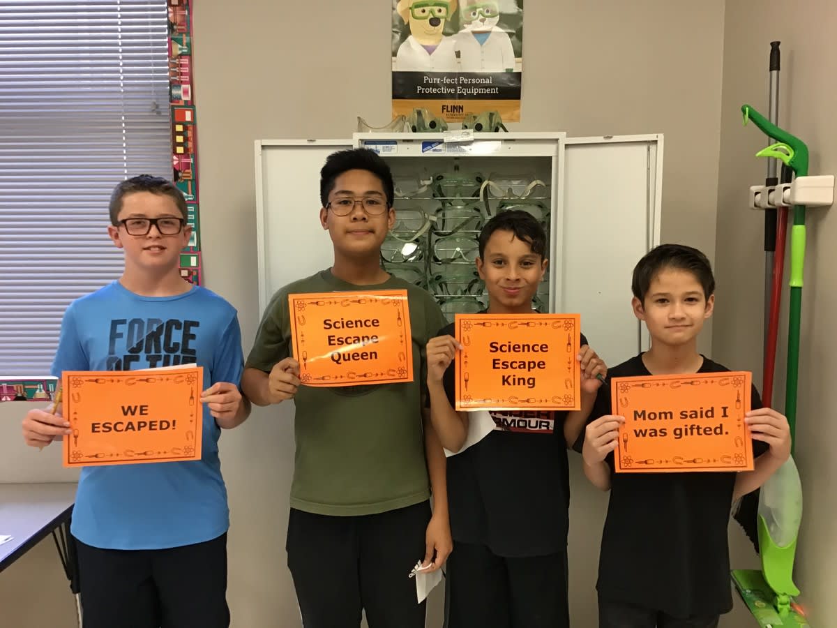 A fond farewell to two of our beloved janitors Margie and Jose. Staff from around the district gathered for an informal goodbye party. Hugs and yummy food were shared as friends said farewell. Stacey Happenings Sixth and seventh grade science classes participated in a Back to School and Lab Safety escape room this past week and I wanted to highlight the groups that successfully completed all challenges in 60 minutes. 7th grade left to right BriAnna Schoolcraft, Elizabeth Nissan, Ava Pope, and Shakiya Allen 7th grade left to right Ava Pope, Kylie Youkey, Elizabeth Nissan, and Shakiya Allen 7th grade left to right Miguel Romero, Donovan Welch, and Kelso Malard 7th grade Gavin Hahn, Christian Orencia, Mark Gillett, and Samuel Crisp