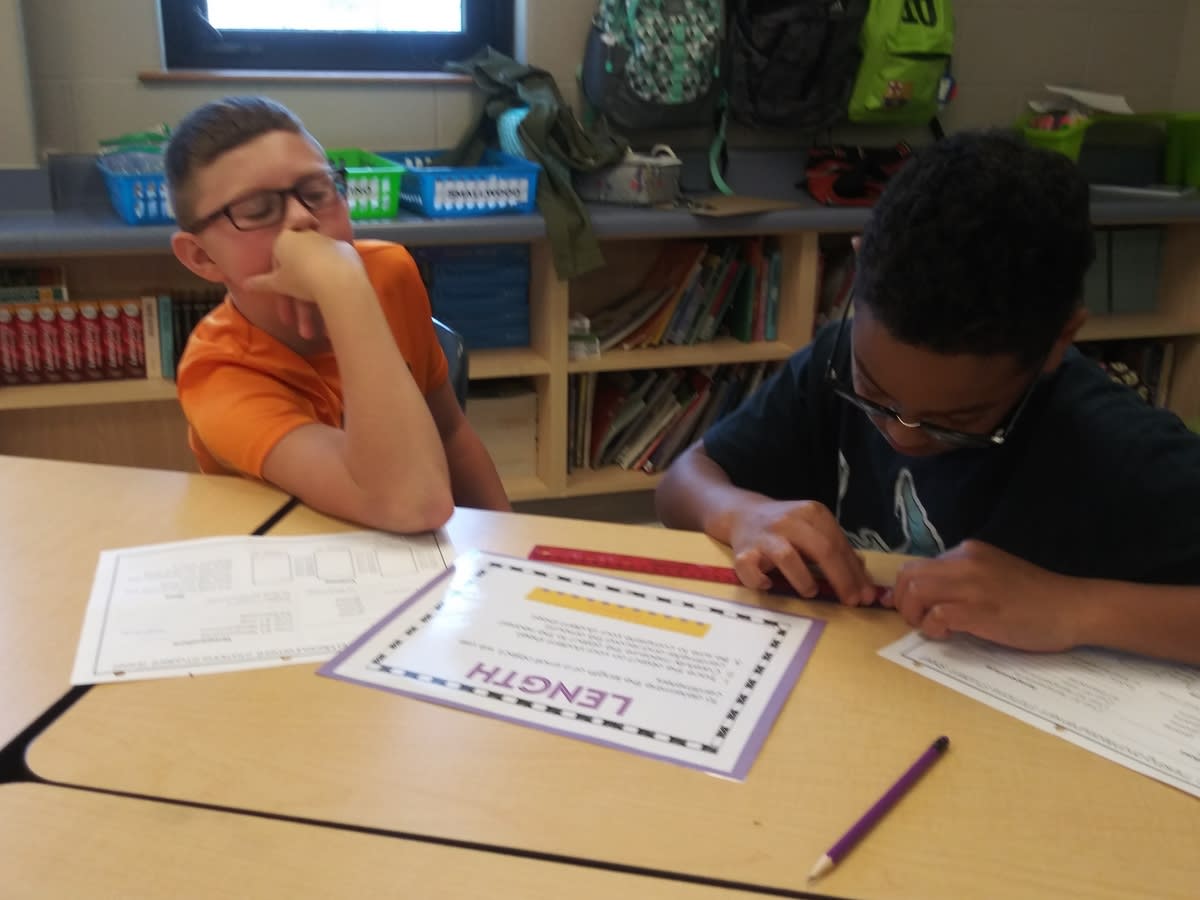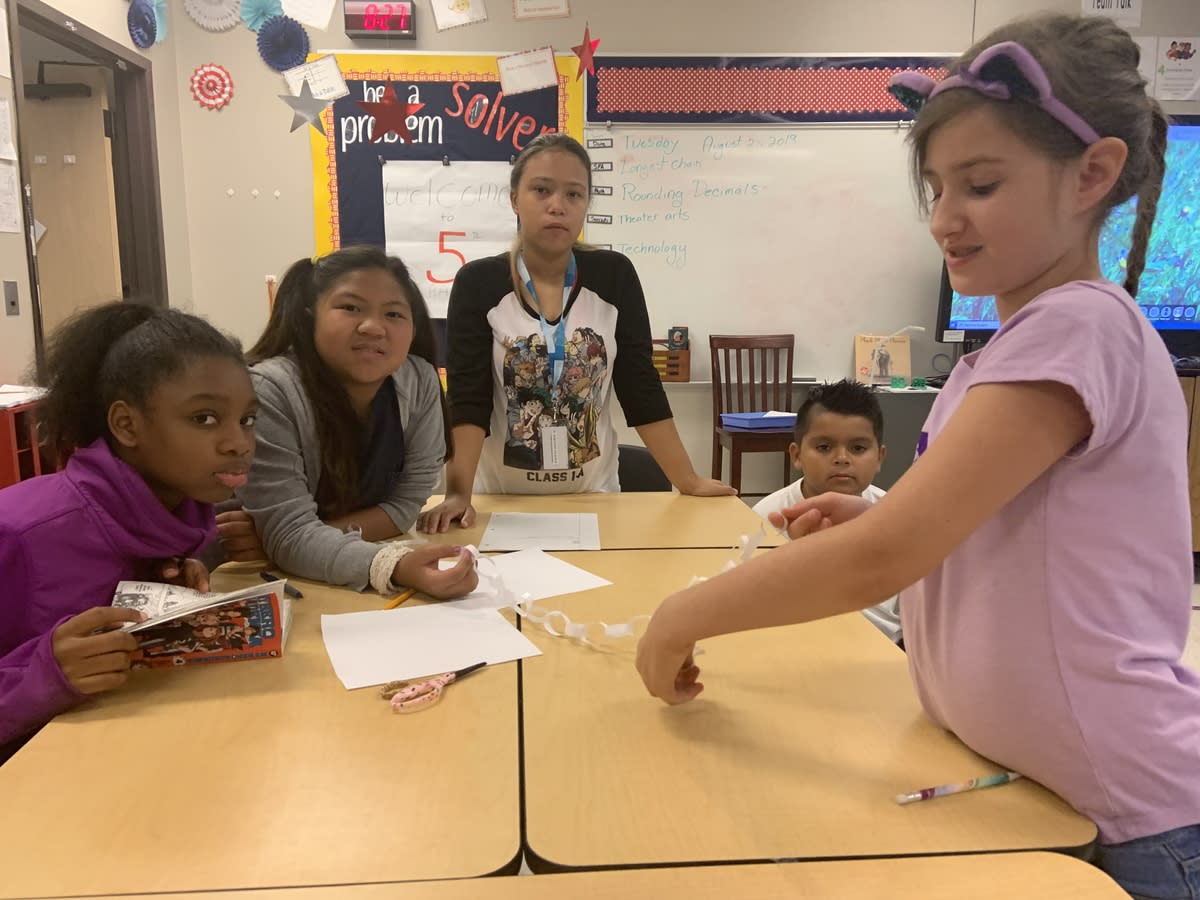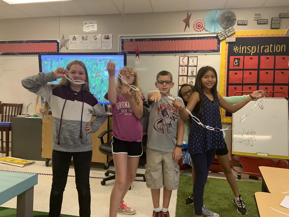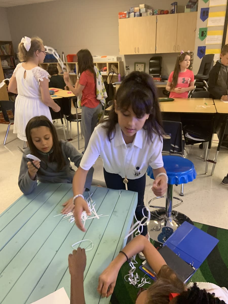 Fifth graders in Mrs. Ryan's class worked collaboratively to create the longest paper chain they could with two pieces of paper. They’ve been measured to the nearest 10th of an inch and added the measurements to see how long our class chains were. Communication and creativity was key in this activity.