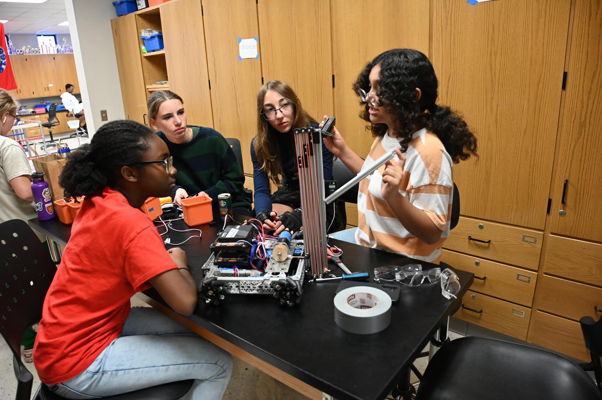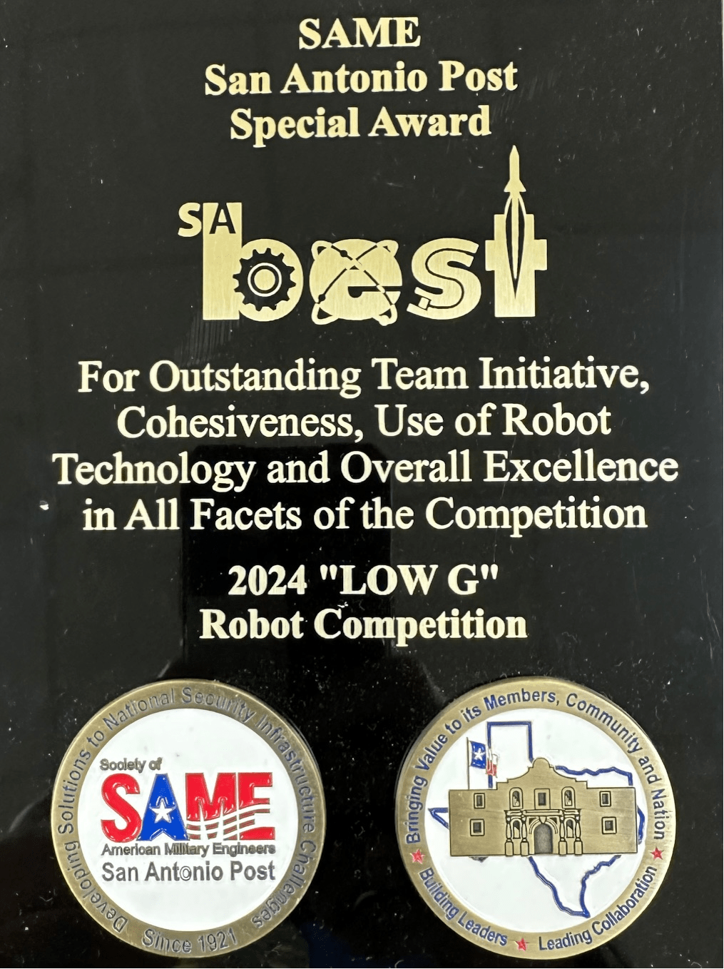 The "Bots in Blue" from Stacey High School have become synonymous with innovation and teamwork in the robotics arena. Under the guidance of coaches Mrs. Rebecca Huerta and Mr. Ken Kinsey, and Parent Mentor Richard Bramlett, this year's team, Olivia Albrecht, Cadence Bramlett, Harmony Bramlett, Christopher Clark, Joseph Coomber, Diego Flores, Eliana Flores, Le'anjre Jones, Isaiah Magana, Tristyn Myrick, Evan Stiverson, and Seth Yeager, demonstrated exceptional skill and creativity. Their path to the state championships was paved with a standout performance at the regionals, where they clinched the 1st place award from the Society of American Military Engineers (SAME) for "Outstanding Team Initiative, Cohesiveness, Use of Robot Technology and Overall Excellence in All Facets of the Competition." This accolade led to a unique opportunity for the team to demonstrate their cutting-edge robot to over 3,000 attendees at the 2024 Armed Forces Communications and Electronics Association (AFCEA) conference at La Cantera Resort and Spa on November 20th.