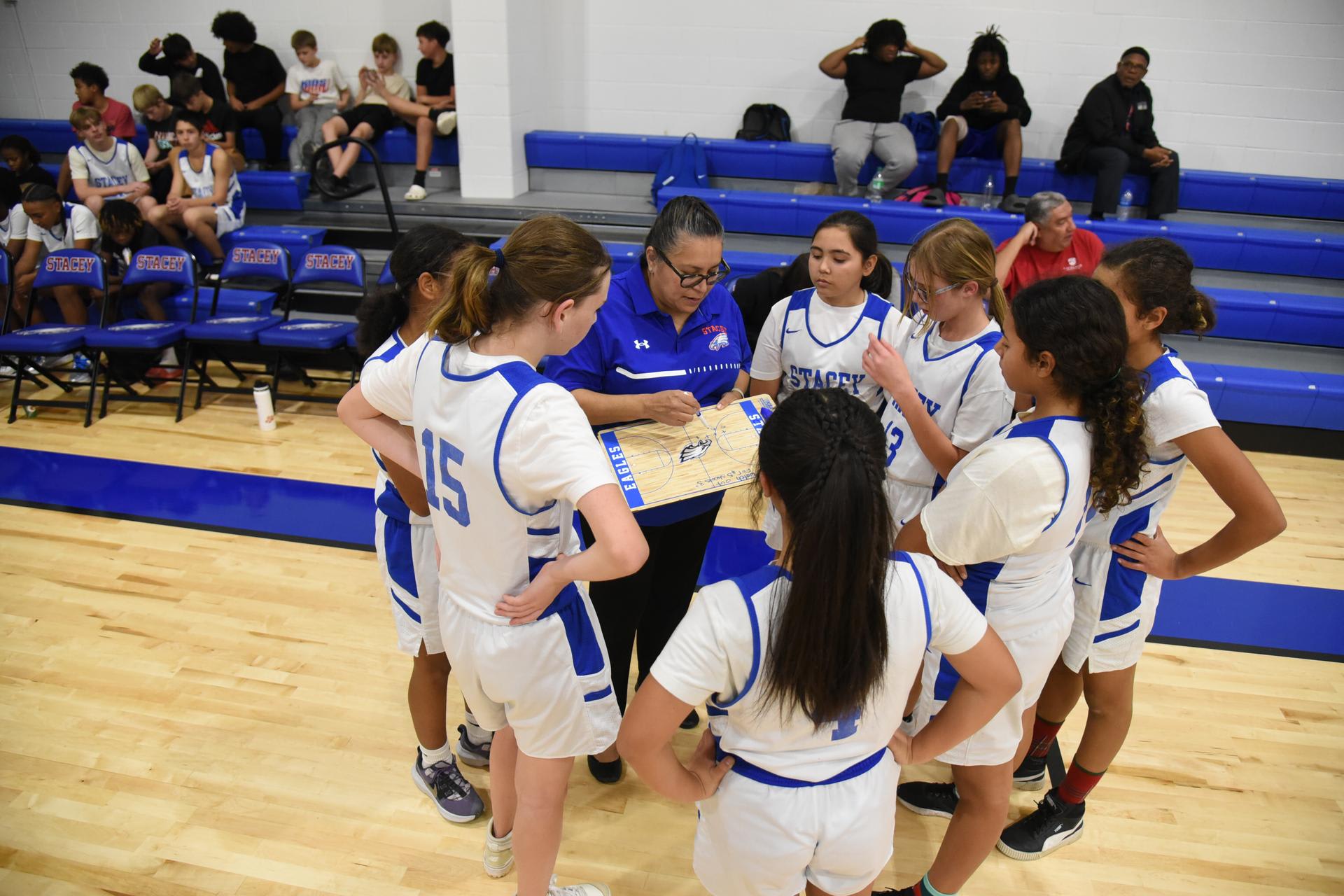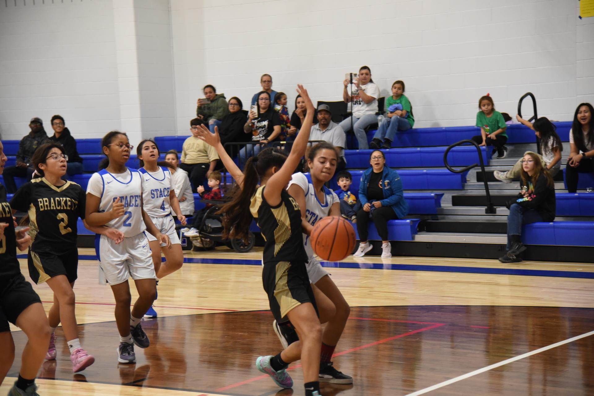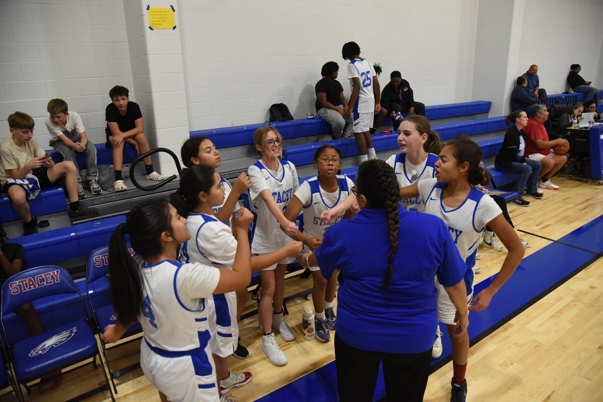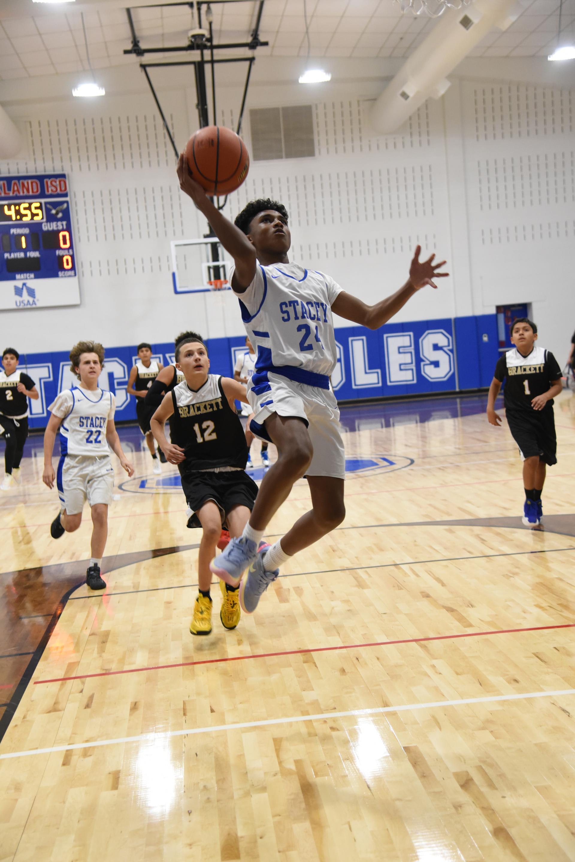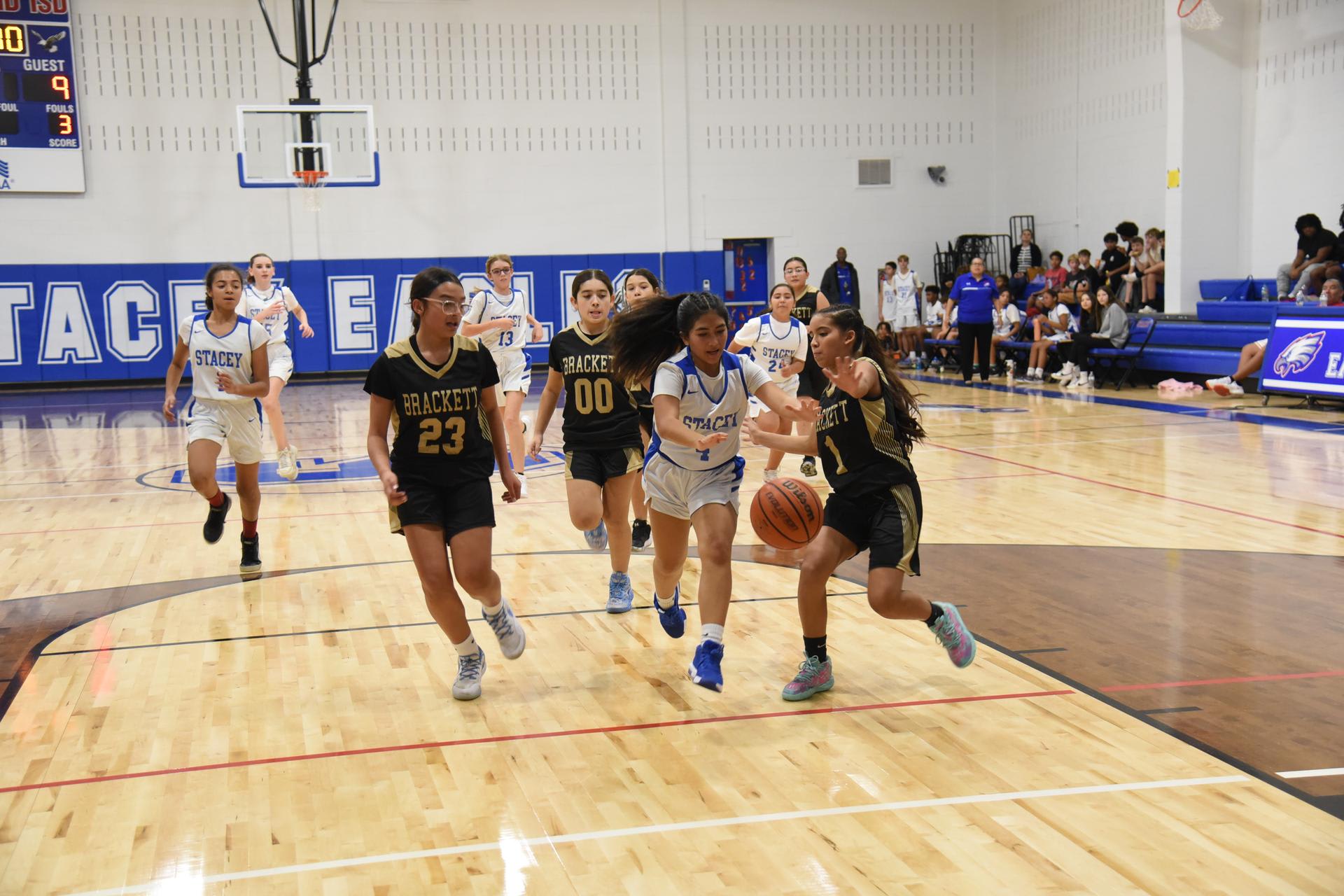 The Jr. High basketball teams took on the Brackett Tigers on Monday in the newly renovated Stacey gym. The 7th grade boys and 8th grade boys teams both won handily while the Lady Eagles lost a close hard fought game 17-16. |