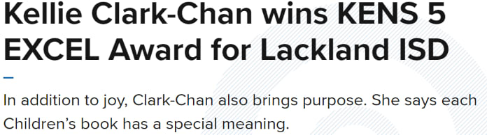 SAN ANTONIO — By day she’s a teacher and by night, she’s a student. “I’m in a reading specialist program through UTSA,” Kellie Clark-Chan said as she explained how she spends most of her day, “I just keep on going. It’s like a motor.” Clark-Chan says she has one goal. “My goal is to work with students who struggle with reading either because they have some kind of reading disability in some way.” |