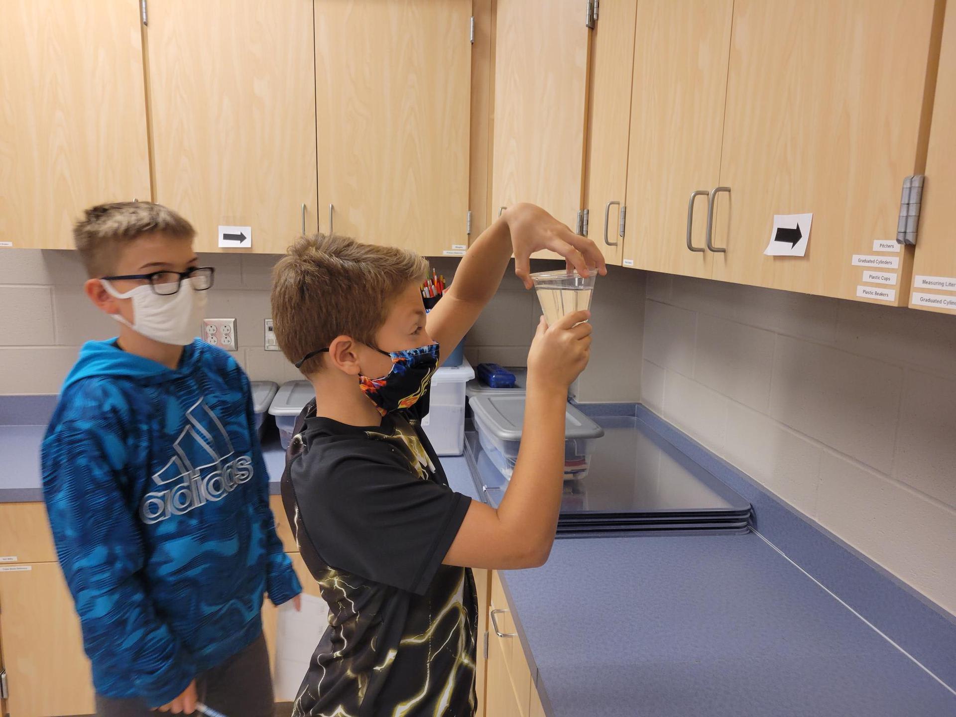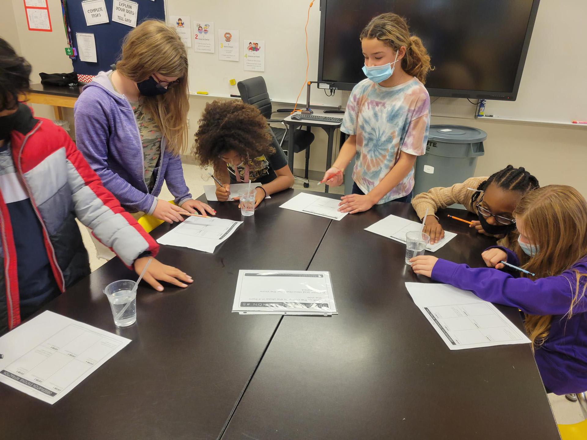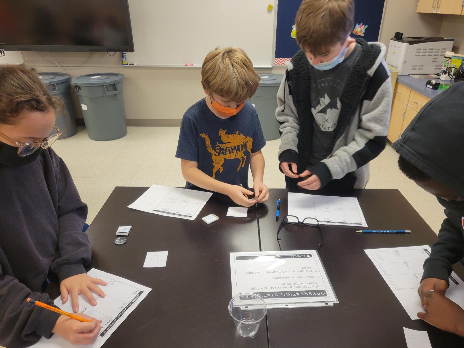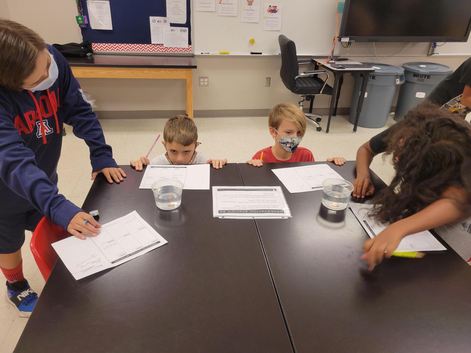 5th graders in Mrs. Crawford’s and Mrs. Martino’s class experiencing refraction through observation stations. They observed many ways light can be refracted. |