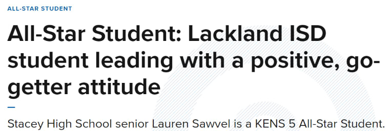 SAN ANTONIO — A Lackland ISD student is leading by example and showing her classmates what it takes to be a standout on the path to success.