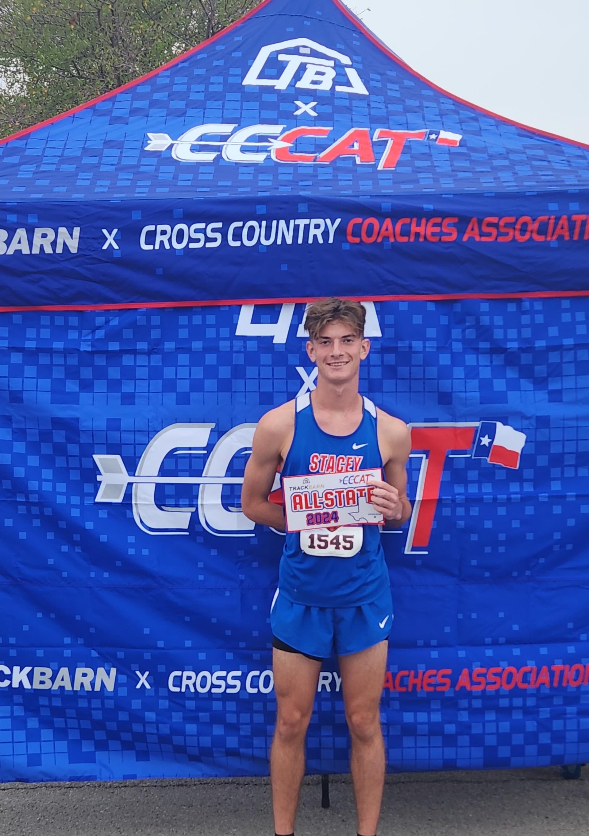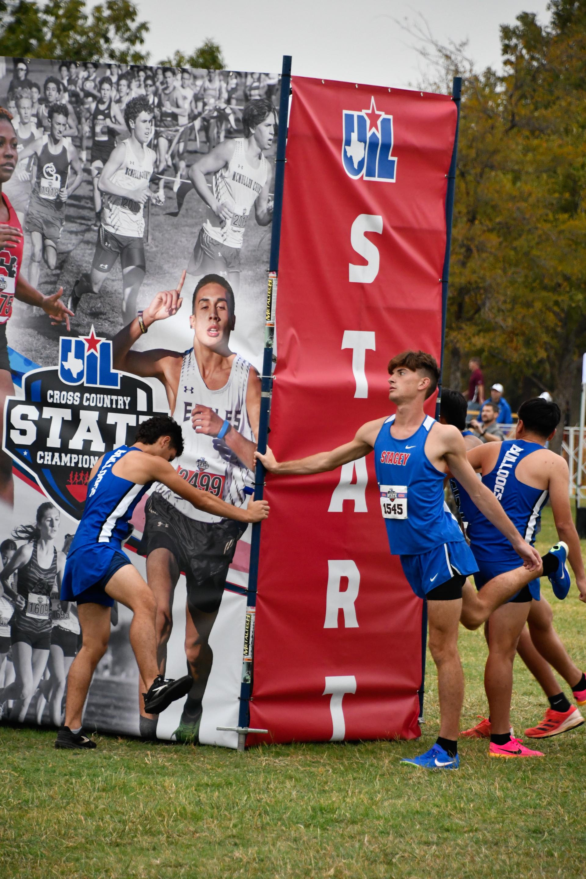 On November 1st, the Stacey Eagles Boys’ Cross Country competed in the UIL State 2A Cross Country at Old Settlers Park in Round Rock. The boys started work during the summer to achieve this goal. They became the second Boys’ team and third team overall to make it to State in school history. Before the race, the boys got an opportunity to meet and take a picture with the real Thomas Valles from the movie McFarland, USA. Zach Born led the boys with time of 17:22, for a 24th place finish and earn CCCAT All-State. For Zach, this was his third trip to the State meet and 2nd All-State selection. For Jarred Dunn, Roel Garcia, Caden Kelstrom, Lazaro Barajas, Cameron Westerlund, and Eduardo Barajas, it was their first experience and together, as a team, they placed 14th overall. Congratulations on such a successful season, guys!!!!