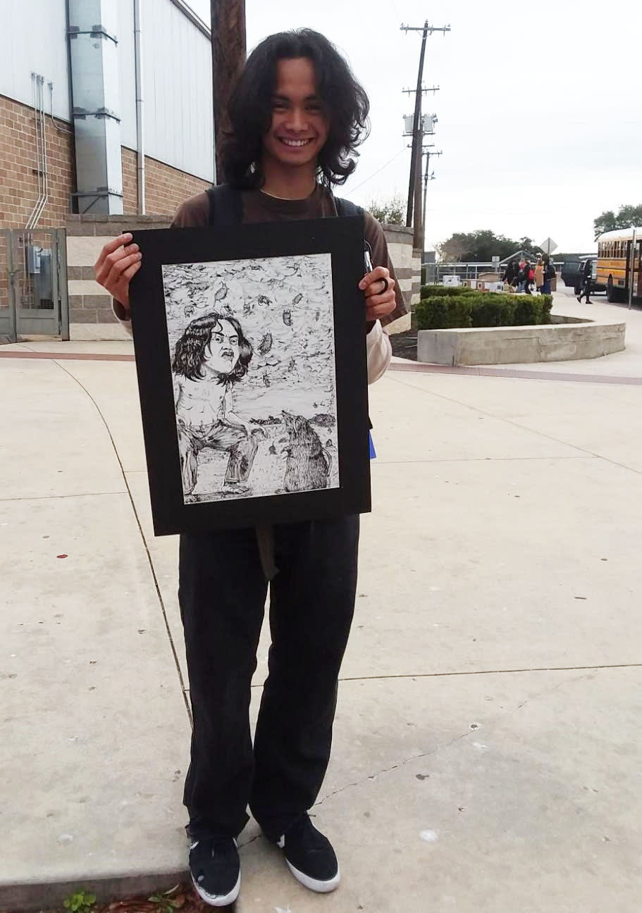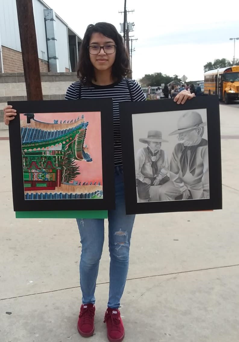 Stacey Art Nine Stacey High School students: Emma Mc Ferrin, Sophie Davis, Neil Miguel, Naomi Sater, Victoria Concepcion, Symphony Nieves, Hayley-Jane Sablan, Serenity Privitt and Rachelle Martinex-Cruz all competed in VASE (Visual Arts Scholastic Event) on February 15th, each of them earned a Superior rating on their art work and were awarded a Regional medal. There were over 1200 artworks presented at this event, of which 93 were selected and awarded Area medals and these artists and their artwork will be entered in the State Event which will be held in San Marcos on April 25th. We are thrilled to announce that 3 Stacey students will be a part of that illustrious group. Victoria Concepcion: Heart and Seoul, Neil Miguel; Street Fight, and Serenity Privitt: Mellified. Please join in recognizing these students and their great accomplishments.