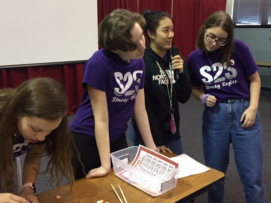 Last Thursday, S2S hosted a Valentine’s Day themed lunch bunch for new high school students and an after school social for new junior high students. To kick off the events, a question ball was tossed around and when caught, the students would say their name and answer the question their right thumb touched. After everyone got to know each other, they started to play Valentine Minute to Win It games such as word scrambles and moving conversational hearts with chop sticks. After games, S2S served sherbet punch and cupcakes the guests decorated. Lunch Bunches and after school socials help new students make new friends and get comfortable in their new school.
