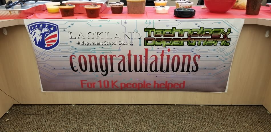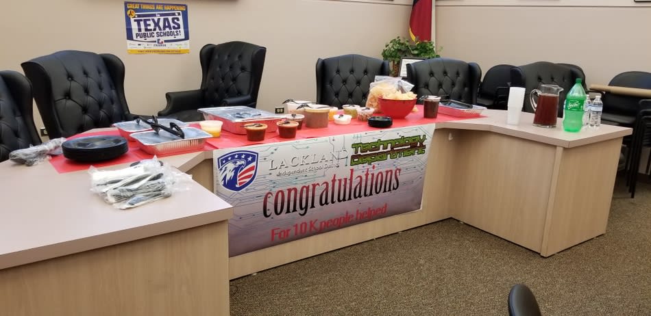 Throughout the workshop the participants were provided with opportunities to share leadership challenges and to learn practical steps to face the challenges with confidence. The workshop was facilitated by a Certified Bud to Boss Trainer (and Chief Financial Officer for Lackland ISD), Rebecca Estrada. Around the District Today, the Technology Department celebrated reaching our 10,000th incident in our online support system. The system went live on August 18, 2016, so we reached that number in about three and a half years. That 10,000th incident therefore represents a significant milestone for our department, and it shows the immense amount of work that the department has accomplished for the people in our district who have come to rely upon them for superior technical support.