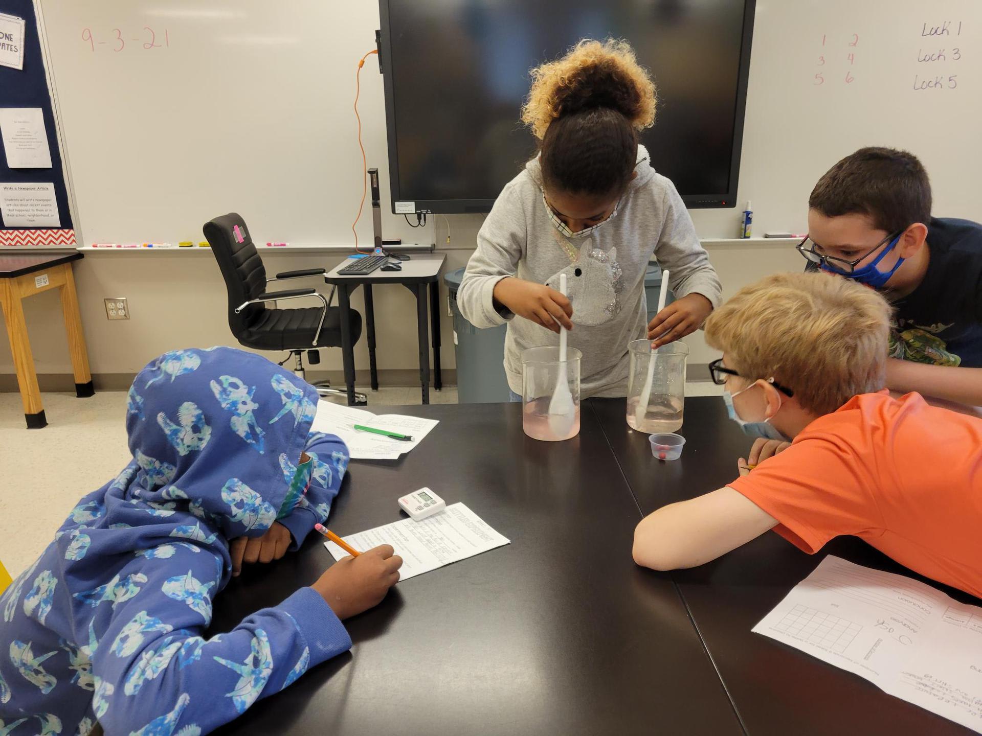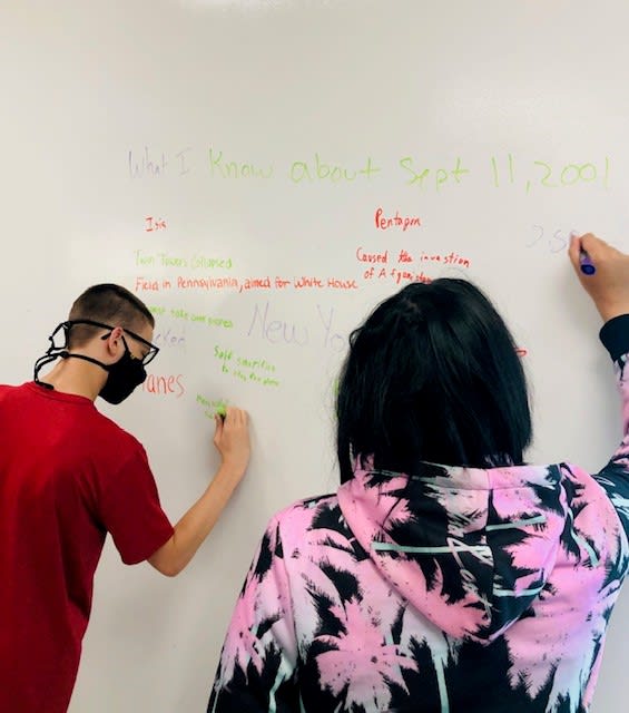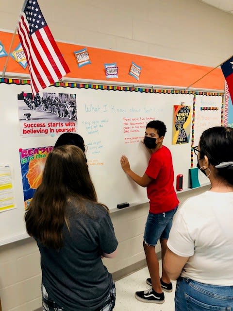 10th graders in Mrs. Baltazar's class are spending two days reading poetry on 9/11 in order to examine how poetry helped our nation process the traumatic events of that day. I asked them to write down on our white board what they know about that day. Elementary Happenings Mrs. Crawford’s classes conducted a Skittles Lab experiment to test whether Skittles dissolved quicker in warm or cool water. They used every step of the Scientific Process to conduct the experiment and analyze results.