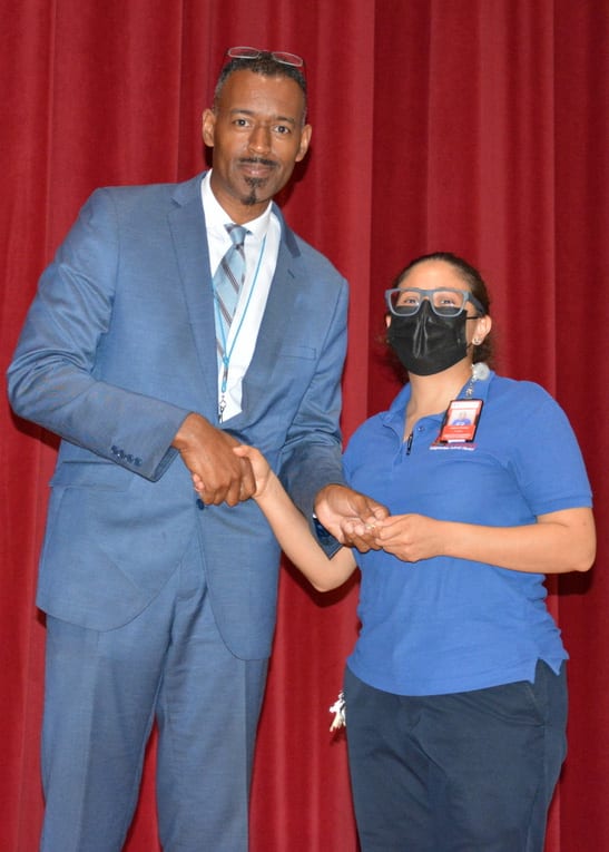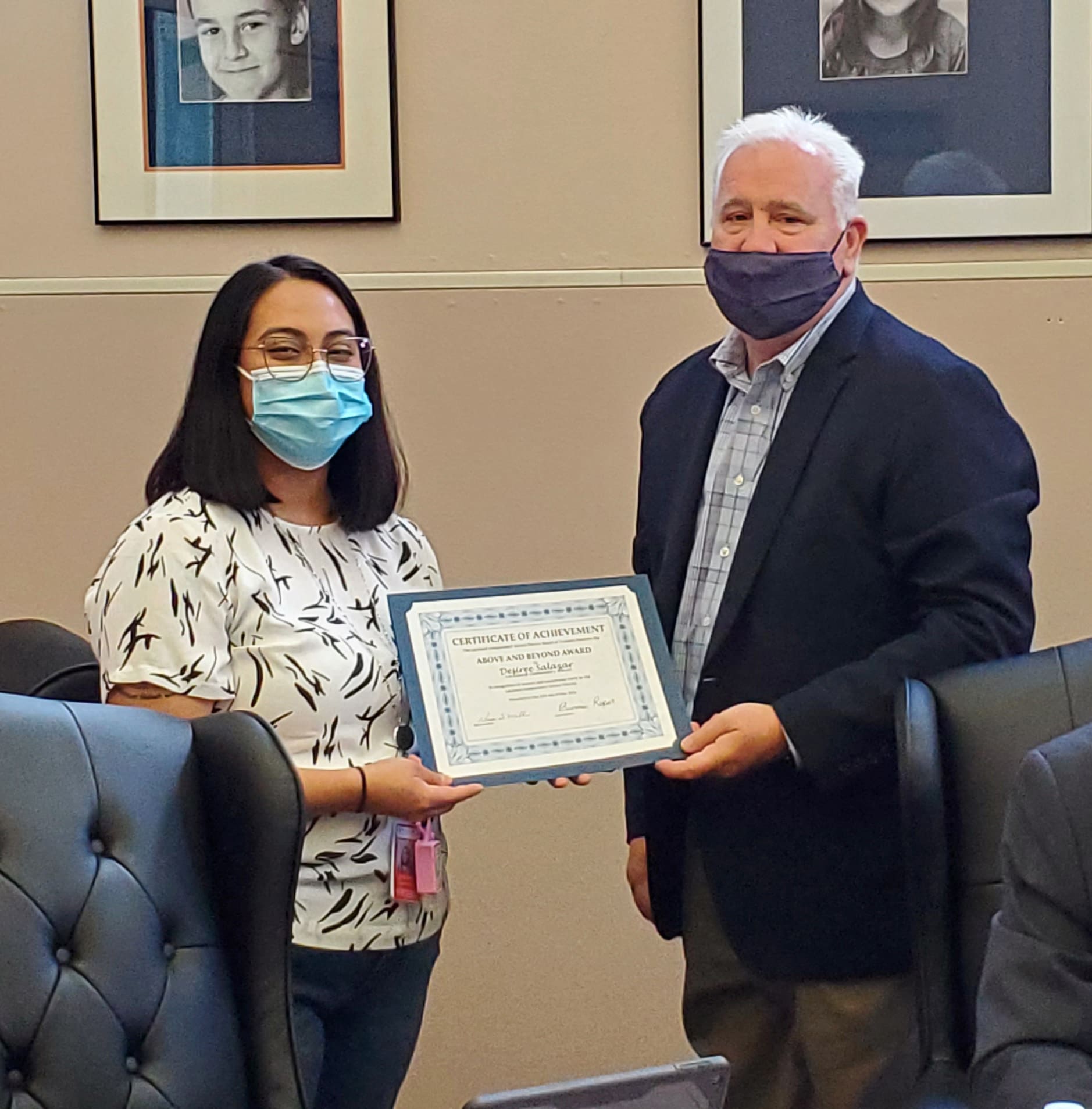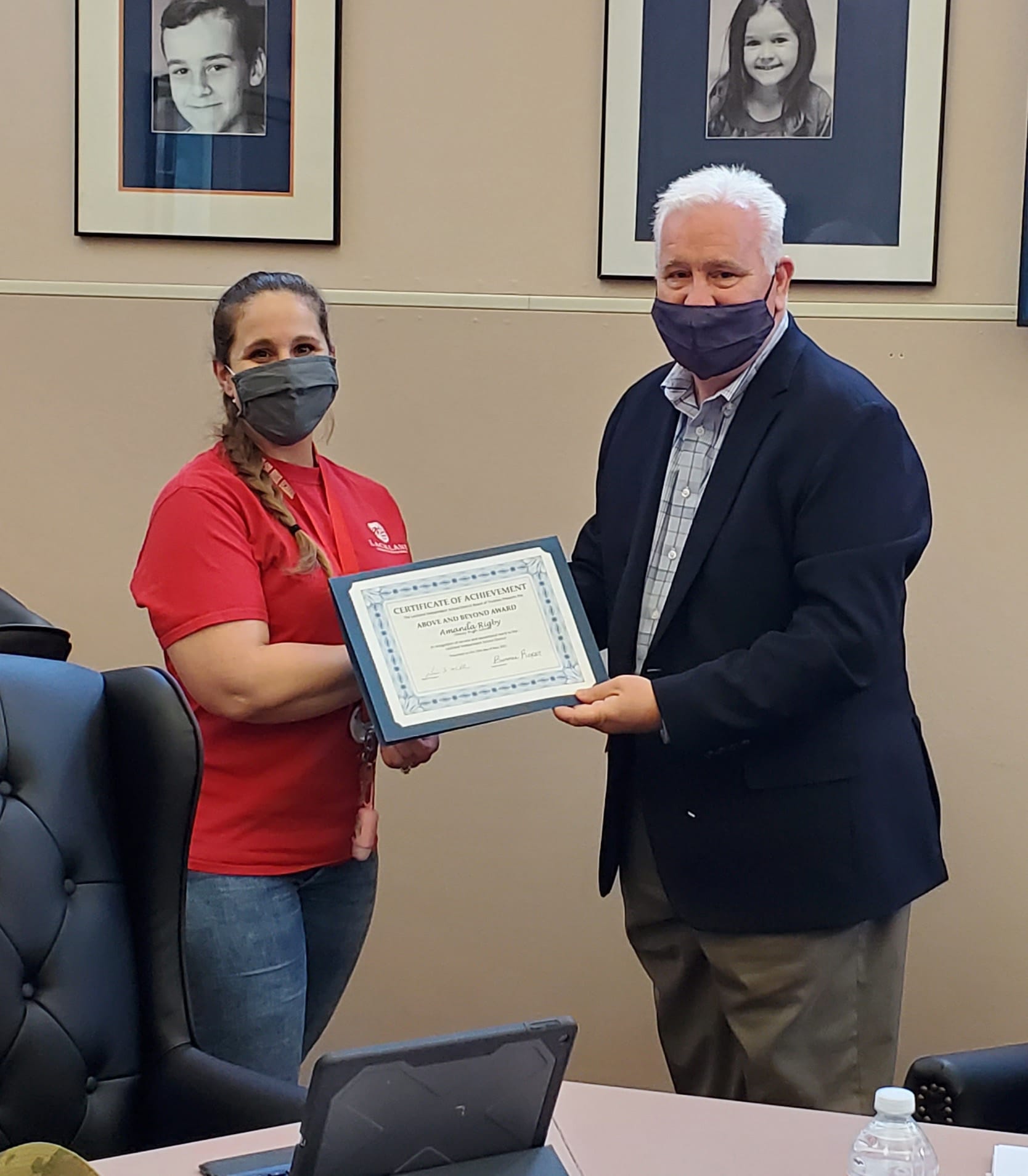 The Above & Beyond recommended winners for Spring 2021 recognition are: Auxiliary – Justine Morales serves the district as High School Lead Custodian. Justine provides outstanding custodial support ensuring our classrooms, common areas, and administrative spaces are clean and well maintained. During the school day, Justine is always ready to respond to urgent needs and help other departments. Her willingness to help Child Nutrition during the staffing shortages they faced this year as a result of the pandemic was instrumental in food service being able to continue to provide uninterrupted meal service for our students. In addition to her regular duties, Justine also assumed the responsibility of ordering and tracking the district’s COVID-19 supplies ensuring that the district had a ready supply of cleaning and disinfecting supplies. We are proud to recognize Justine Morales as one of our Spring 2021 Above & Beyond award winners. Para-Professional – Desiree Salazar serves as a 3rd grade Teaching Assistant at Lackland Elementary. Mrs. Salazar uses strategies and helps develop behavioral interventions for the students that she is working with even though she does not have the responsibility to do so. She knows that without a plan in place for her students they cannot fully succeed. She has an impressive ability to implement useful strategies for all of the students that she works with in the classroom, so that they can learn better ways to manage emotions and work together as a peer group. Mrs. Salazar’s daily efforts helps ensure that our students have a positive and productive school day. We are proud to recognize Desiree Salazar as one of our Spring 2021 Above & Beyond award winners. Professional – Amanda Rigby serves as a Science Teacher at Stacey Junior High School. Mrs. Rigby is constantly going above and beyond with her students and her fellow teachers. She has students stay after school to help them in areas they are struggling with. She delivers lab supplies to student’s homes that are unable to attend in person. She finds ways to make learning equitable for virtual and in-person students. Mrs. Rigby is not only a great teacher for her students she is also a great mentor for new teachers to the district and her other peers. She consistently reaches out to her fellow teachers via email and in person and provides extra support when needed. We are proud to recognize Mrs. Amanda Rigby as one of our Spring 2021 Above & Beyond award winners. Professional – Camille Morales serves as one of the district’s School Nurses. This year she also took on the responsibilities of the district COVID-19 nurse and was essential in developing effective health and safety protocols during this health crisis. Nurse Morales has truly gone above and beyond during the COVID-19 pandemic. According to her co-workers, “she quickly answers phone calls, emails, and messages. It does not matter the time; she makes sure that staff get the help they need and addresses any concerns they may have. Her dedicated daily efforts have been instrumental in the district’s success in responding to the challenges created by this terrible pandemic. We are proud to recognize Camille Morales as one of our Spring 2021 Above & Beyond award winners.