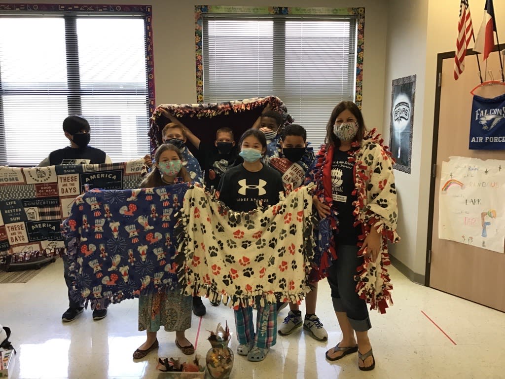 Teen Leadership classes made dog blankets and cat toys for the Helotes Humane Society.