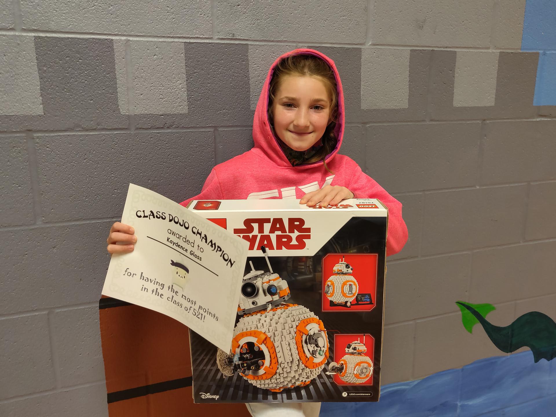 Today in Mrs. Alvarez's class we celebrated 3,053 Positive DoJo Points Earned this year with a Pizza Party! The students ate pizza and played games in celebration of earning such an amazing amount of positive citizenship points in Mrs. Alvarez’ Math Class. I am so proud of my students for their good citizenship! First, they earned an Ice Cream Party for their good behavior with 2,000 points in January! Then, a never done before feat- students managed to earn their goal 3000 points and then some! Student Success Center Math would like to recognize two students for reaching the ClassDojo Masters level! Kaydence Glass the top student overall earning a whopping 521 positive character points and winner the BB8 Lego Set with 1106 pieces! Jeremiah Moore the top boy student for earning 478 positive character points and winning the complete Diary of a Wimpy Kid Book Set. Proving Hard Work and Good Character Pays!