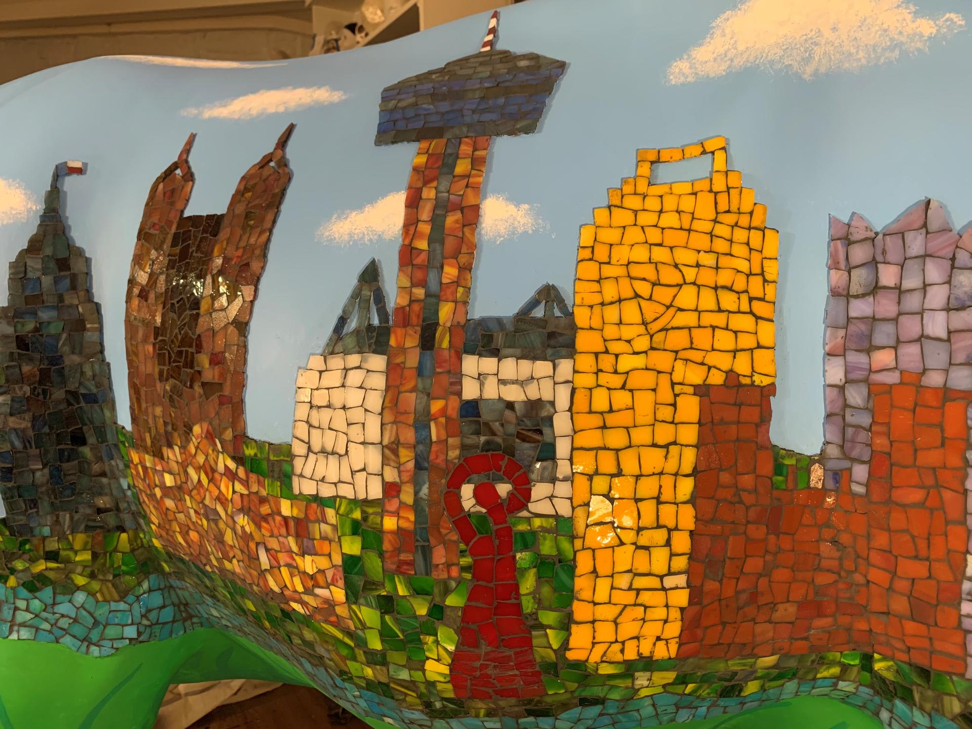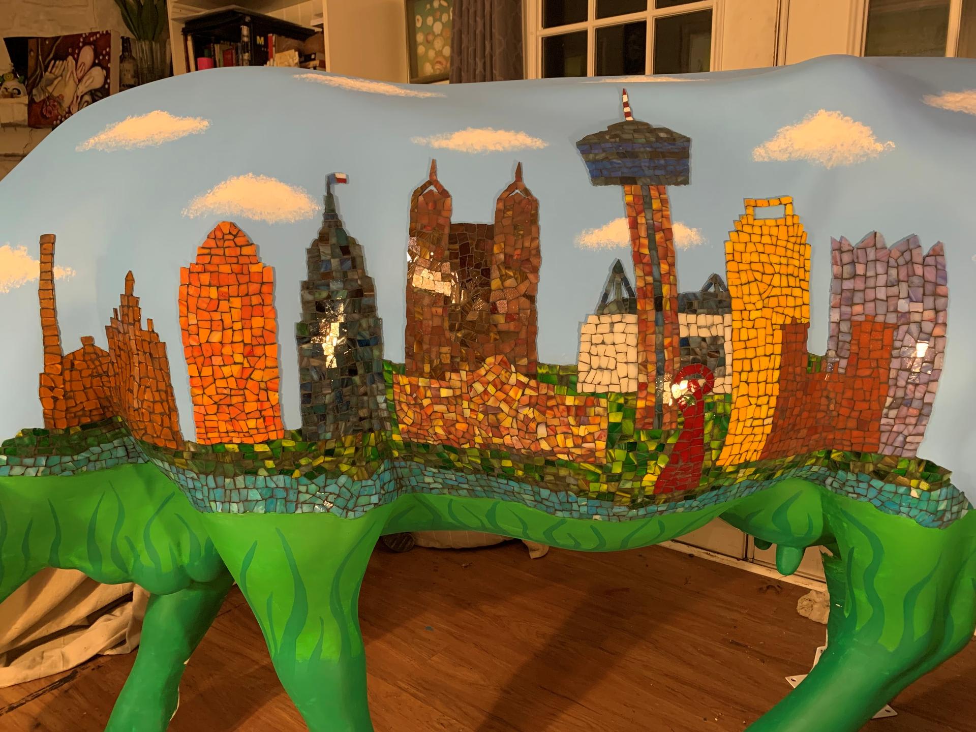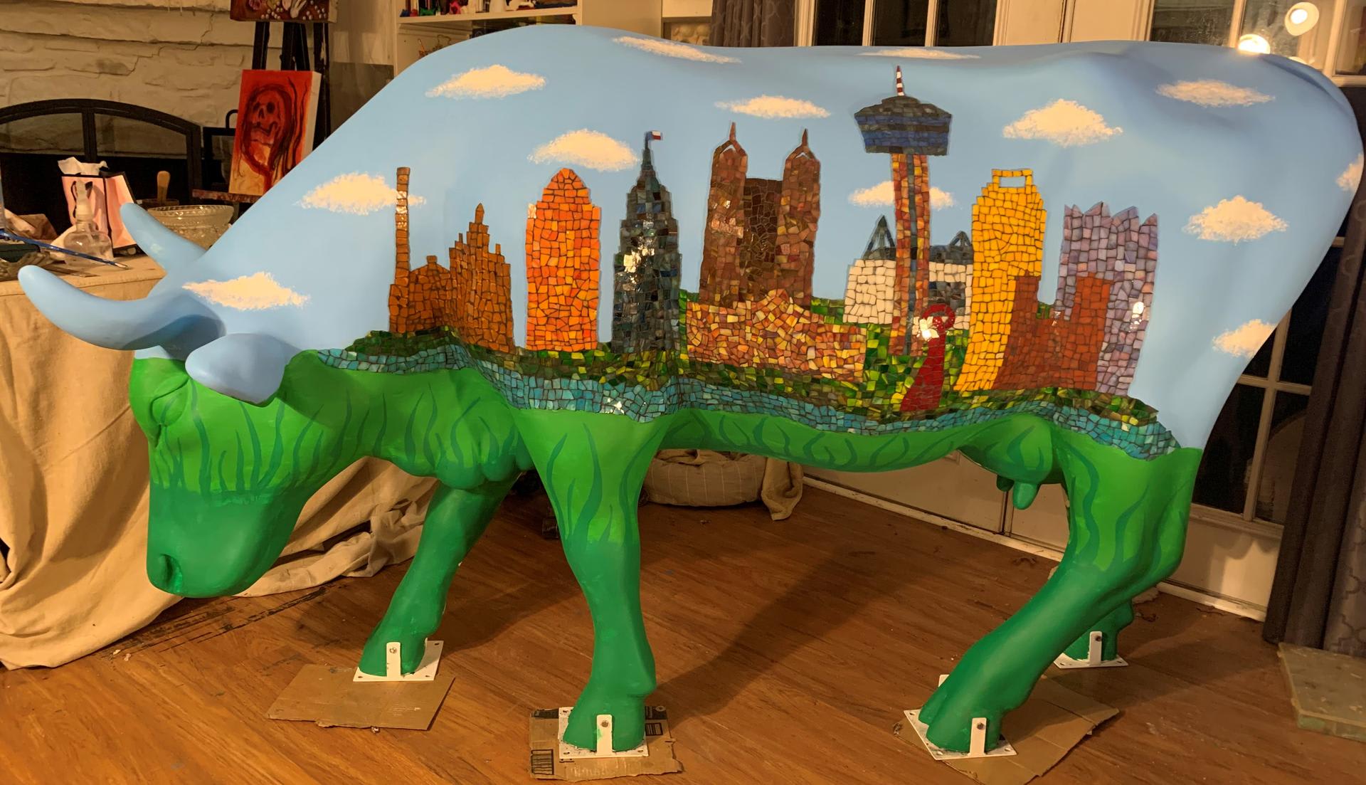 Progress on elementary art teacher Mr. Garcia's lifesize cow he is designing for the 2025 San Antonio Cow Parade benefitting Christus San Antonio Childrens Hospital.
