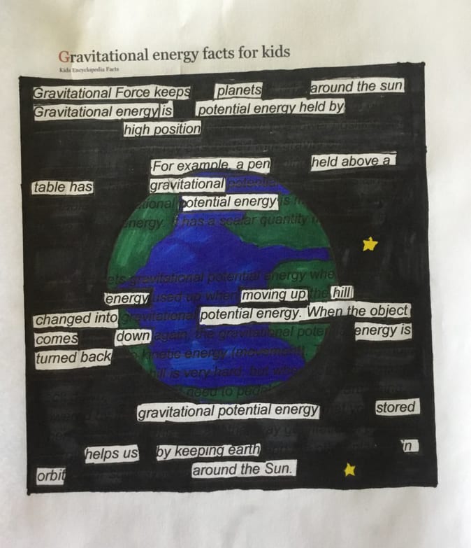 6th graders in Mrs. Rigby's class had an assignment to create a blackout poem about a form of energy.
