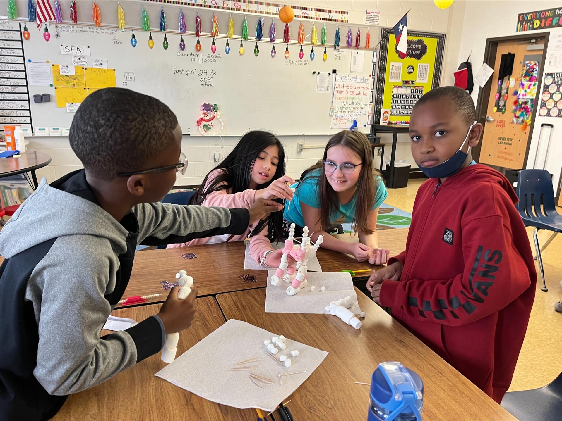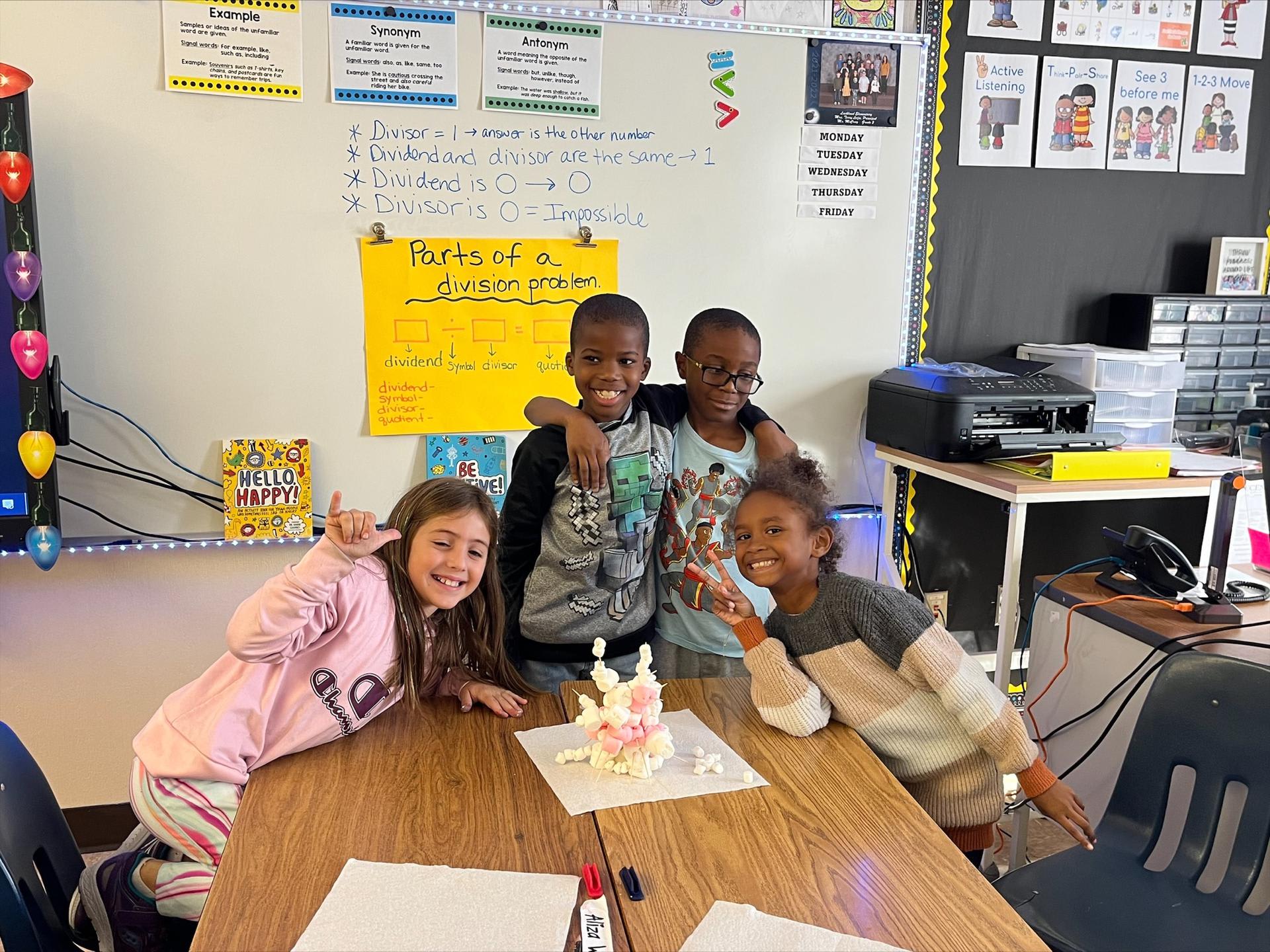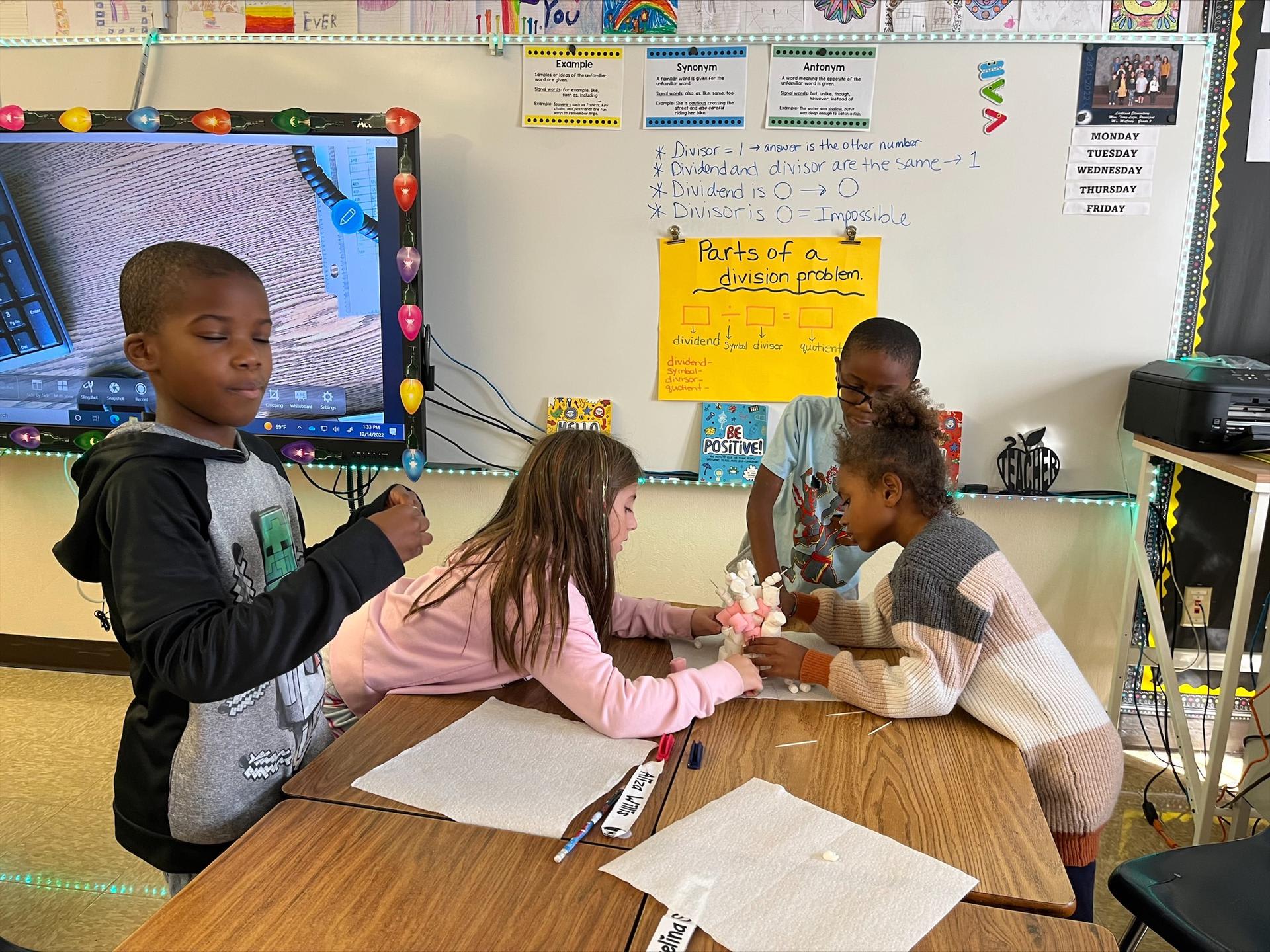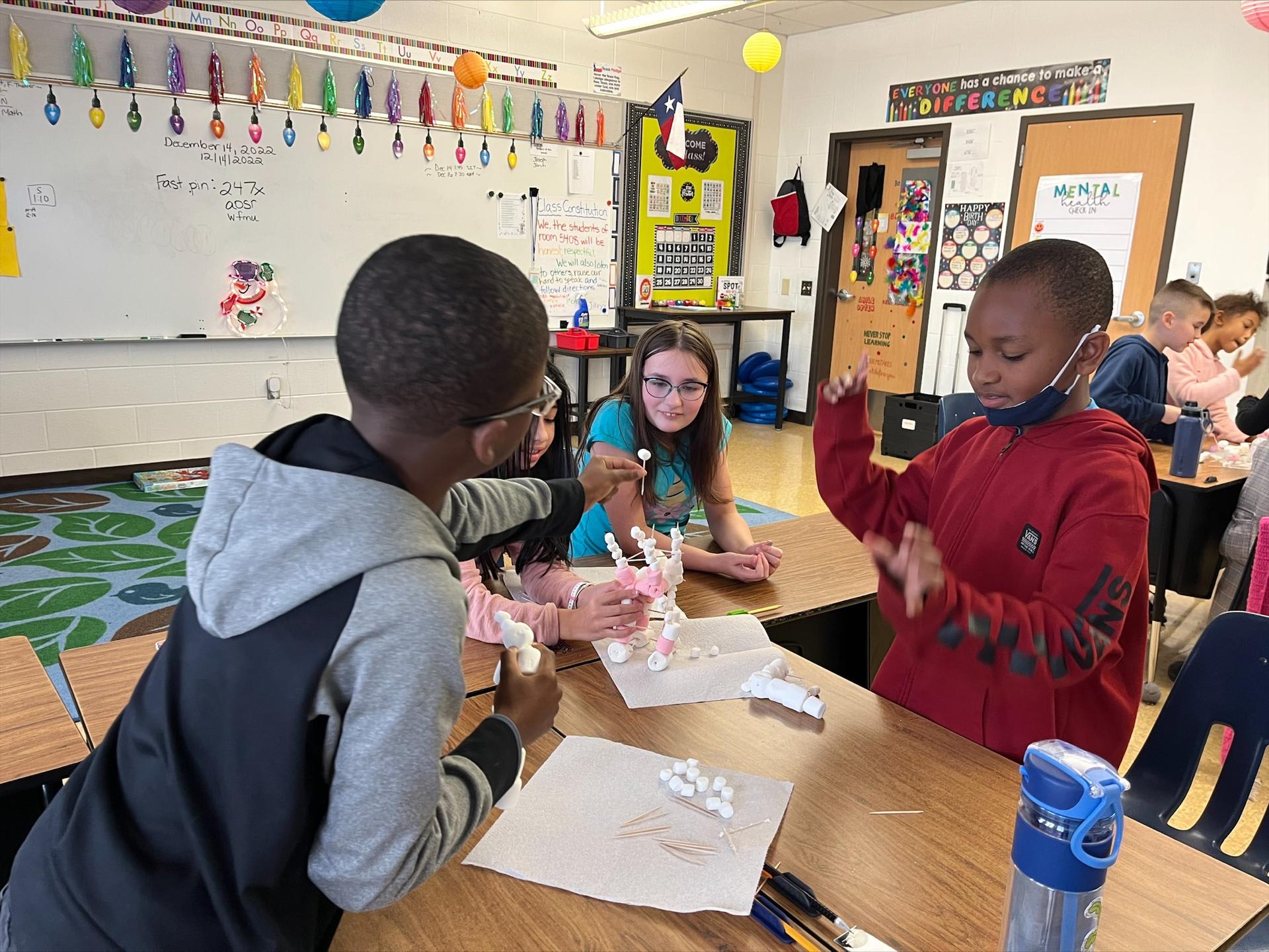 Using marshmallows and toothpicks, students are expected to create the tallest standing snowman! Team work is KEY! |