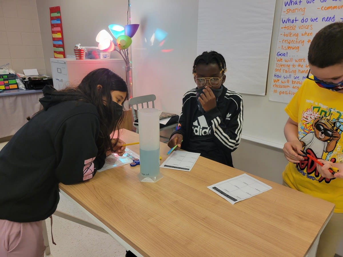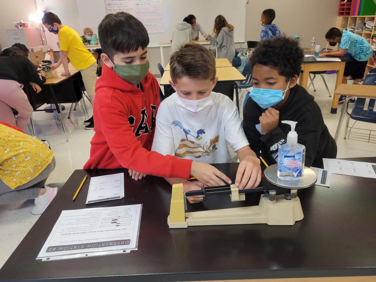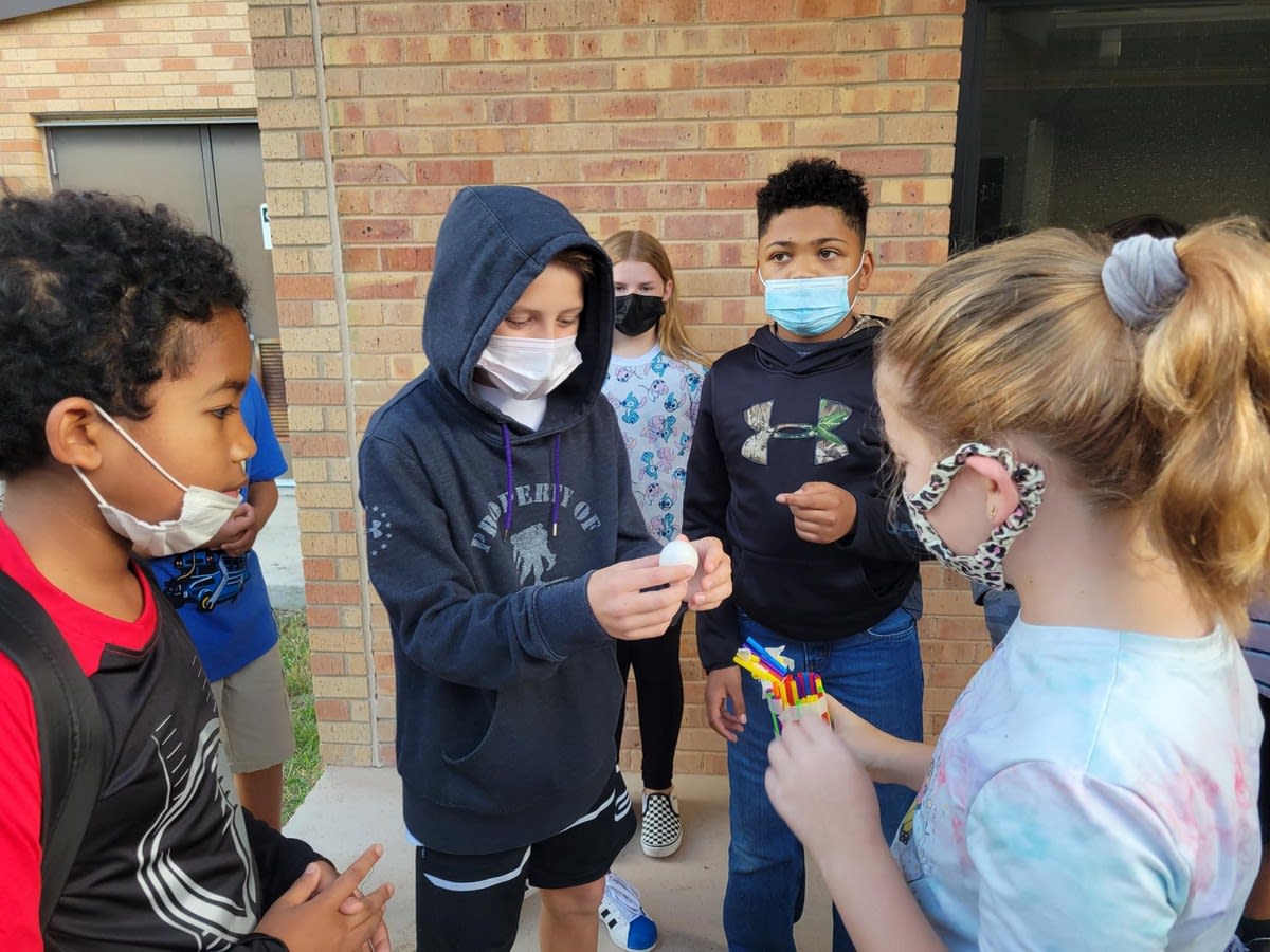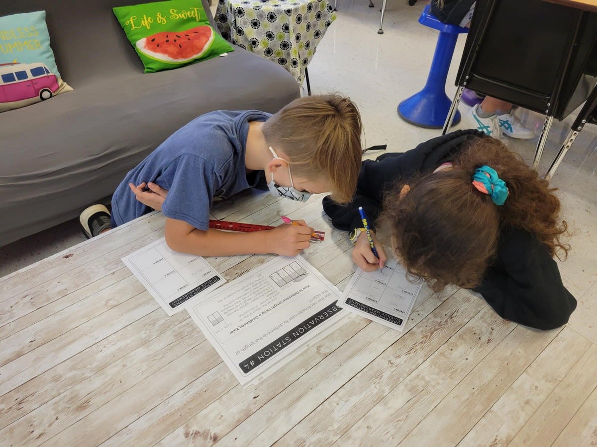 Mrs. Crawford’s class used their engineering skills and built contraptions to protect their egg from a fall. Every design was successful when dropped on the grass, and one design was successful on concrete! Mrs. Crawford’s science class practiced using science tools by reading measurements during observation stations.