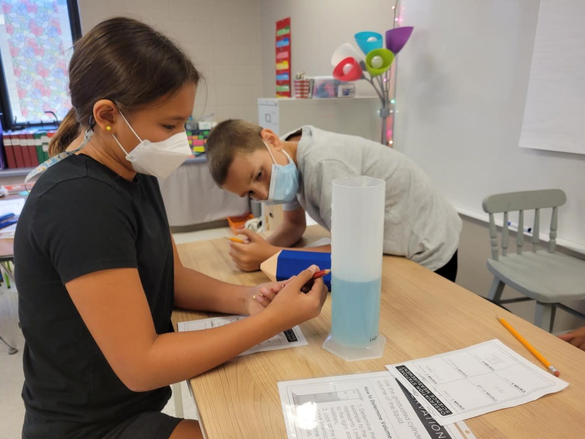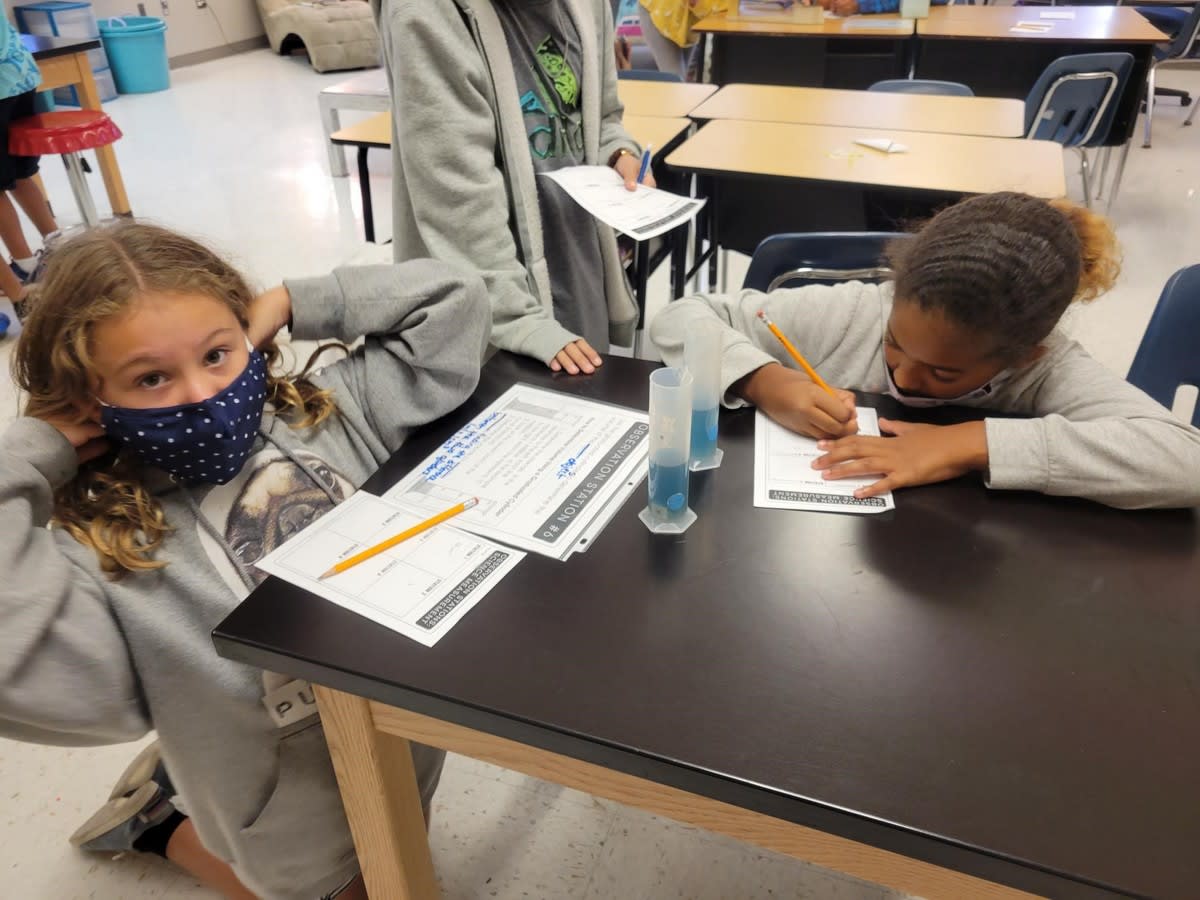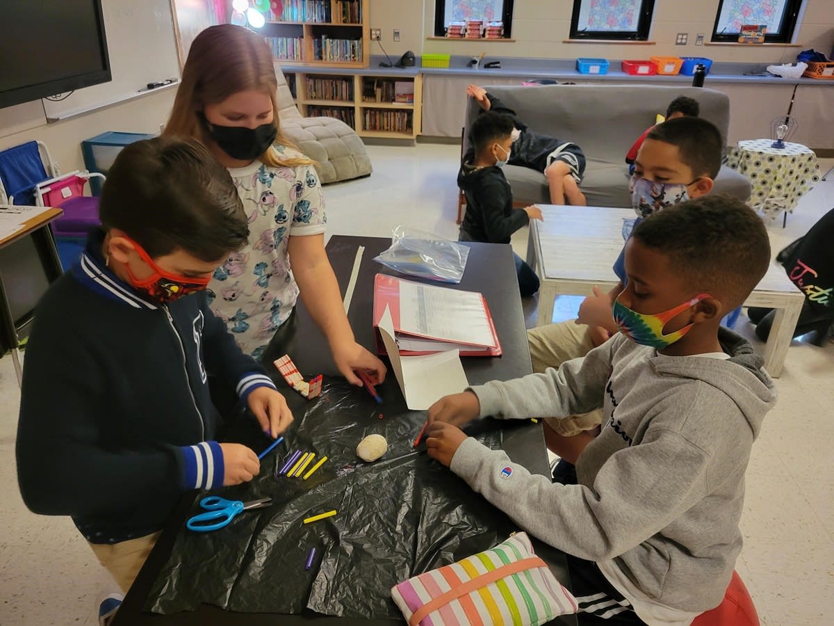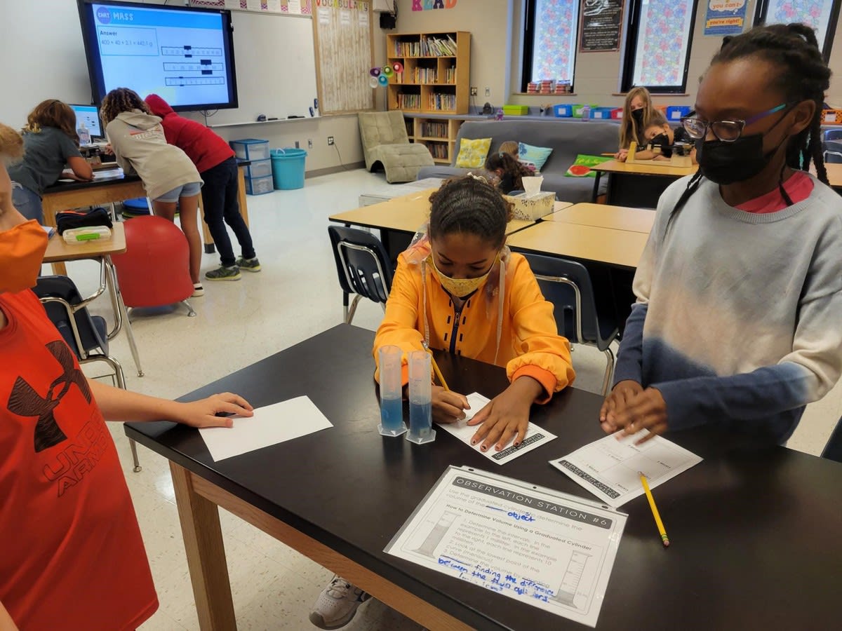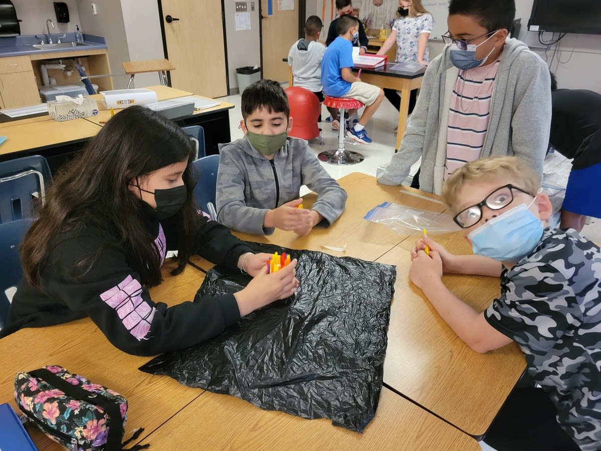 Mrs. Crawford’s class used their engineering skills and built contraptions to protect their egg from a fall. Every design was successful when dropped on the grass, and one design was successful on concrete! Mrs. Crawford’s science class practiced using science tools by reading measurements during observation stations.