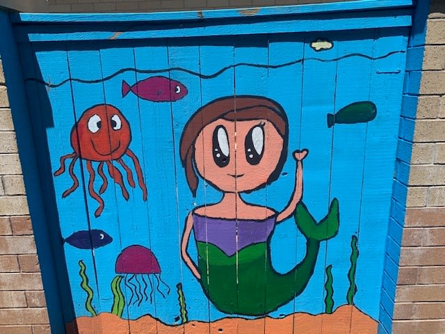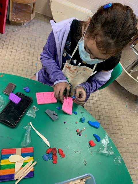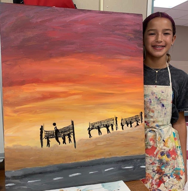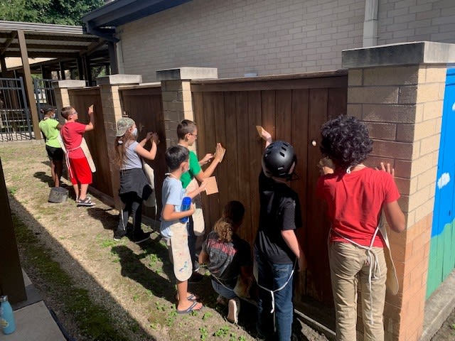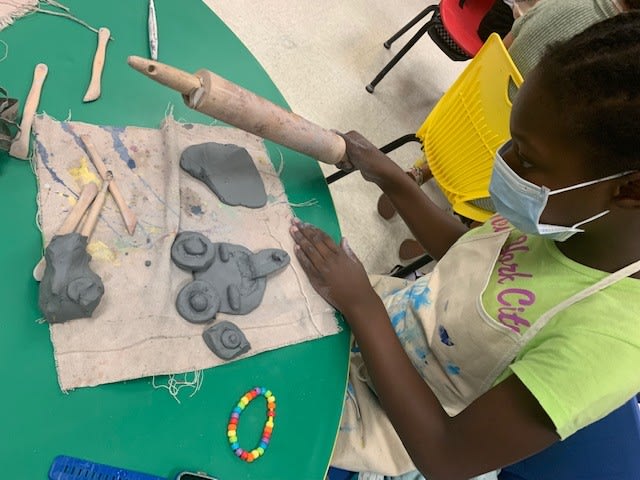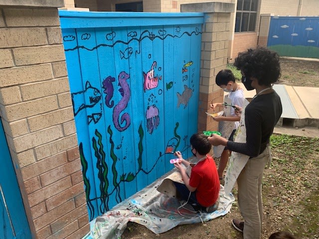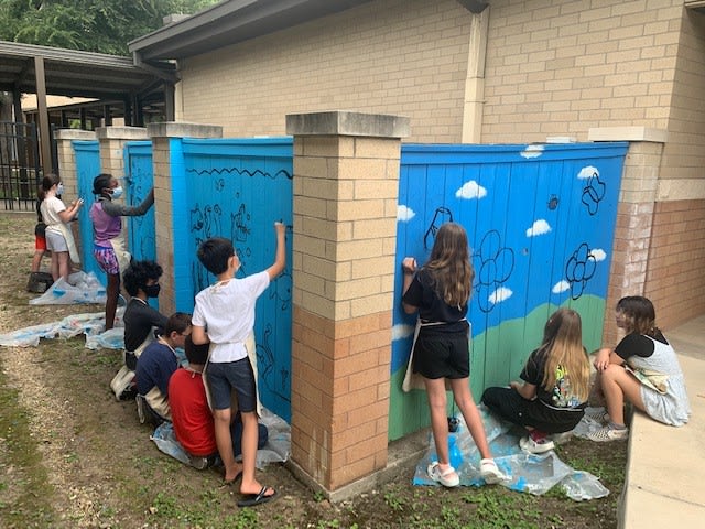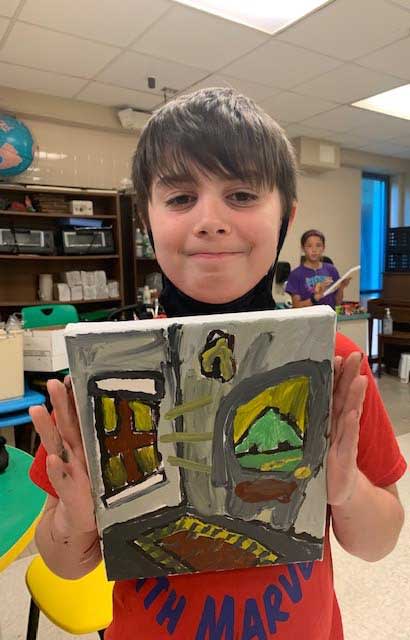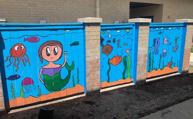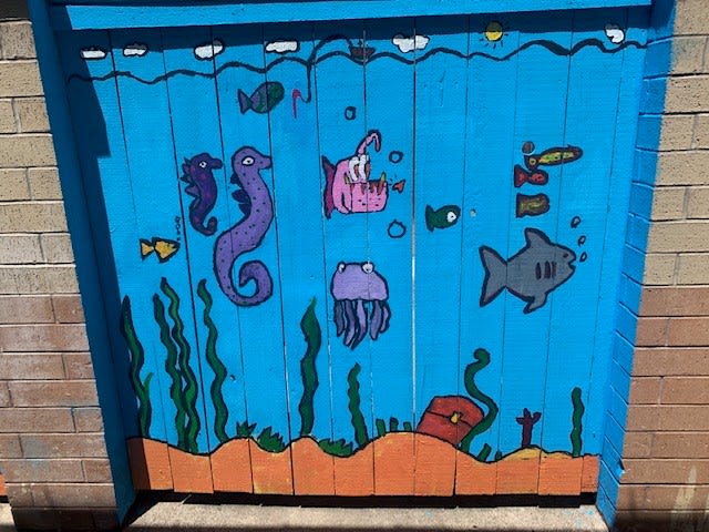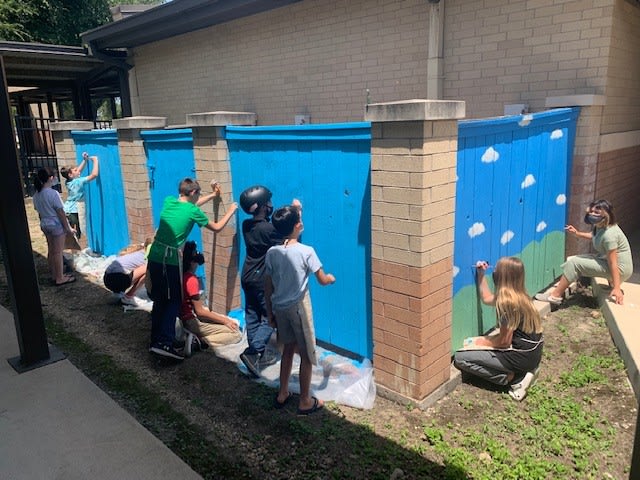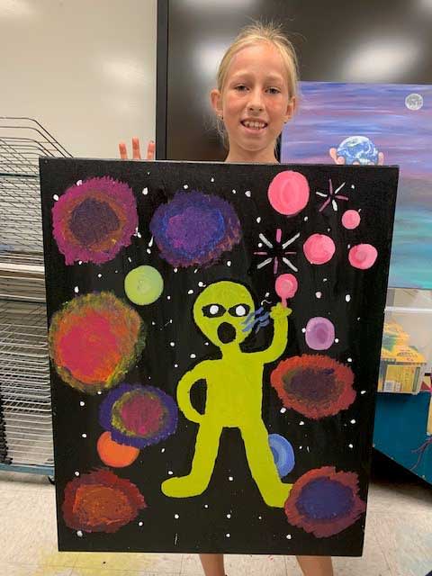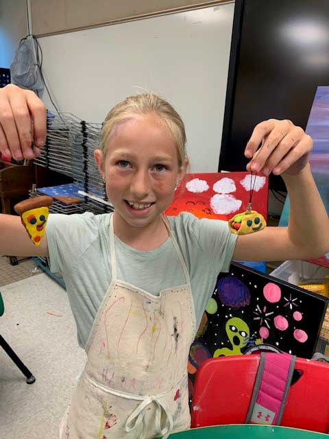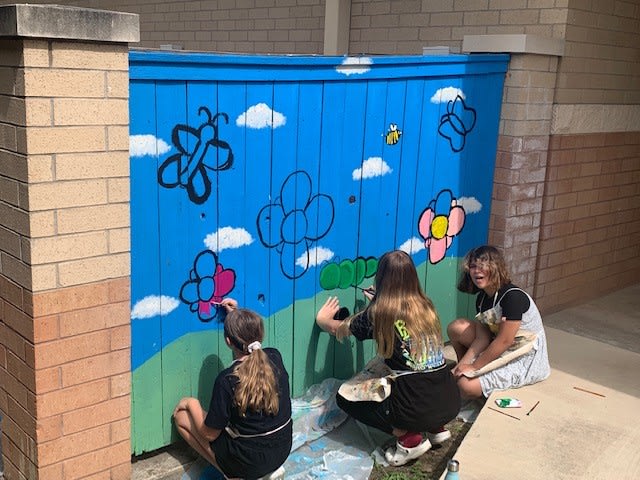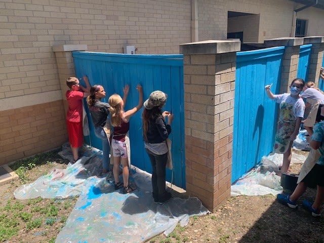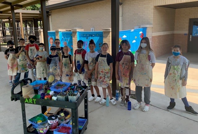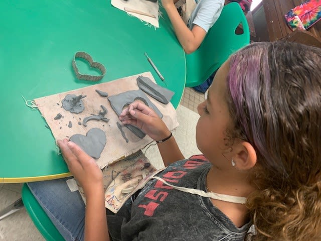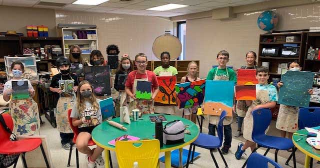 Near the end of Summer 14 kids came out and spent a week making a lot of art. They did 3 paintings on various size canvases, created objects using real and polymer clay, made designer paper mache' boxes, and teamed up to paint a mural finishing off the series outside that leads to the elementary cafeteria. The students did amazing during all phases of the camp.